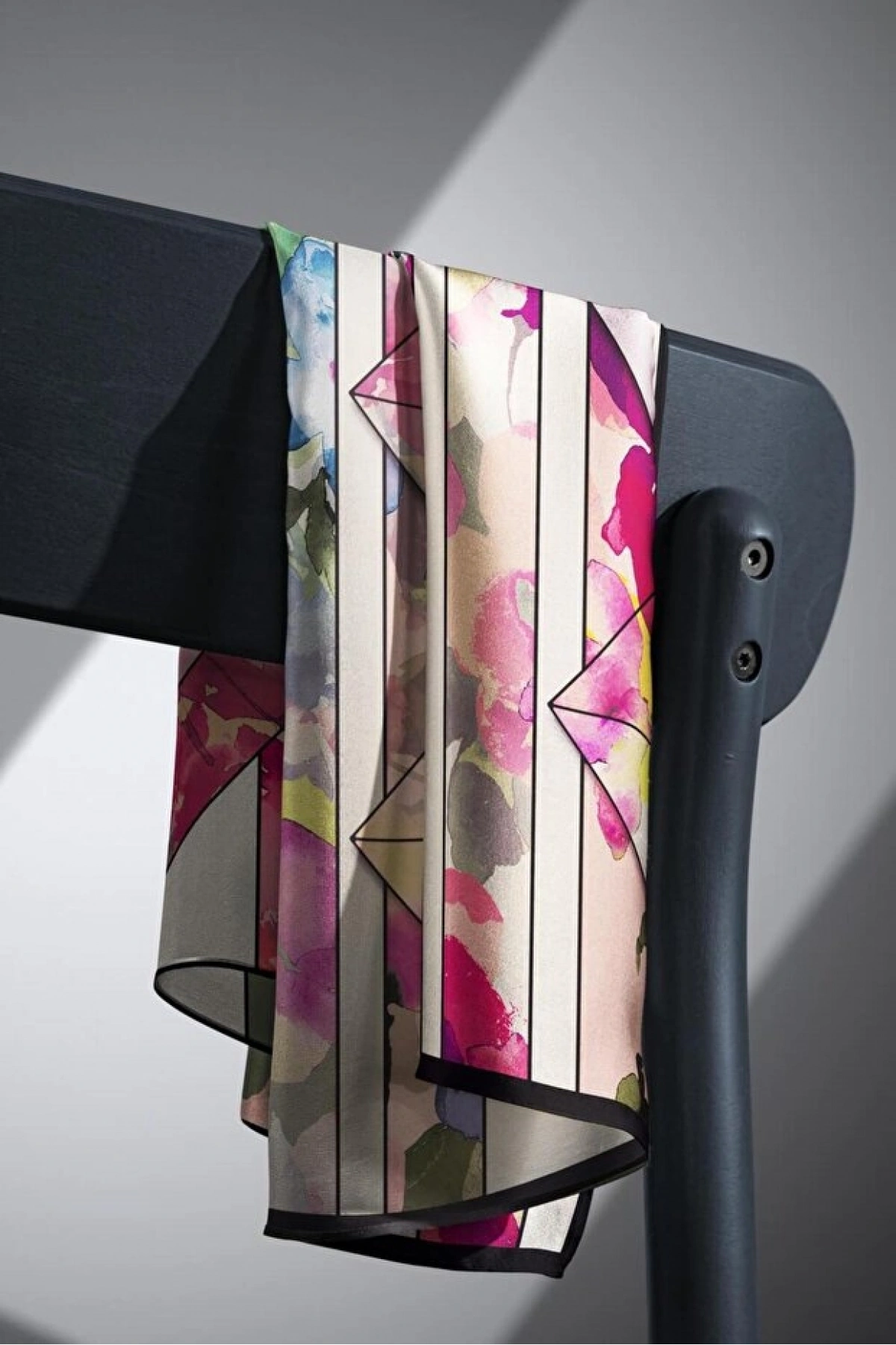 Vissona %100 Twill İpek Çizgili Desenli Saks - Fuşya Renkli 90x90 Eşarp Dikim Şekli : El Dikişi