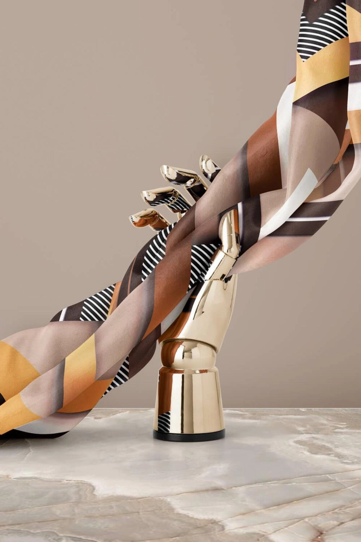 Vissona %100 Twill İpek Zebra Desenli Bej - Gold Renkli 90x90 Eşarp Dikim Şekli : El Dikişi