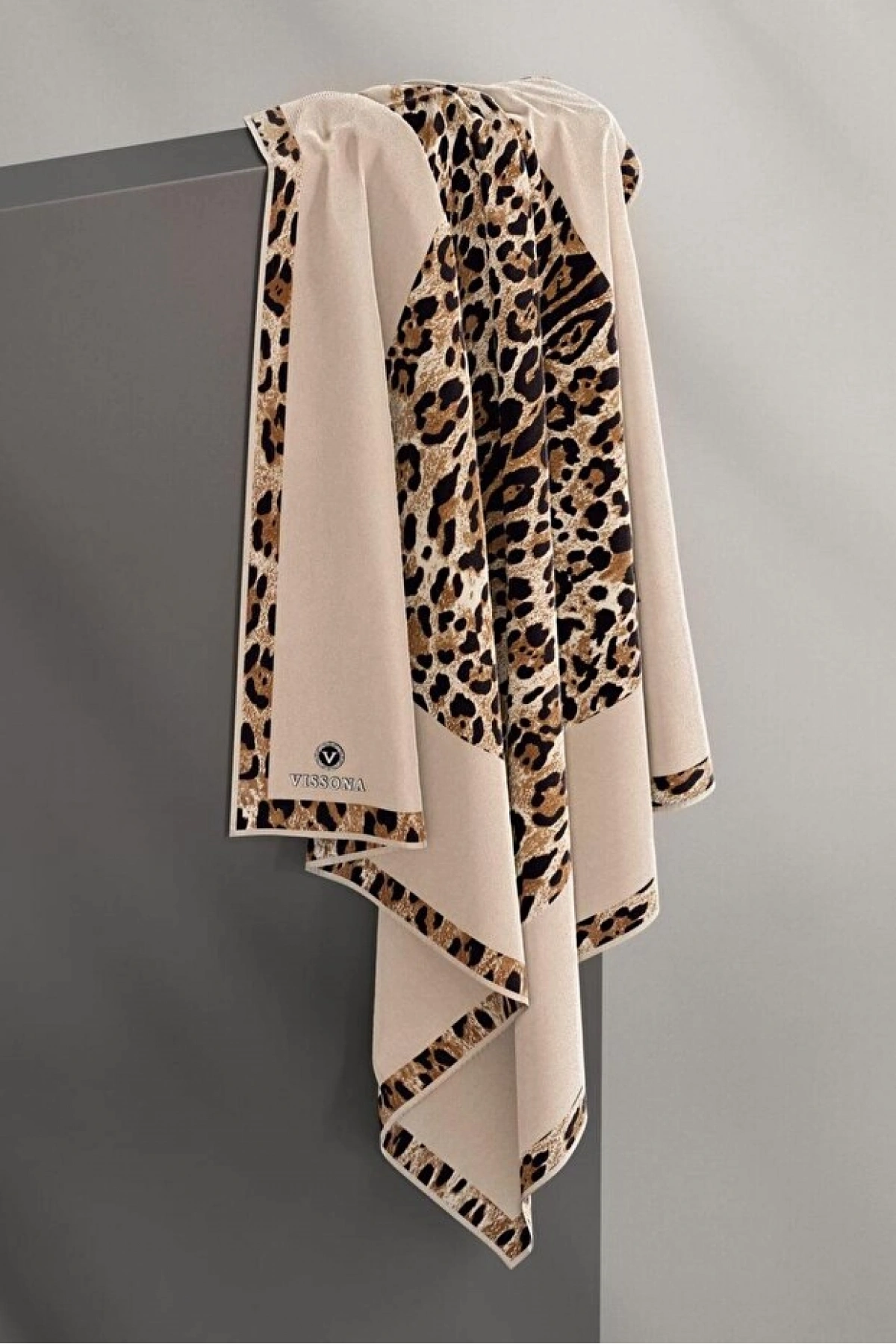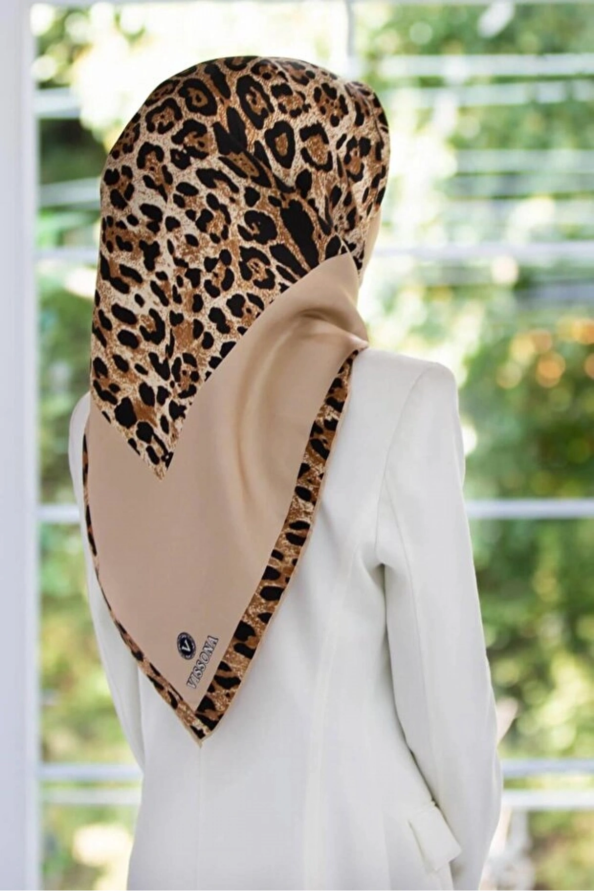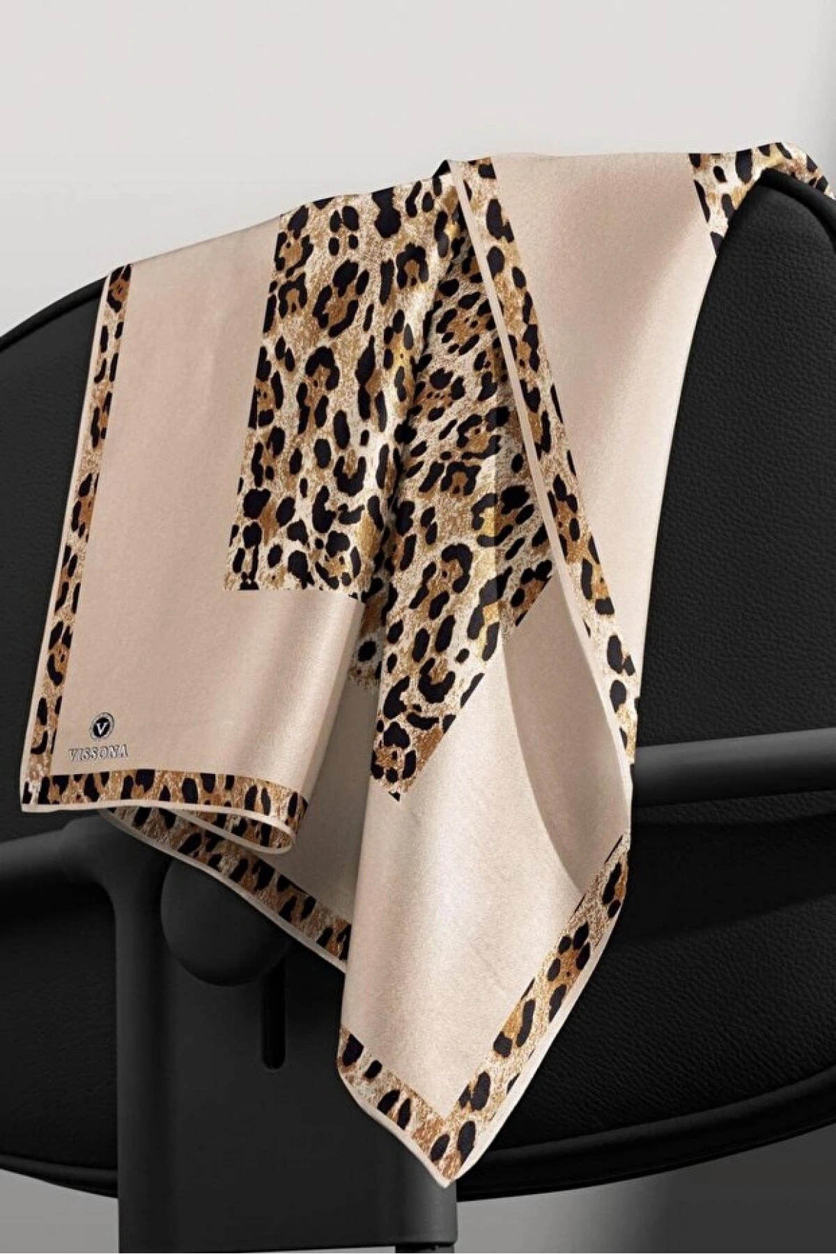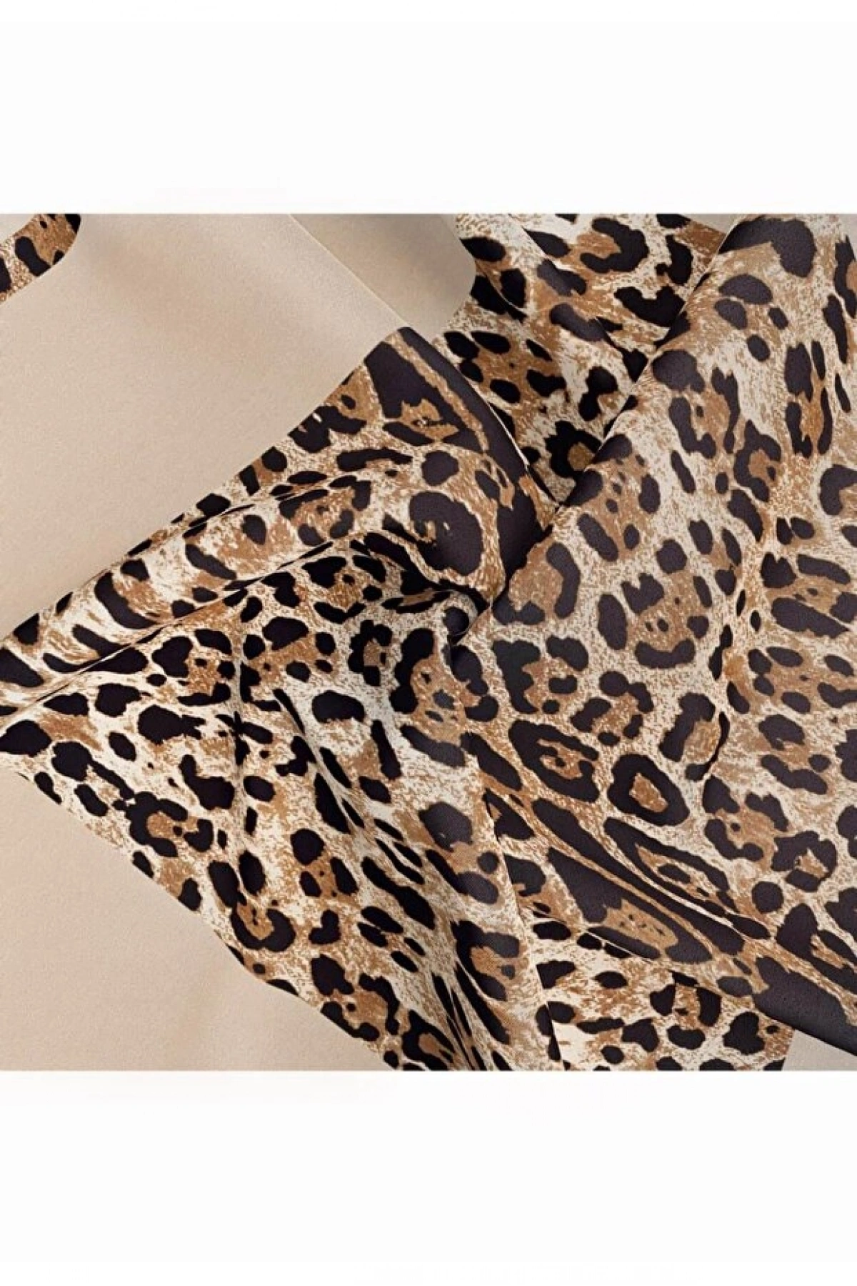 Vissona %100 Twill İpek Leopar Desenli Bej Renkli 90x90 Eşarp Dikim Şekli : El Dikişi