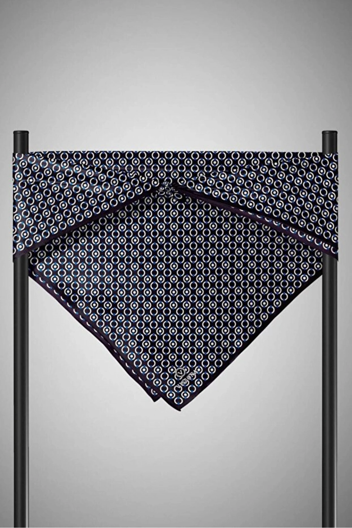 Vissona %100 Twill İpek Zincir Desenli Siyah - Saks Renkli 90x90 Eşarp Kenar Dikiş Şekli El Dikişli