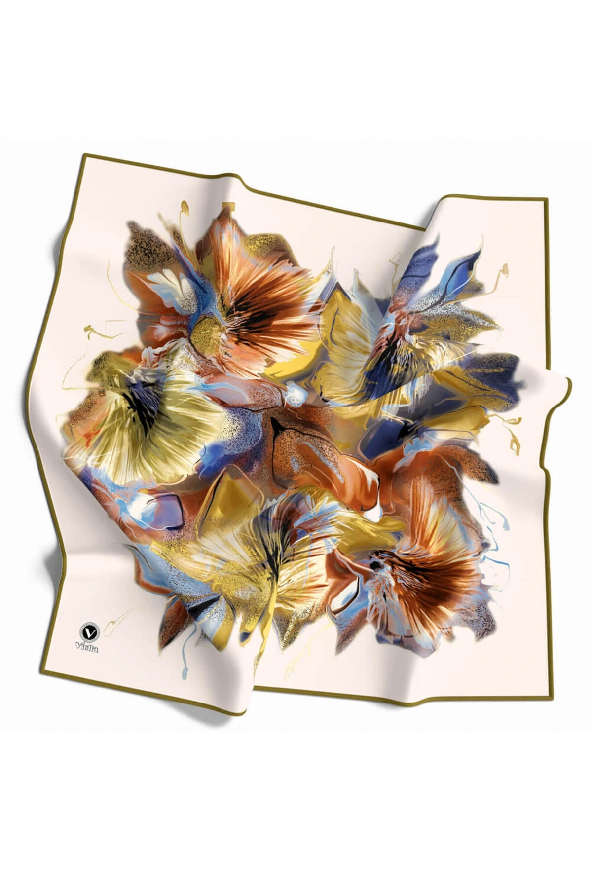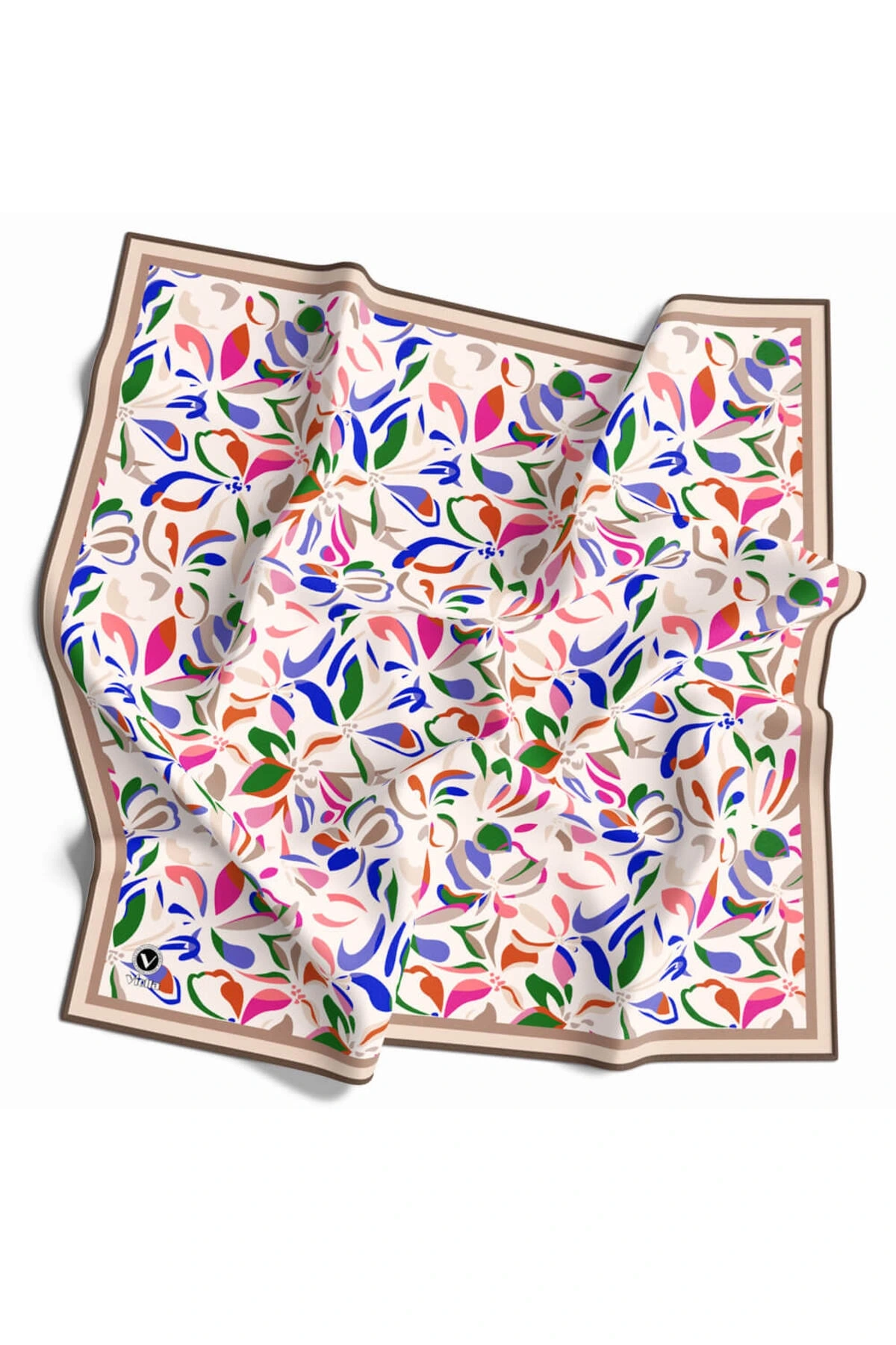 %100 Twill İpek Geometrik Desenli Bej - Haki Renkli 90x90 Eşarp Dikim Şekli : El Dikişi
