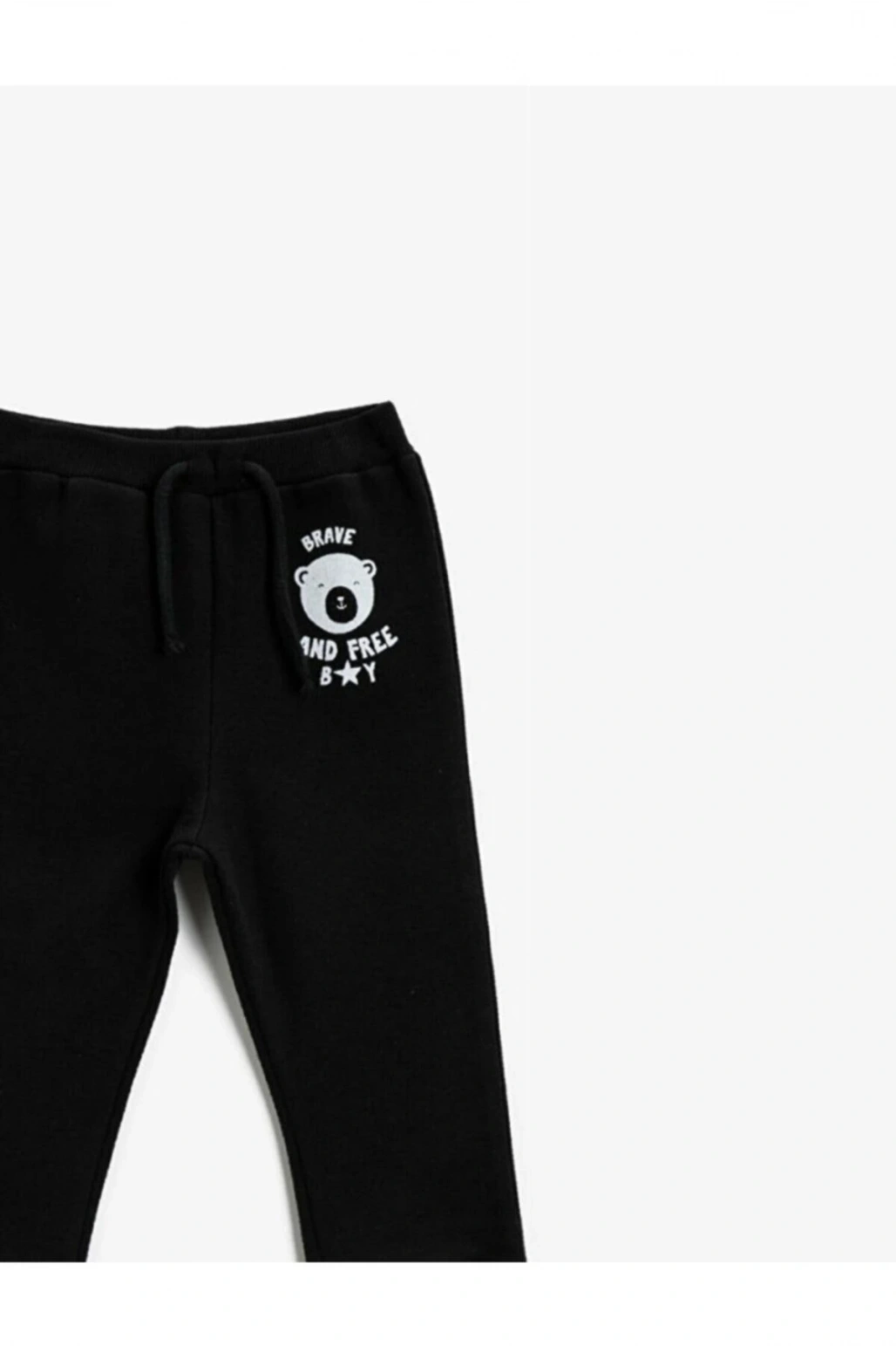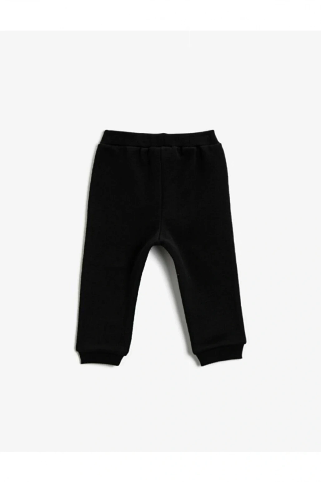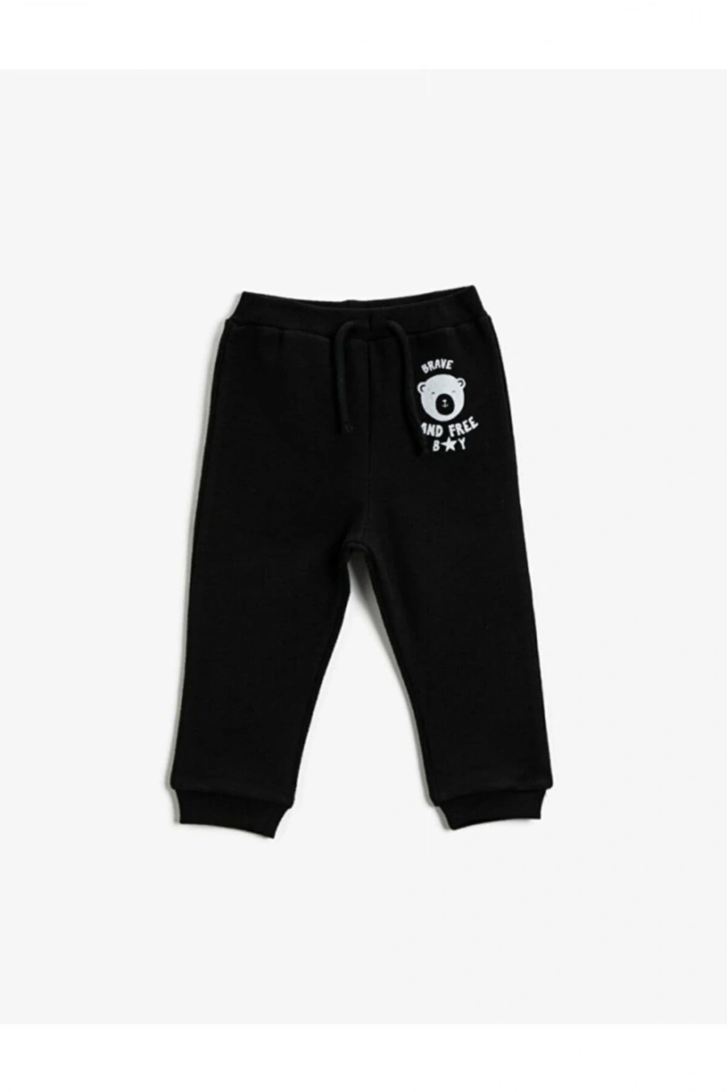 LCW baby Siyah Beli Lastikli Baskılı Erkek Bebek Jogger Eşofman Alt