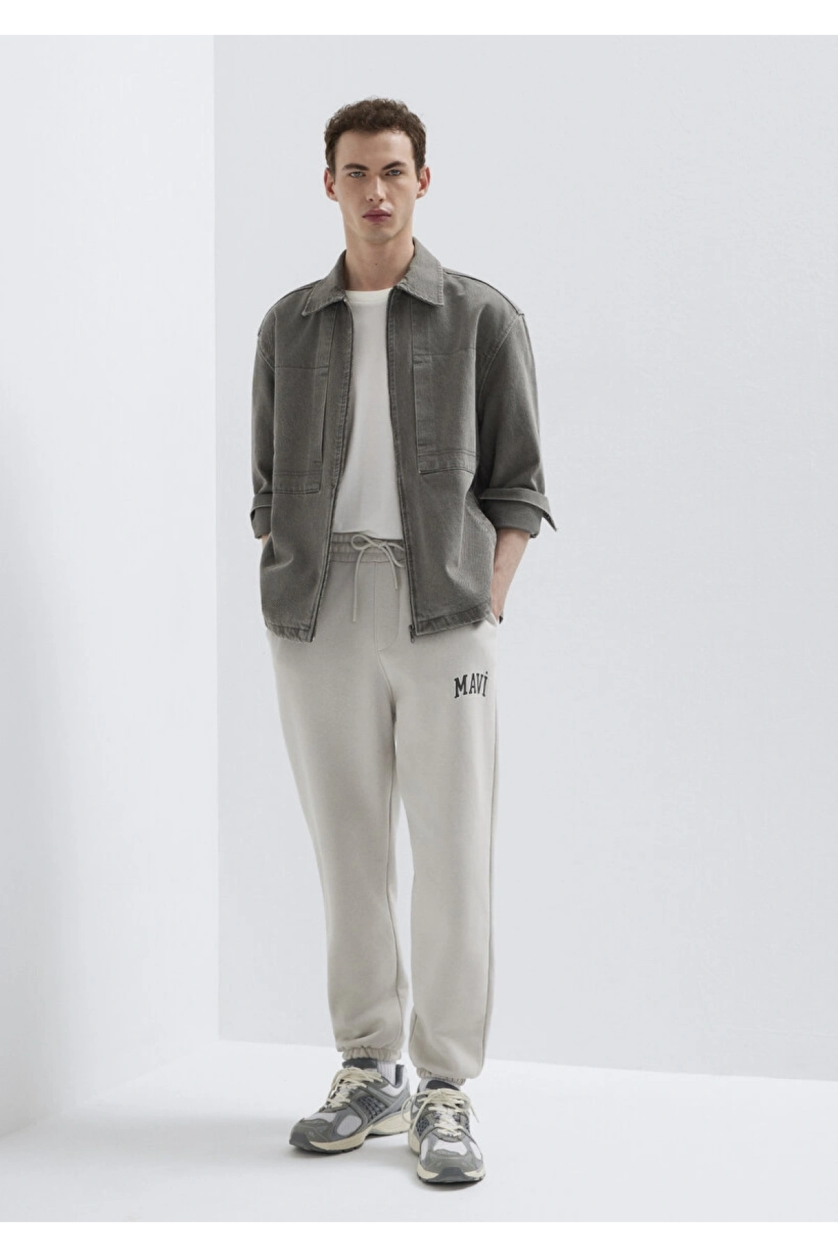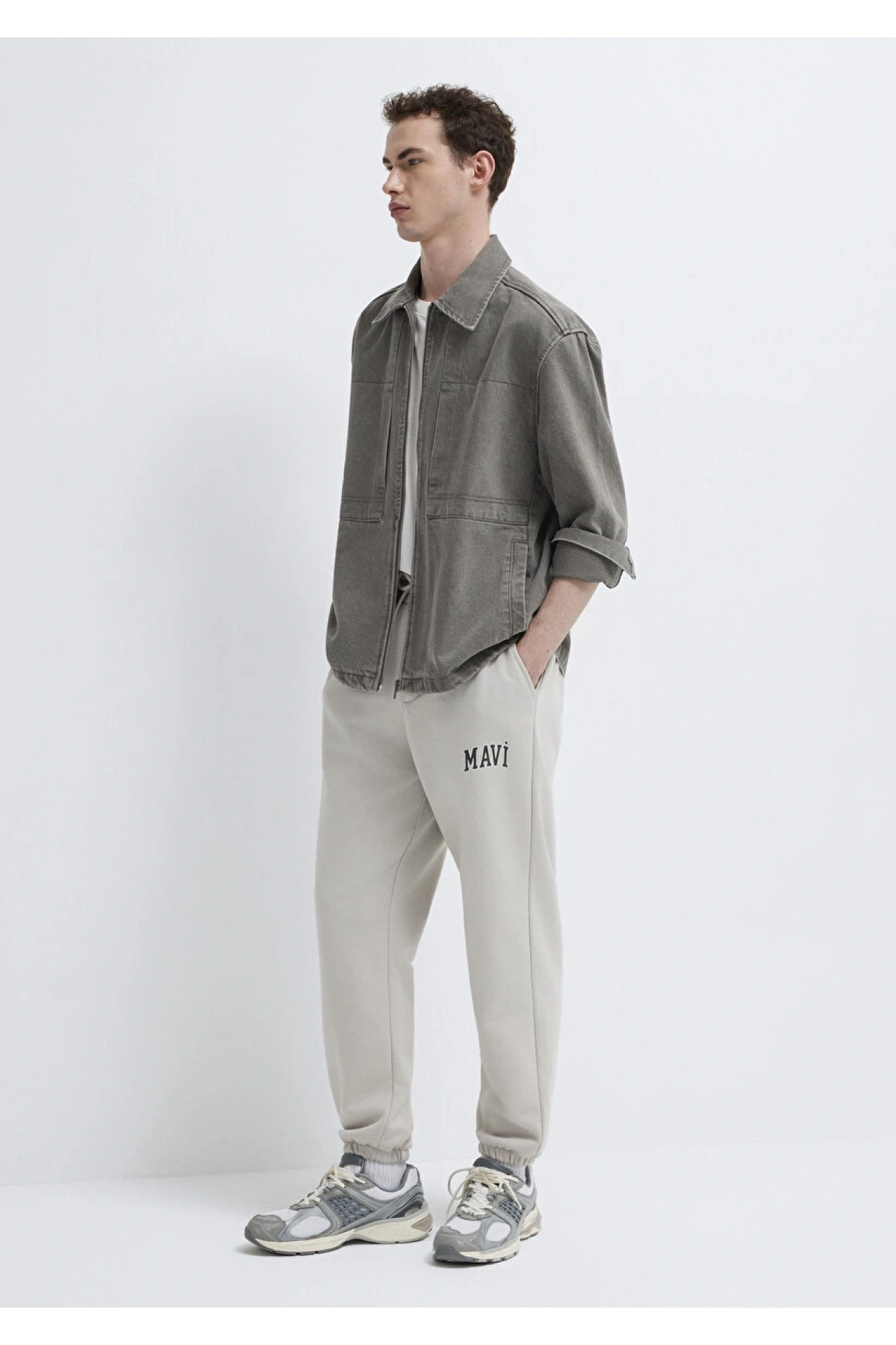 Mavi Logo Baskılı Gri Eşofman Altı