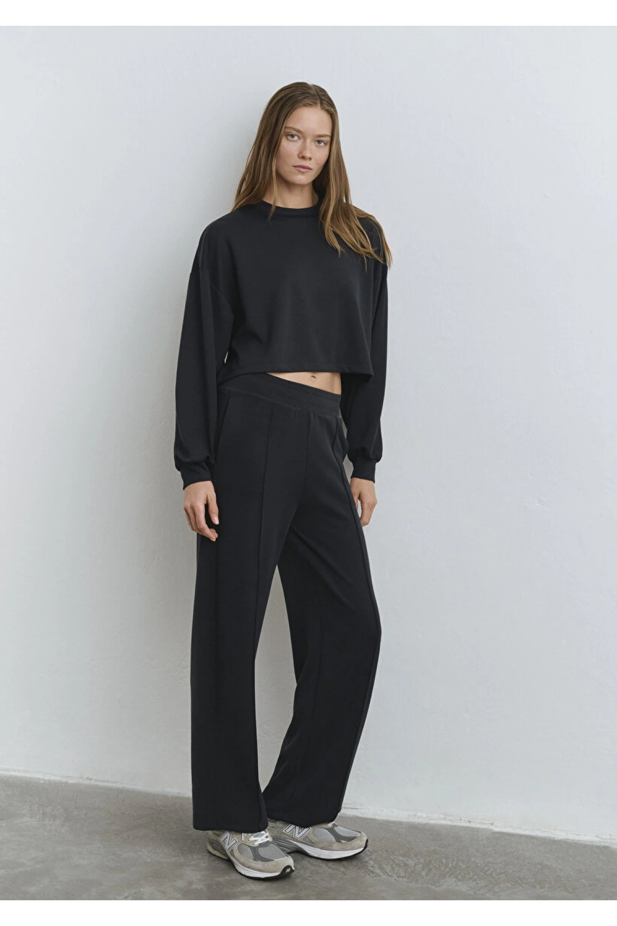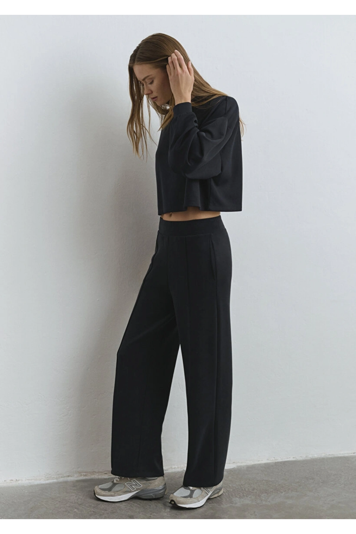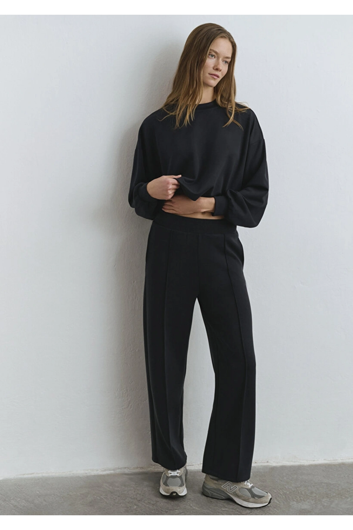 Natuvera Siyah Beli Lastikli Kadın Eşofman Altı