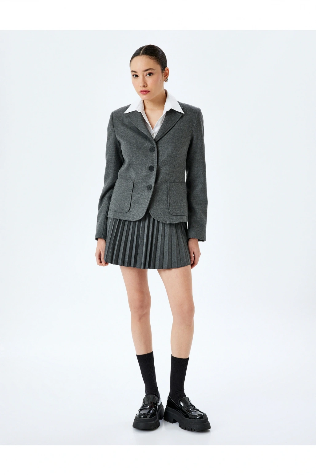 Astarlı Yüksek Bel Puantiyeli Midi Boy Pileli Şifon Etek