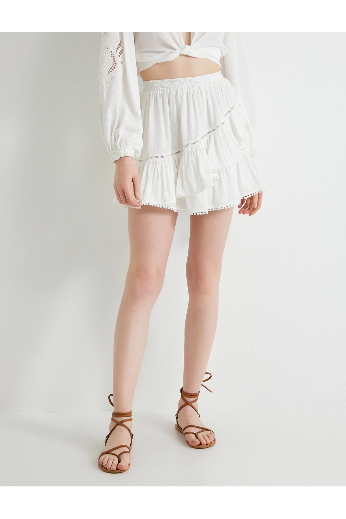 Mini Etek Viskon Beli Lastikli Volanlı