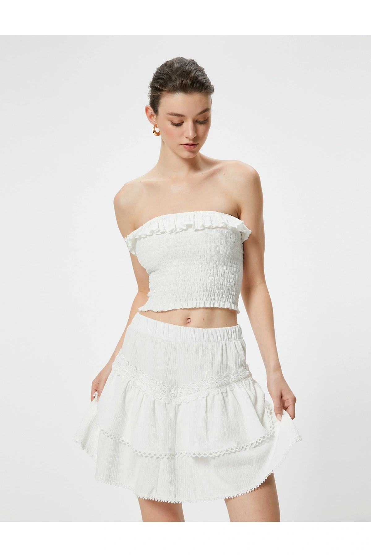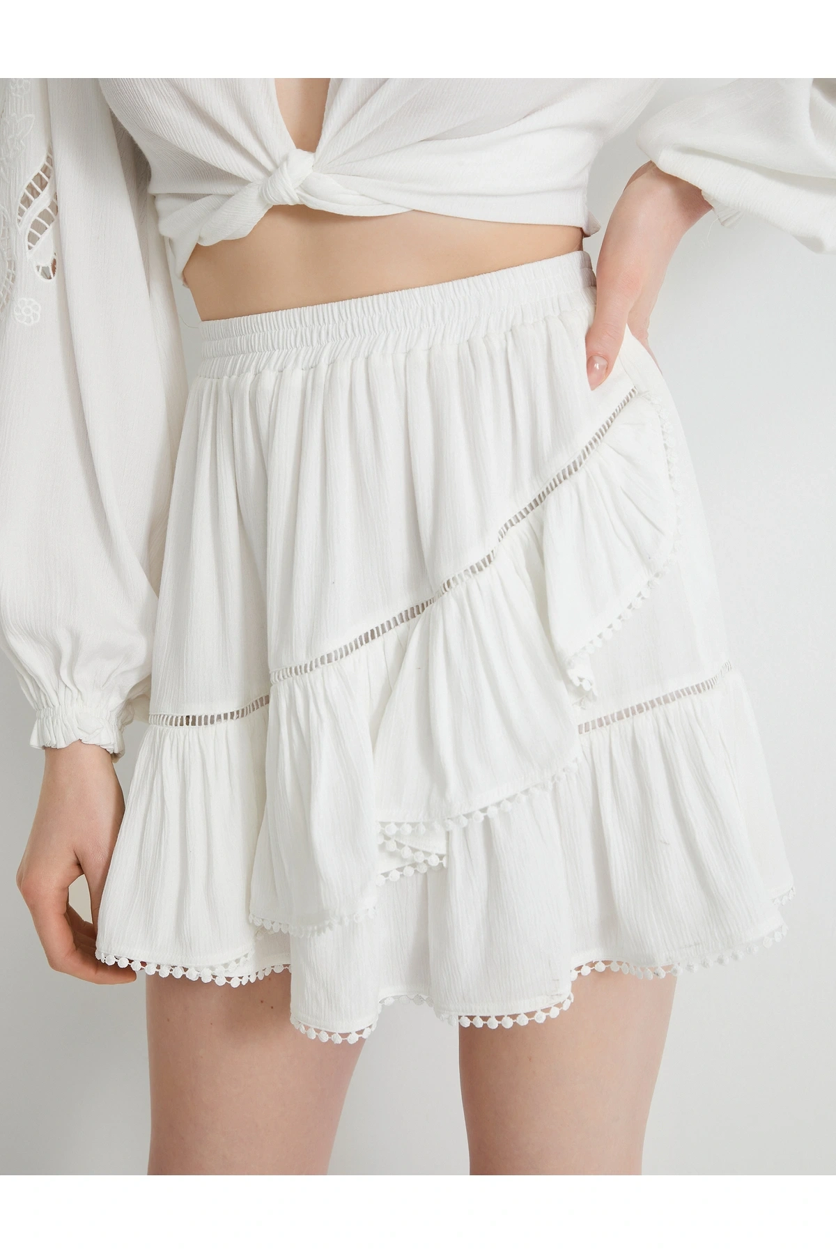 Mini Etek Beli Lastikli Dokulu Fisto Detaylı