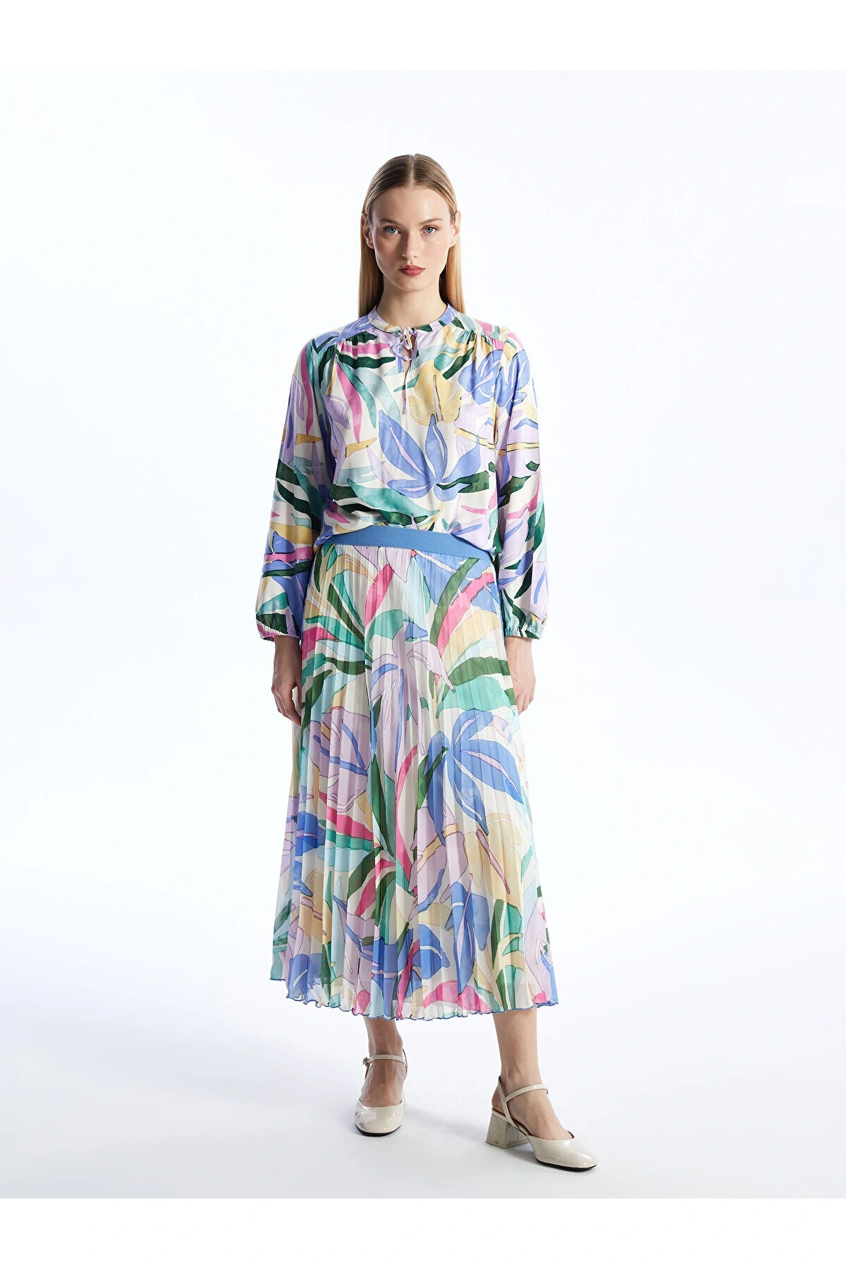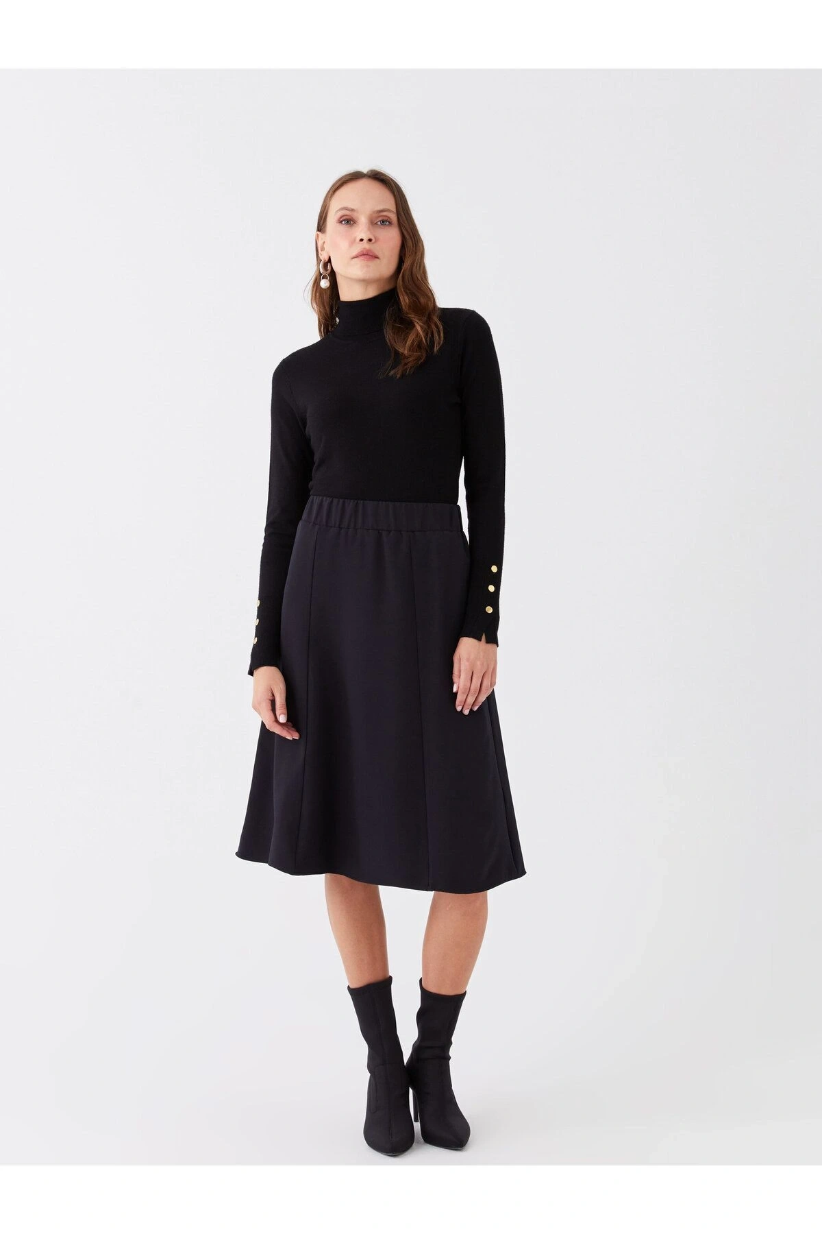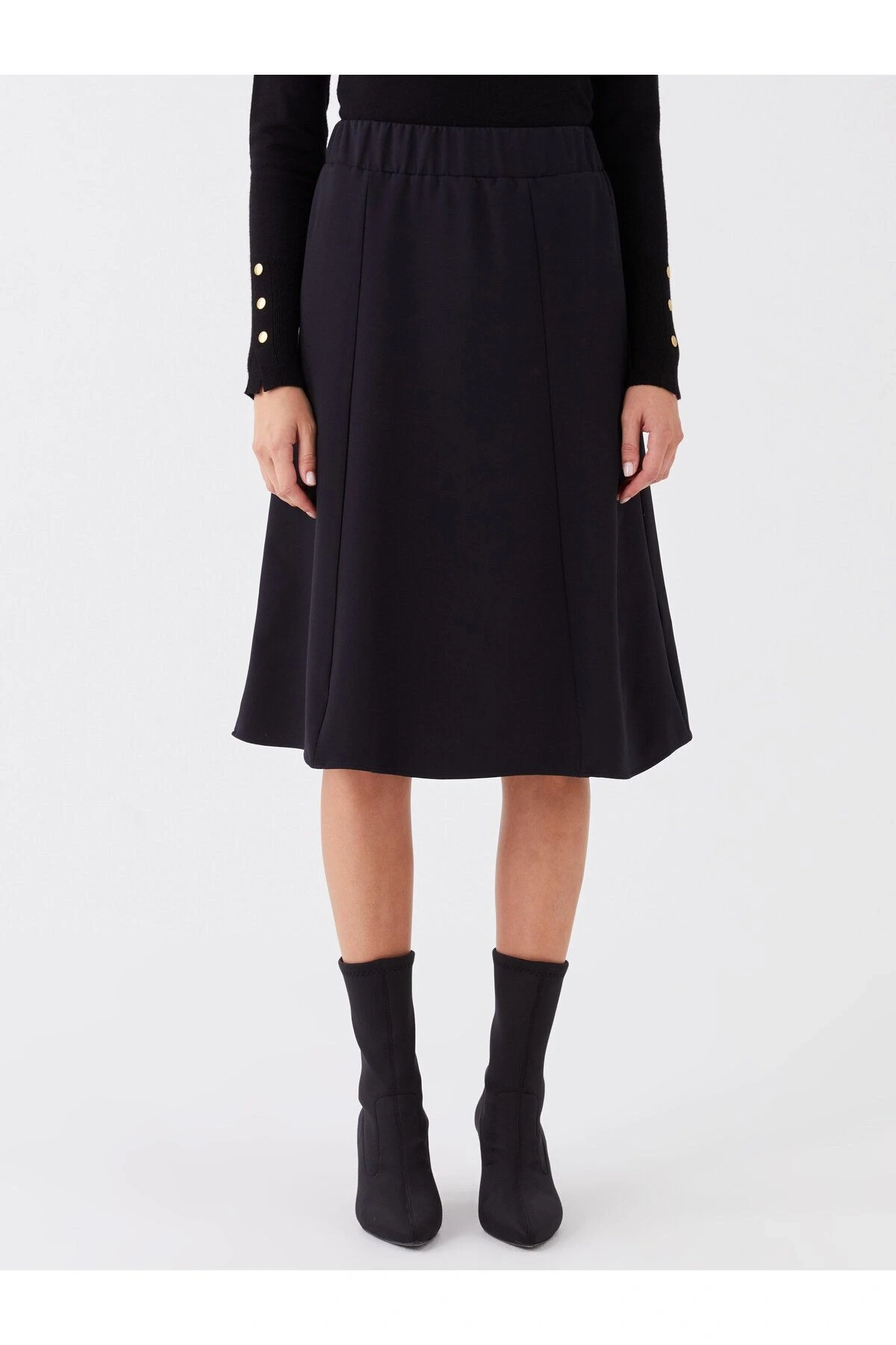 LCW Modest Beli Lastikli Düz Krep Kadın Pileli Etek