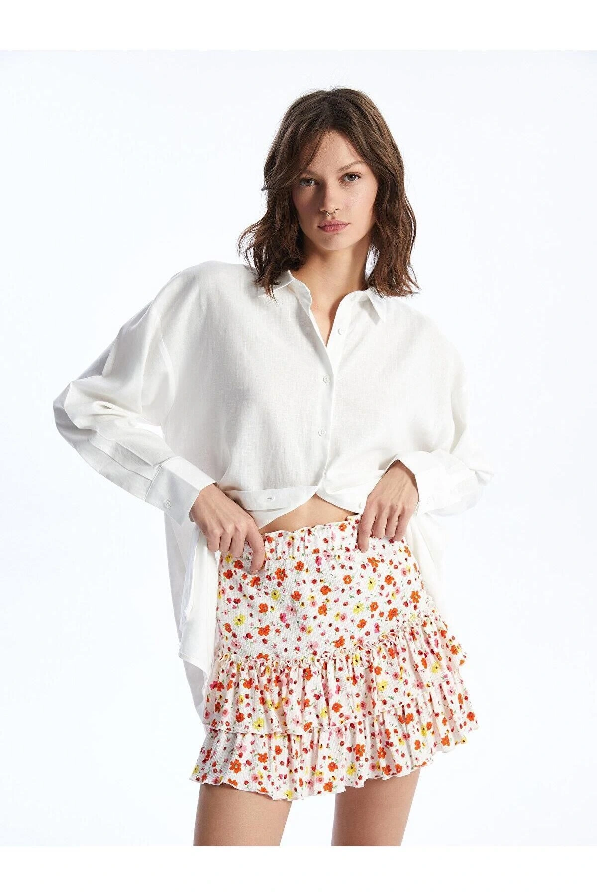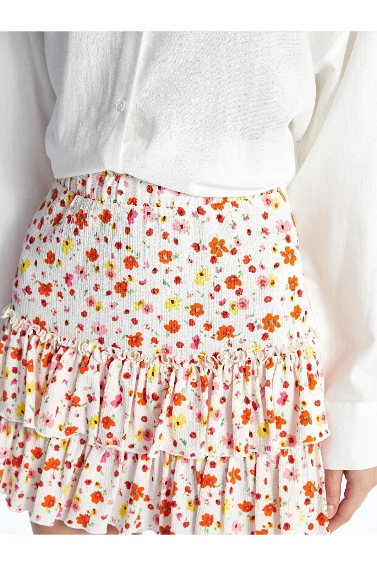 XSIDE Beli Lastikli Çiçekli Kadın Etek