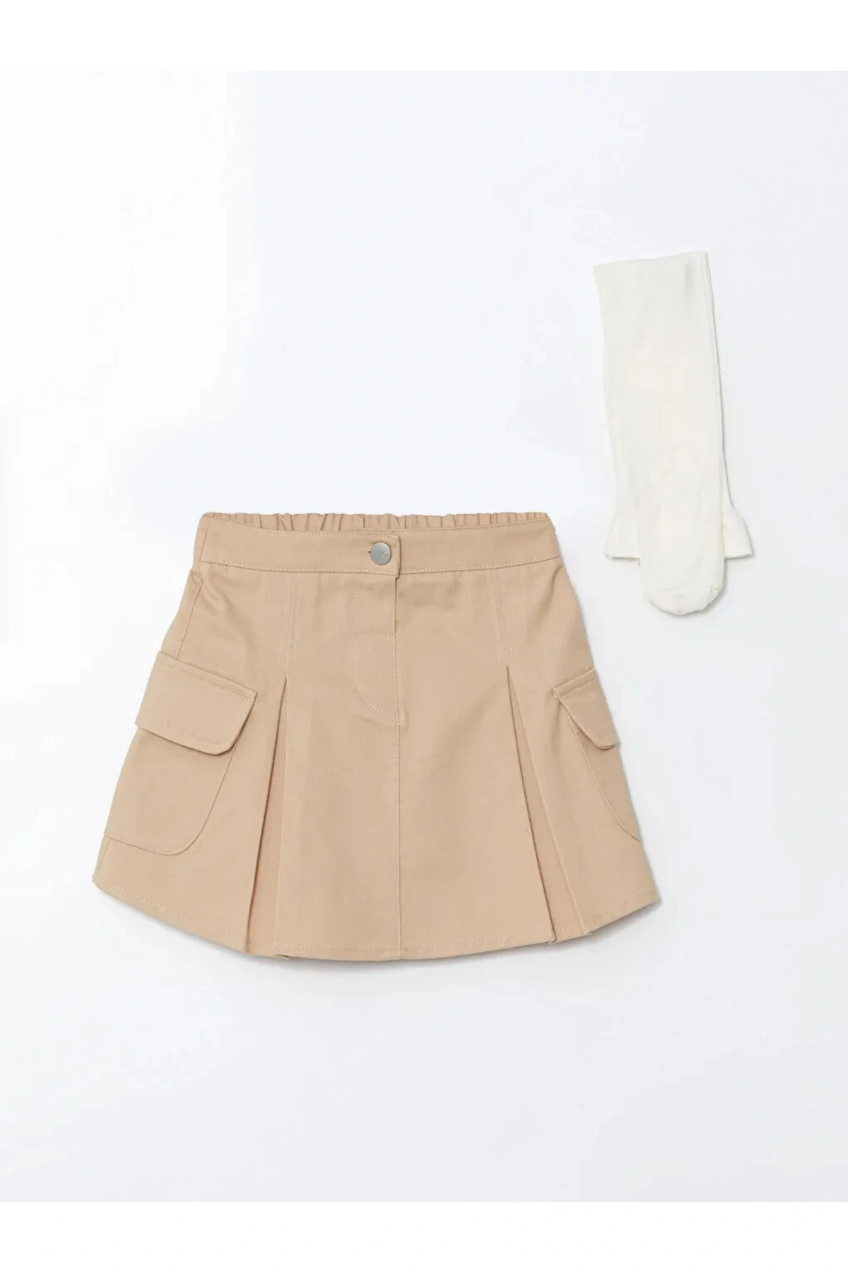 LCW baby Bej Beli Lastikli Kız Bebek Etek ve Külotlu Çorap 2'li Takım