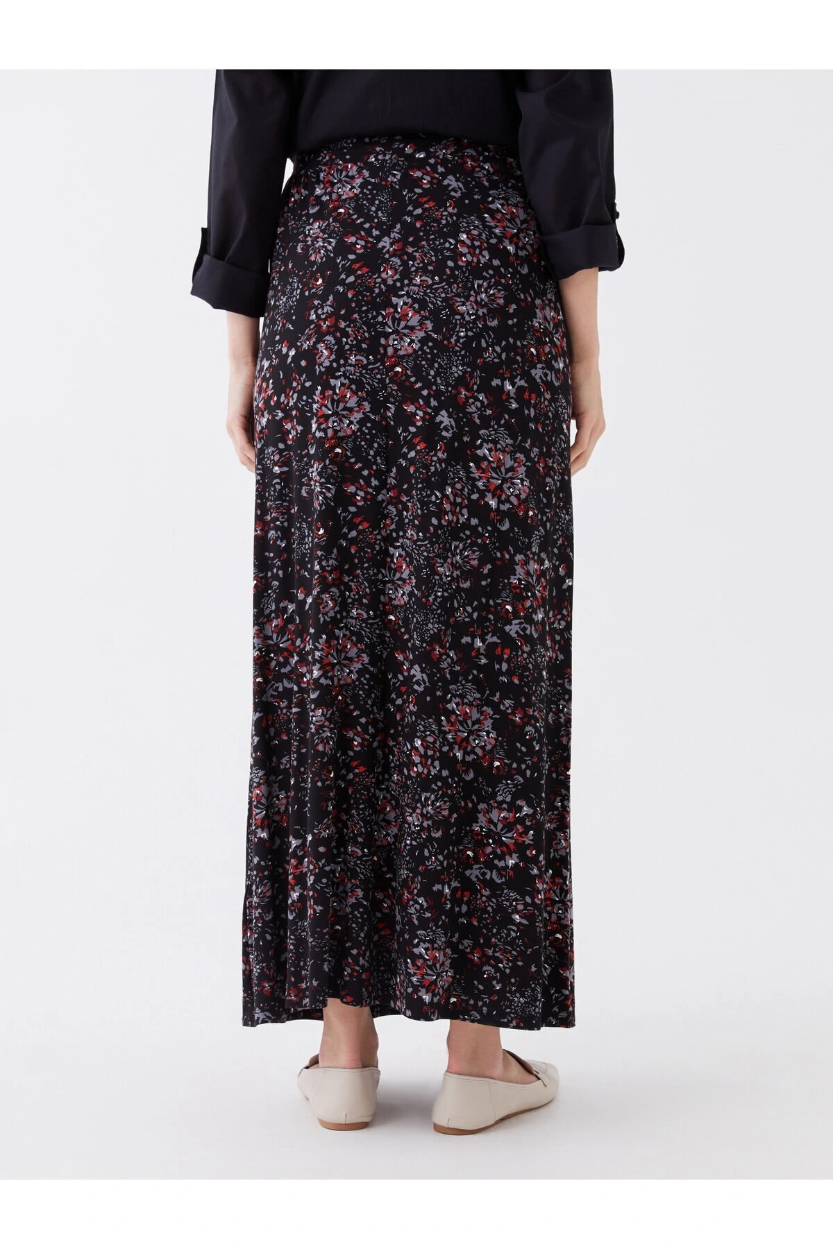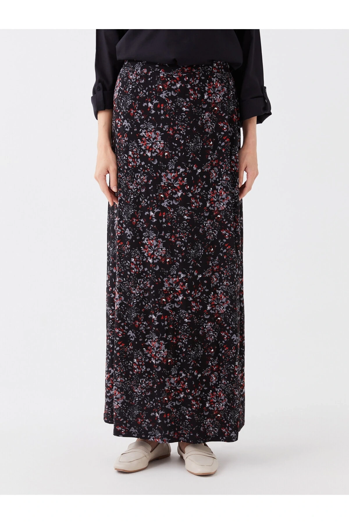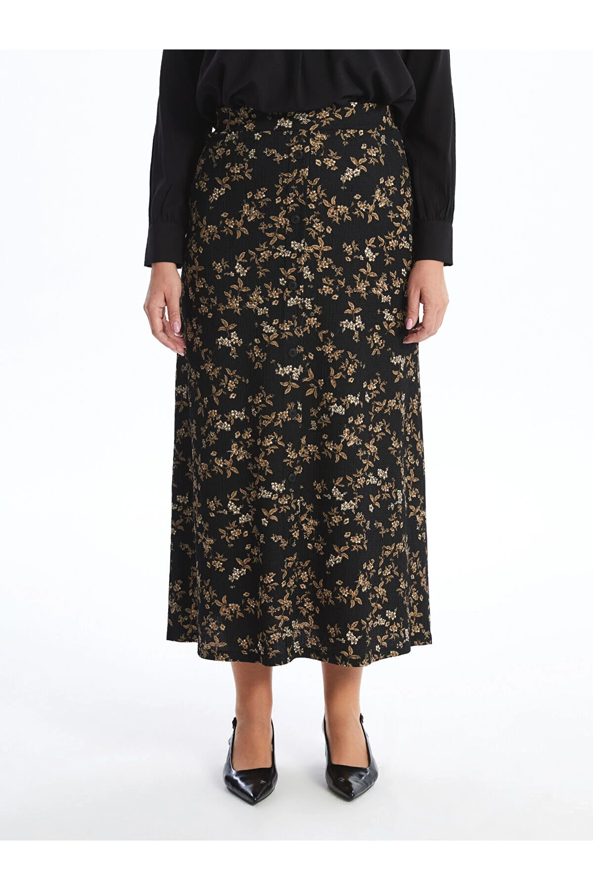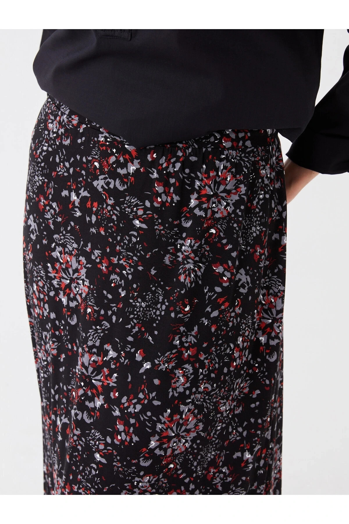 LCW Grace Siyah Beli Lastikli Çiçekli A Kesim Kadın Etek