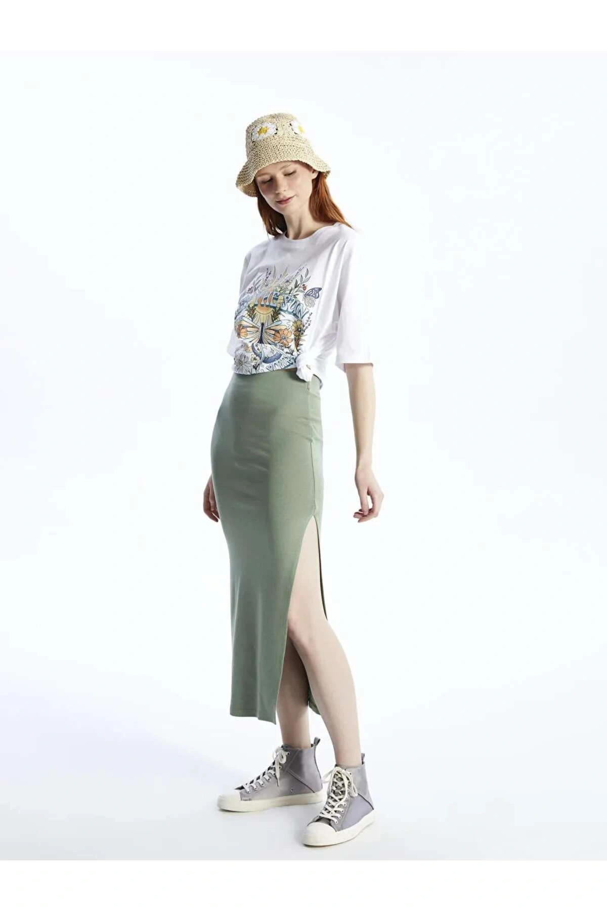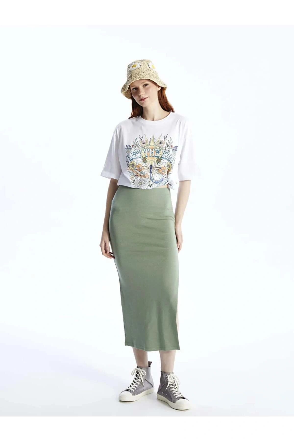 XSIDE Yeşil Kadın Ekstra Dar Fit Düz Etek