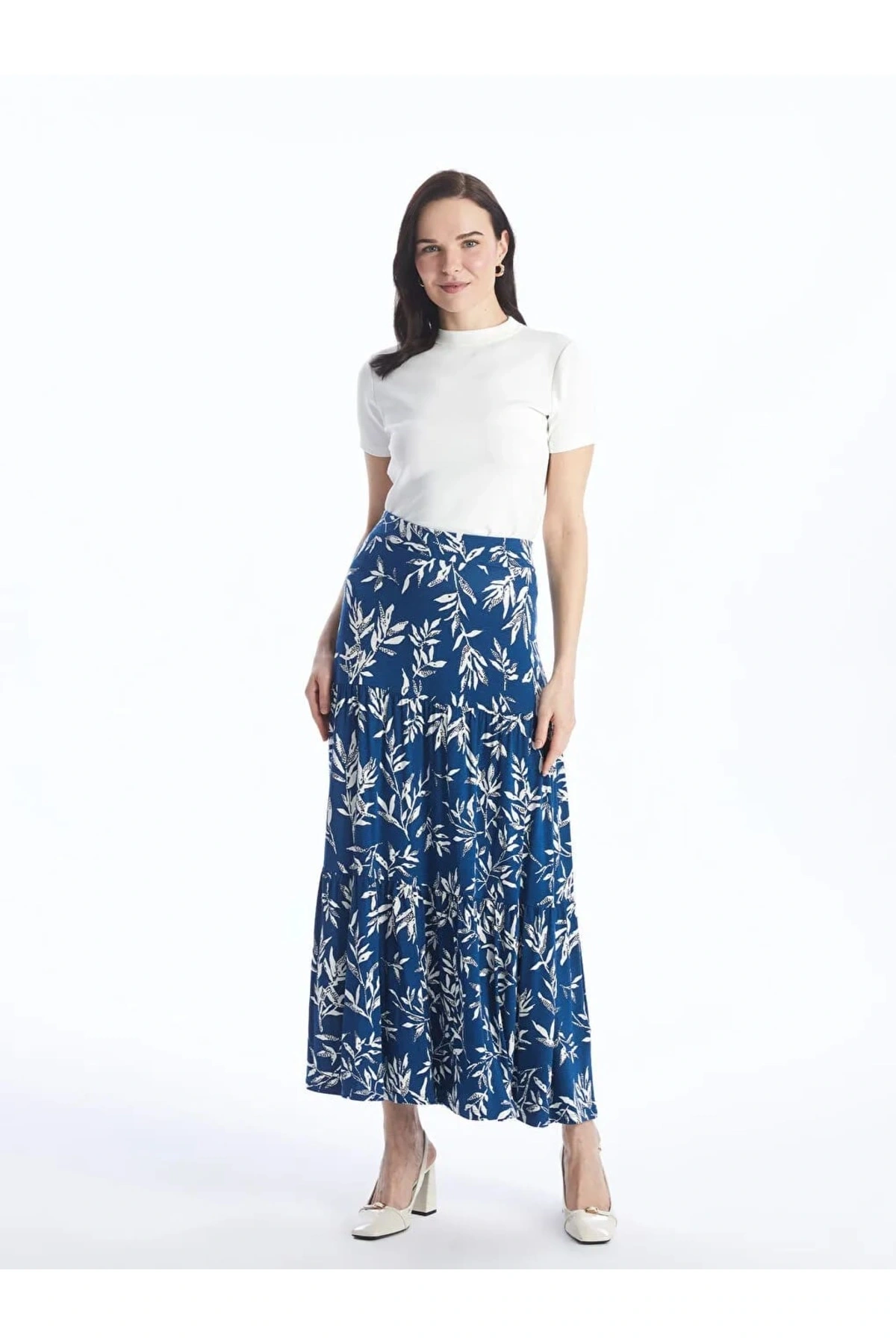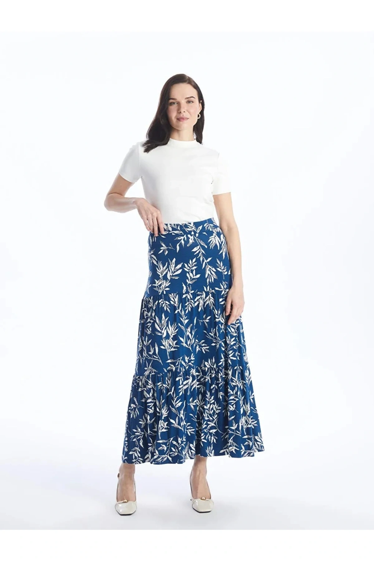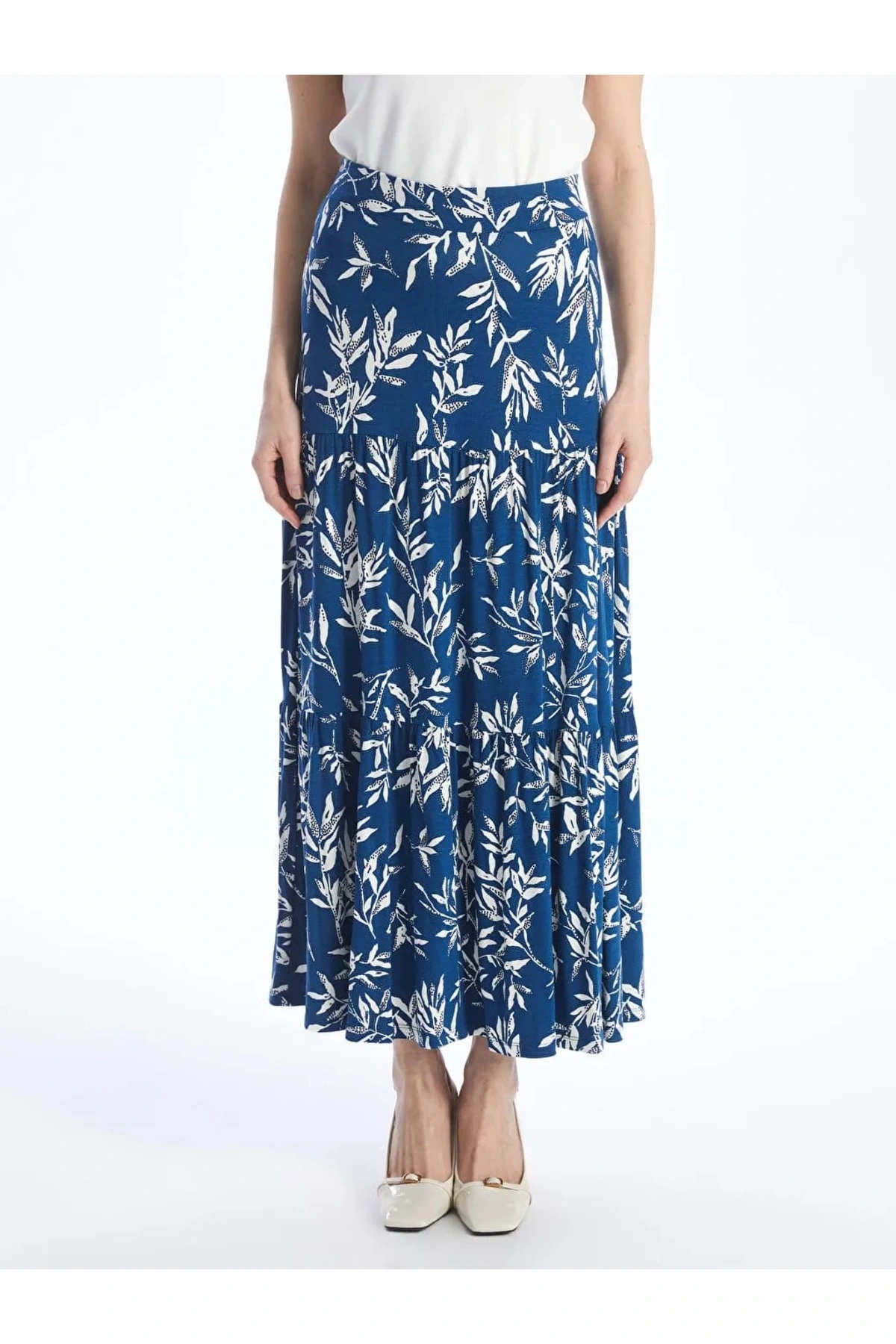 LCW Grace Mavi Beli Lastikli Desenli A Kesim Kadın Etek