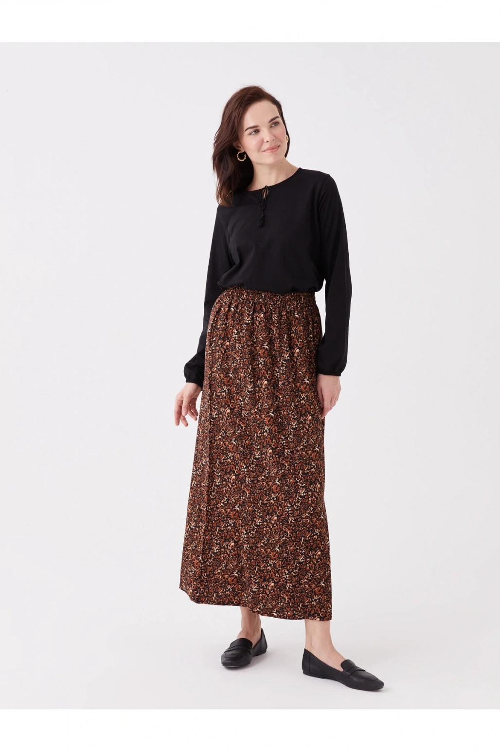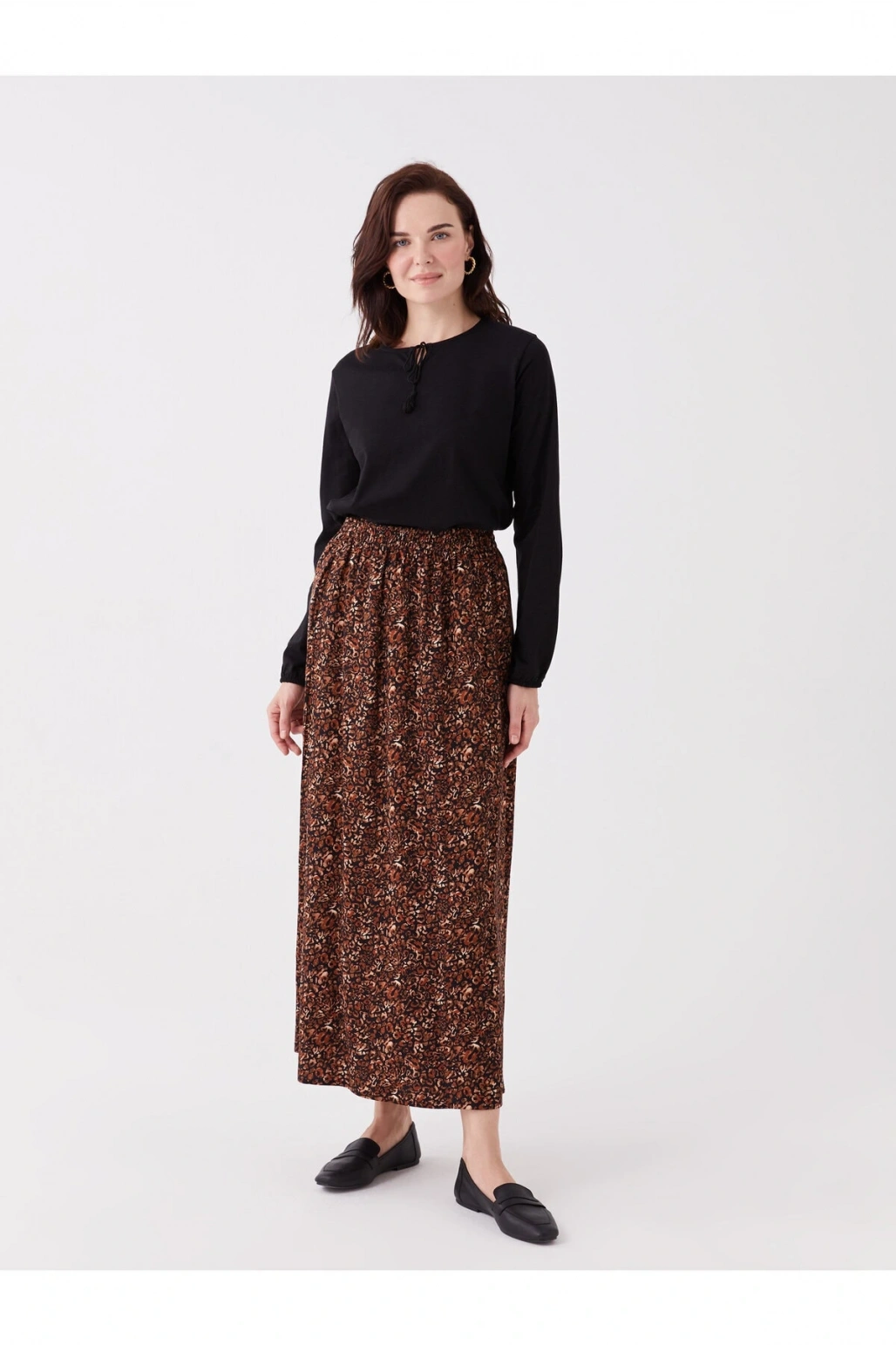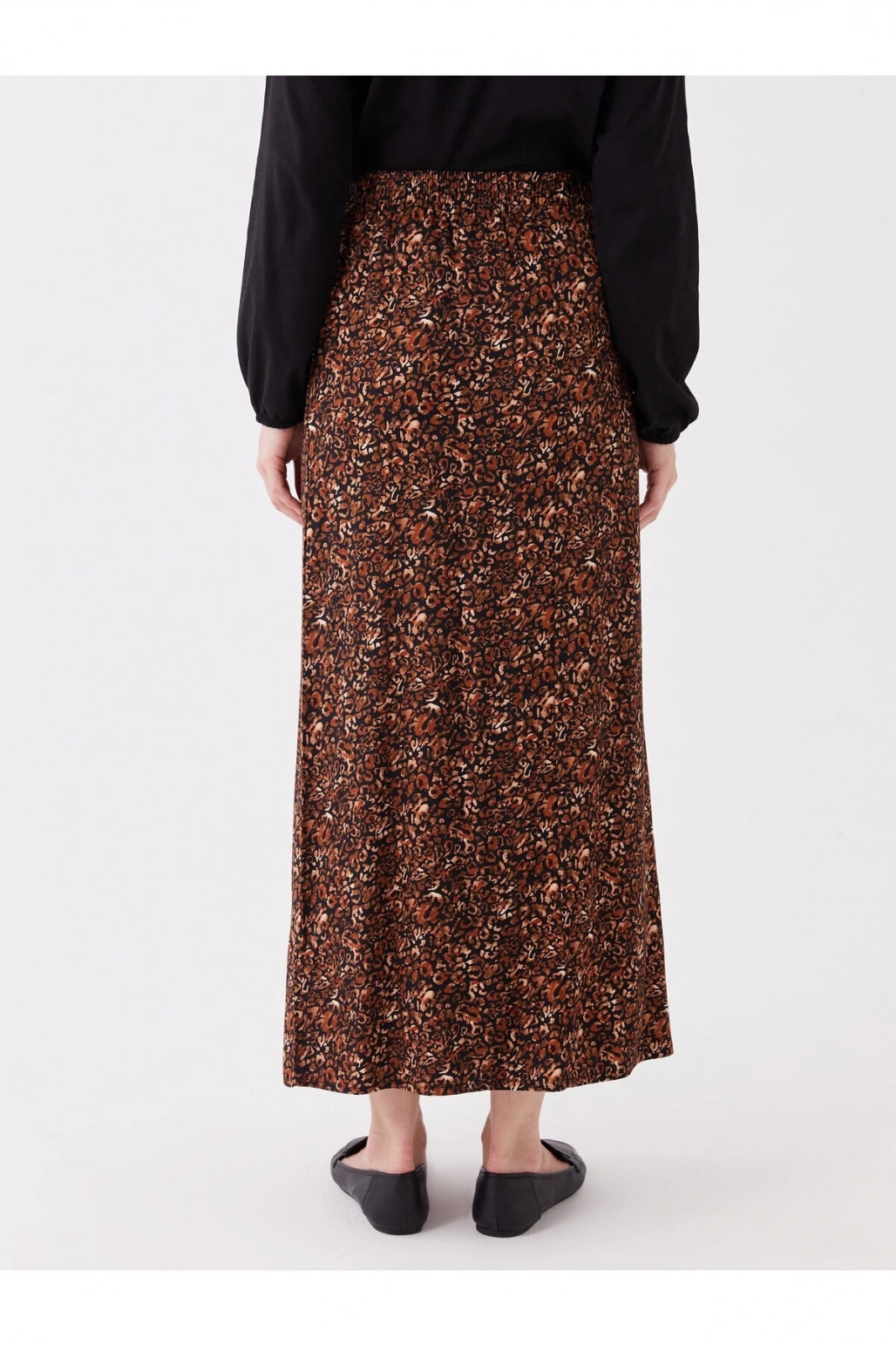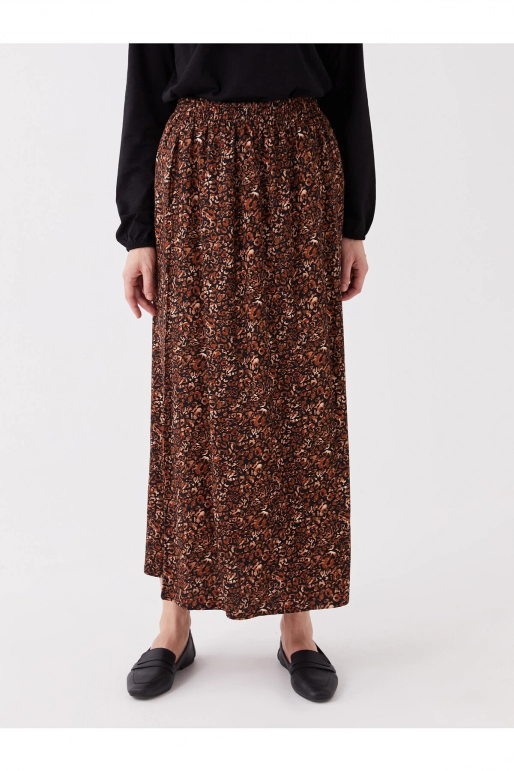 LCW Grace Siyah Beli Lastikli Çiçekli A Kesim Kadın Etek