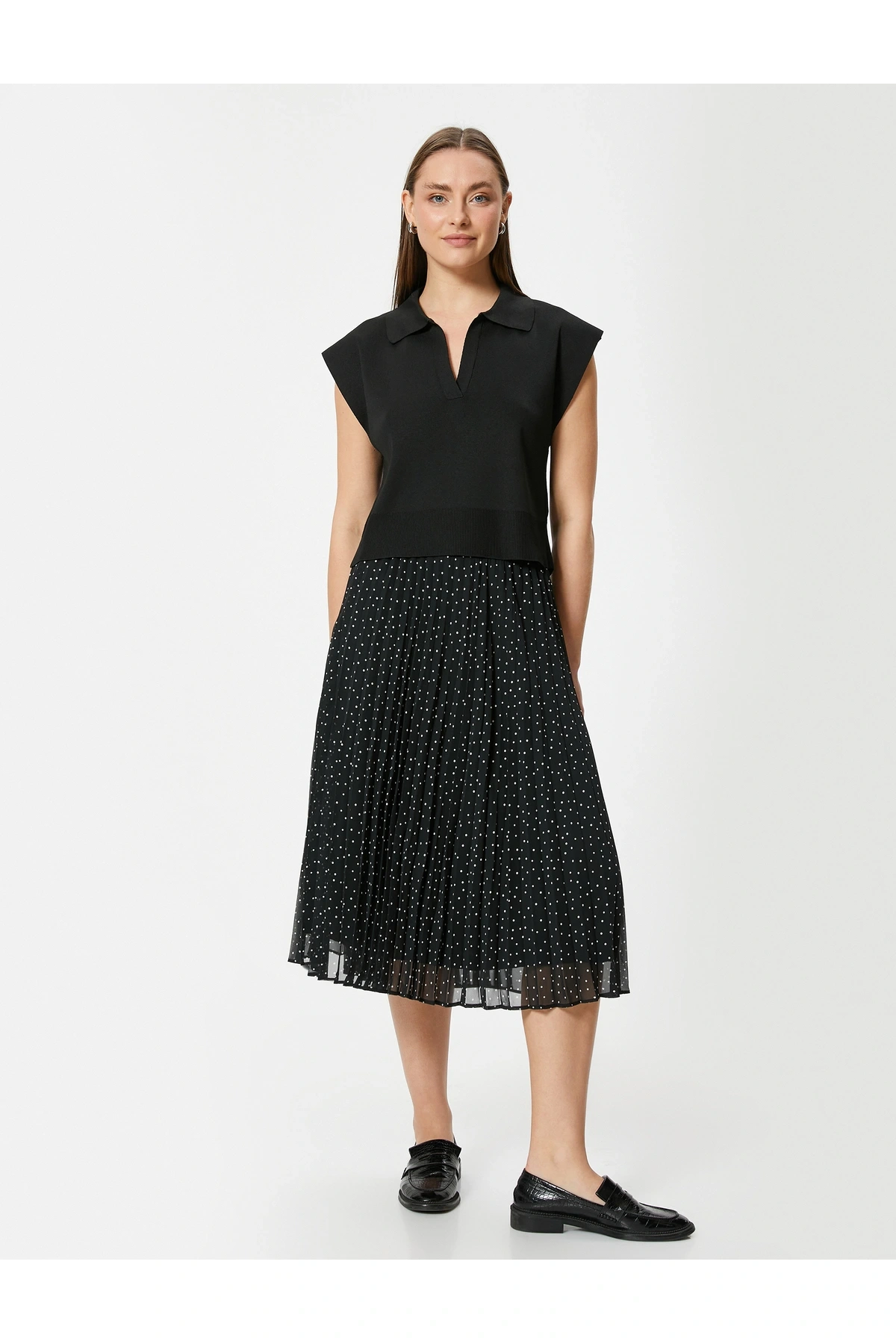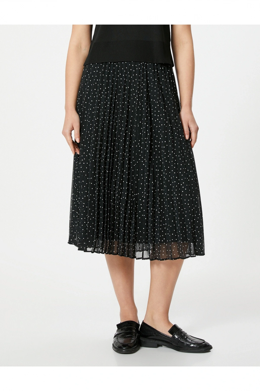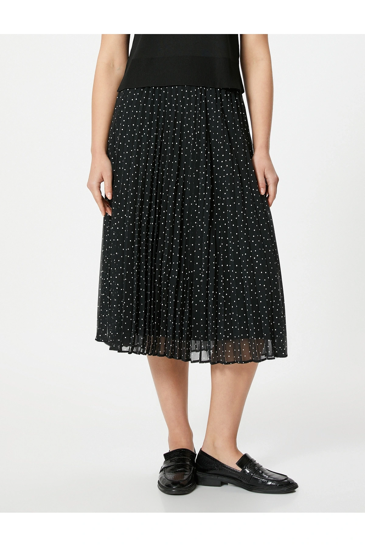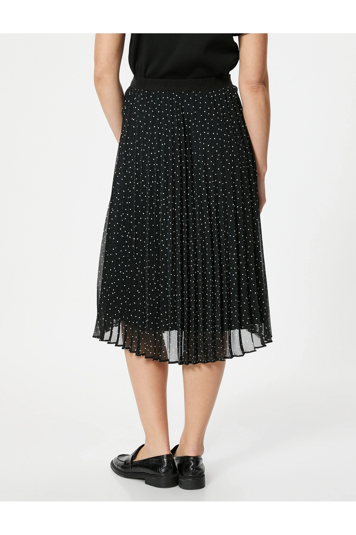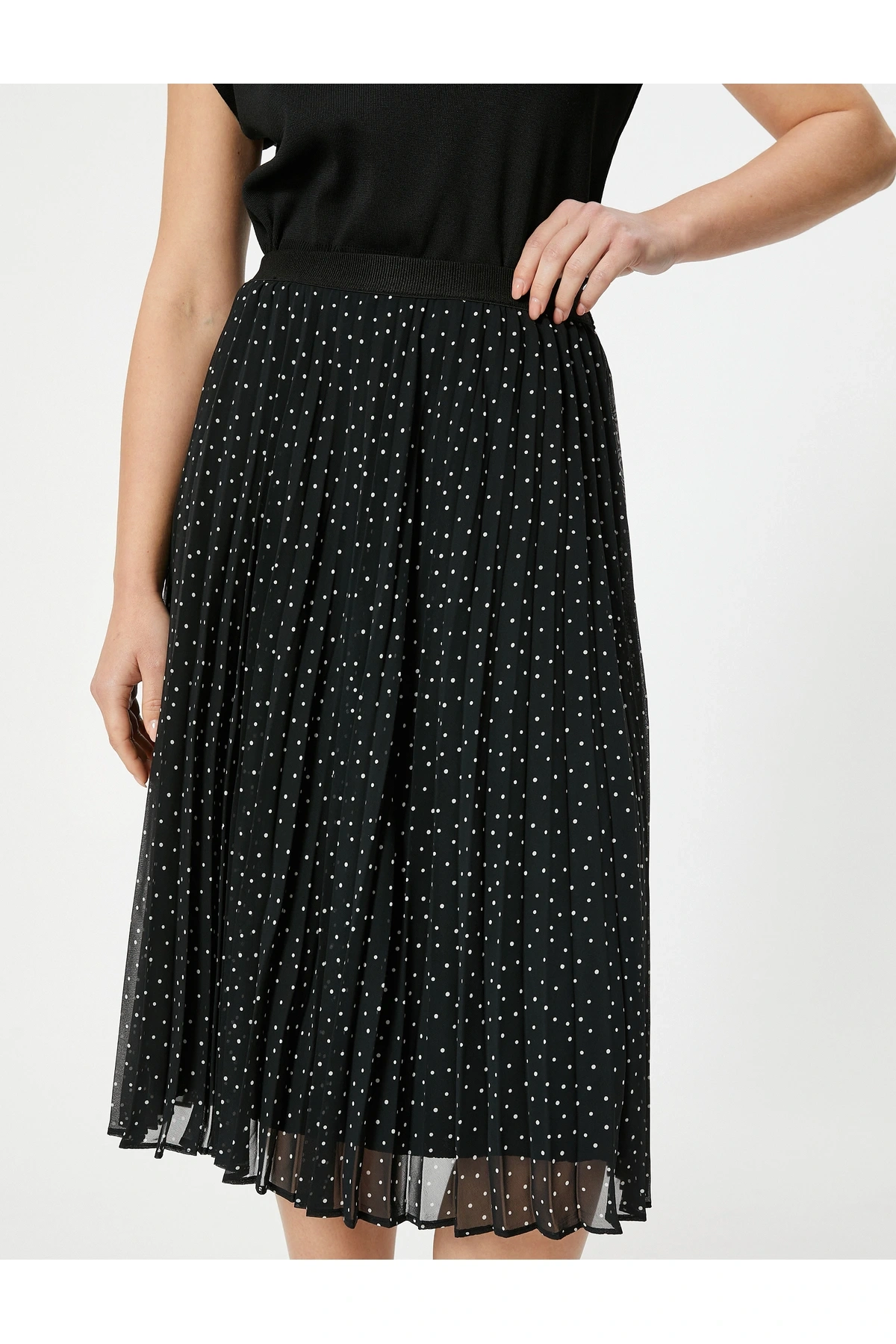 Yüksek Bel Tül Astarlı Pileli Puantiyeli Midi Etek