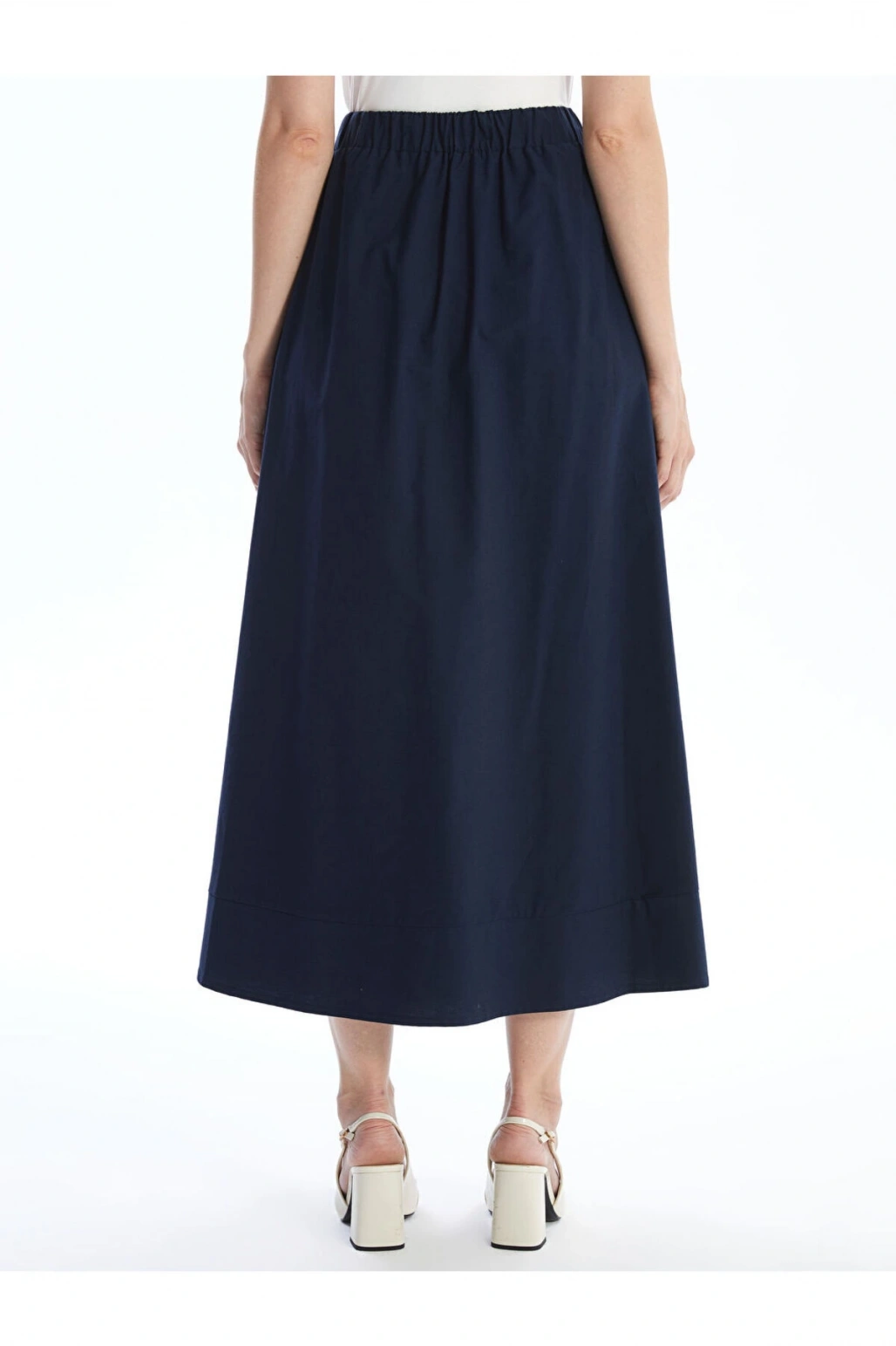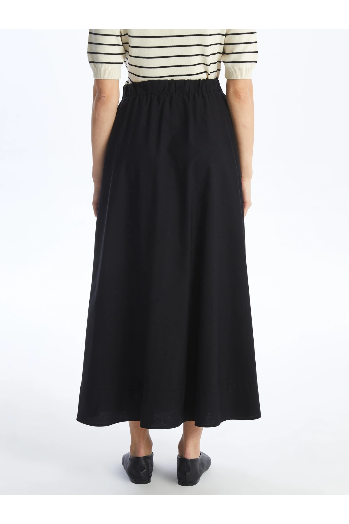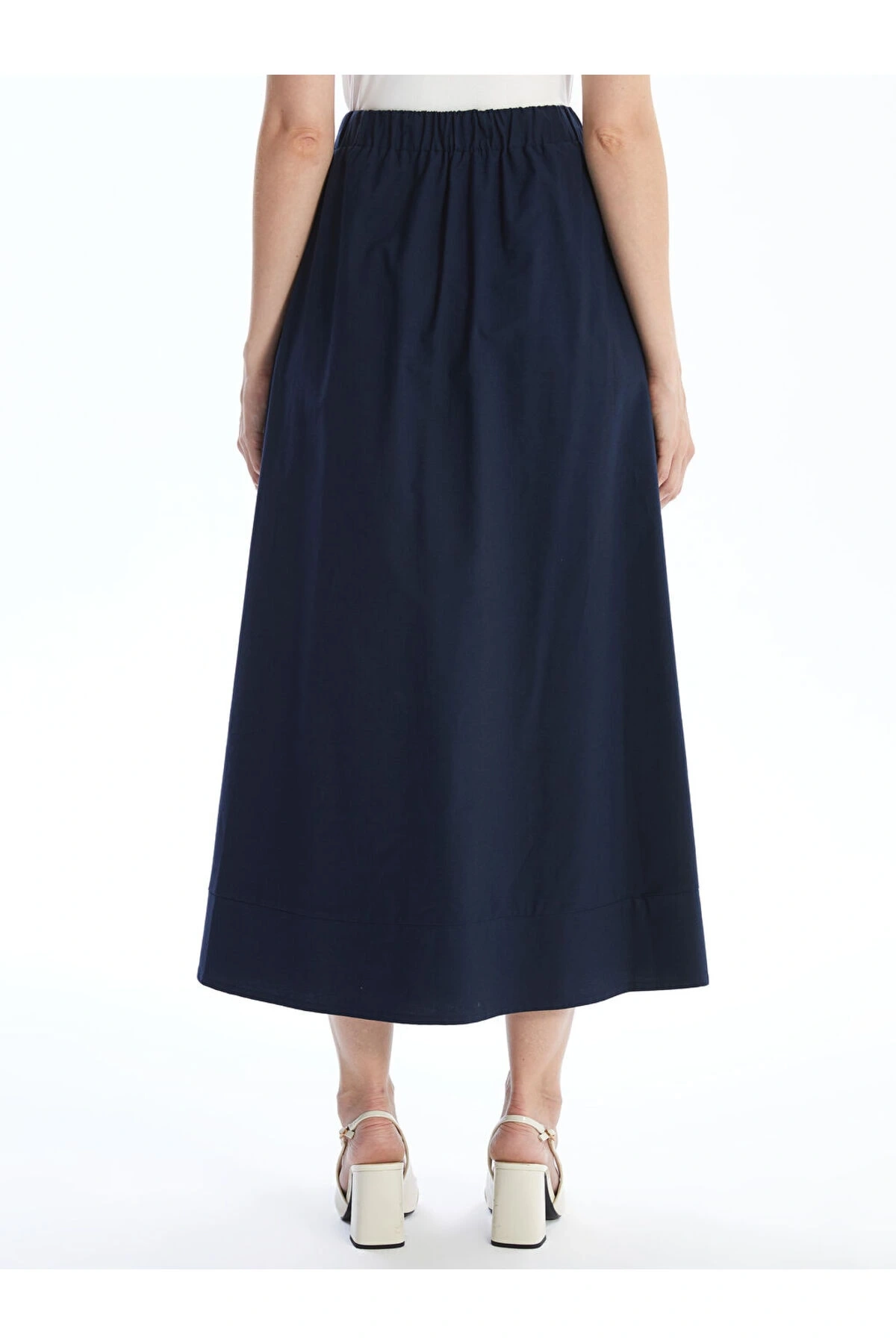 Lw - Beli Lastikli Düz Poplin Kadın Etek