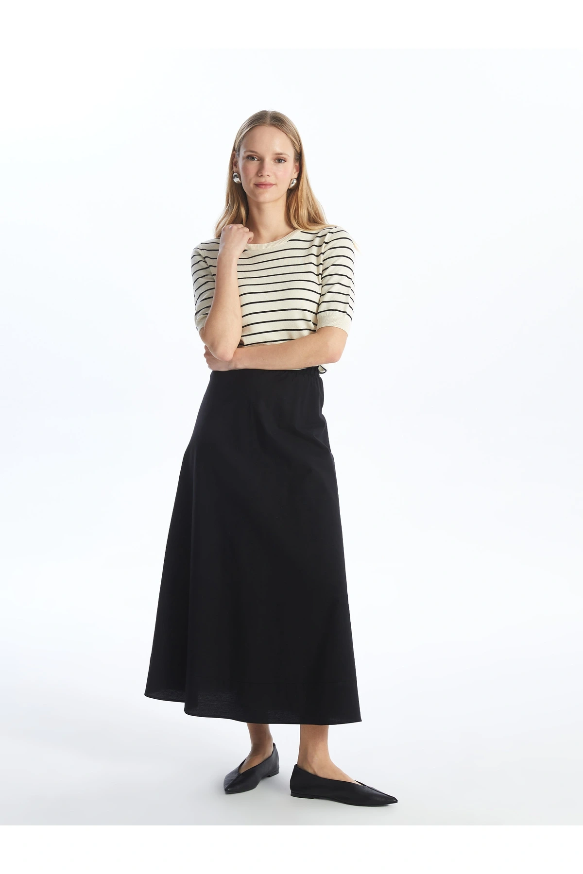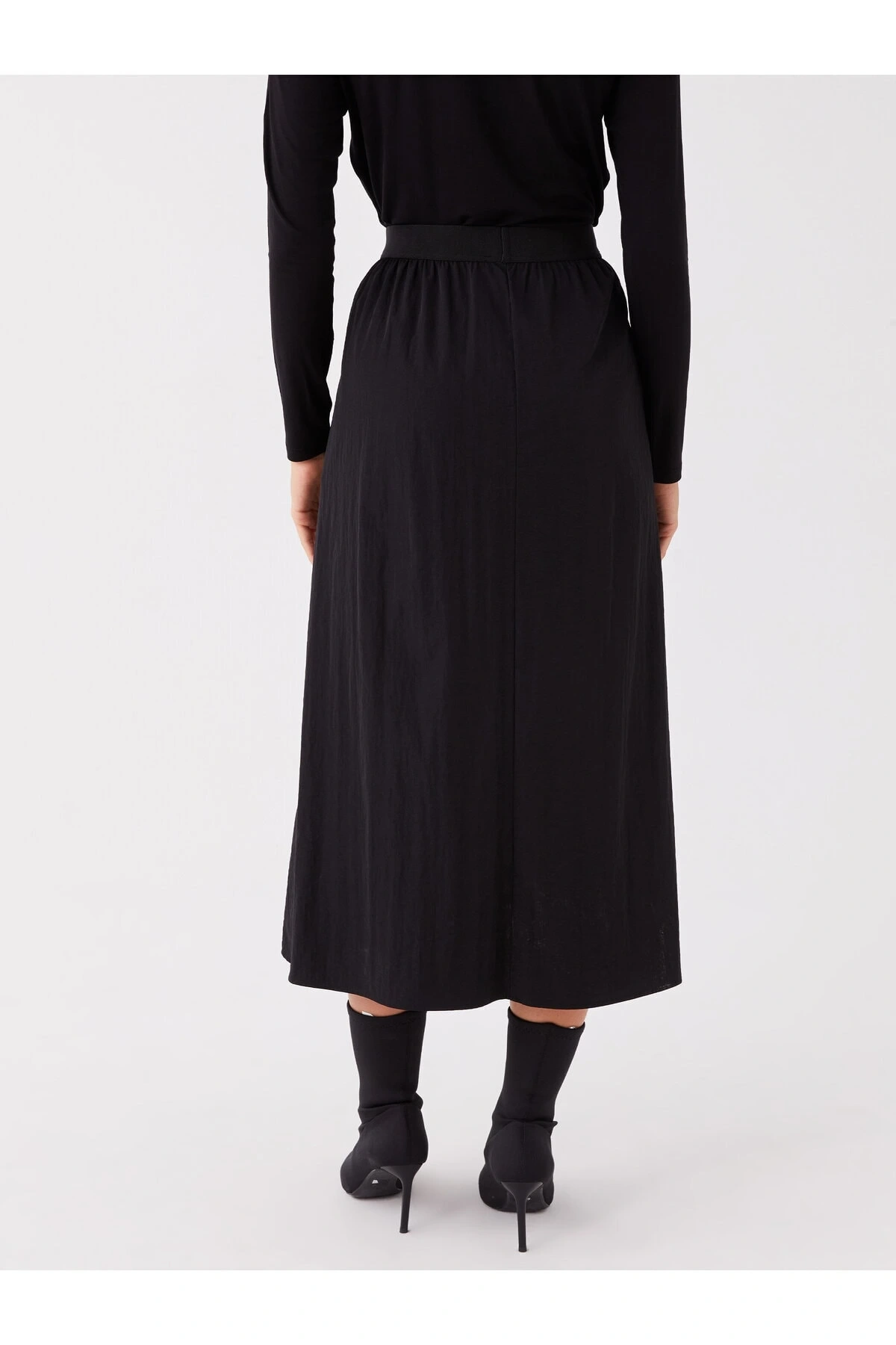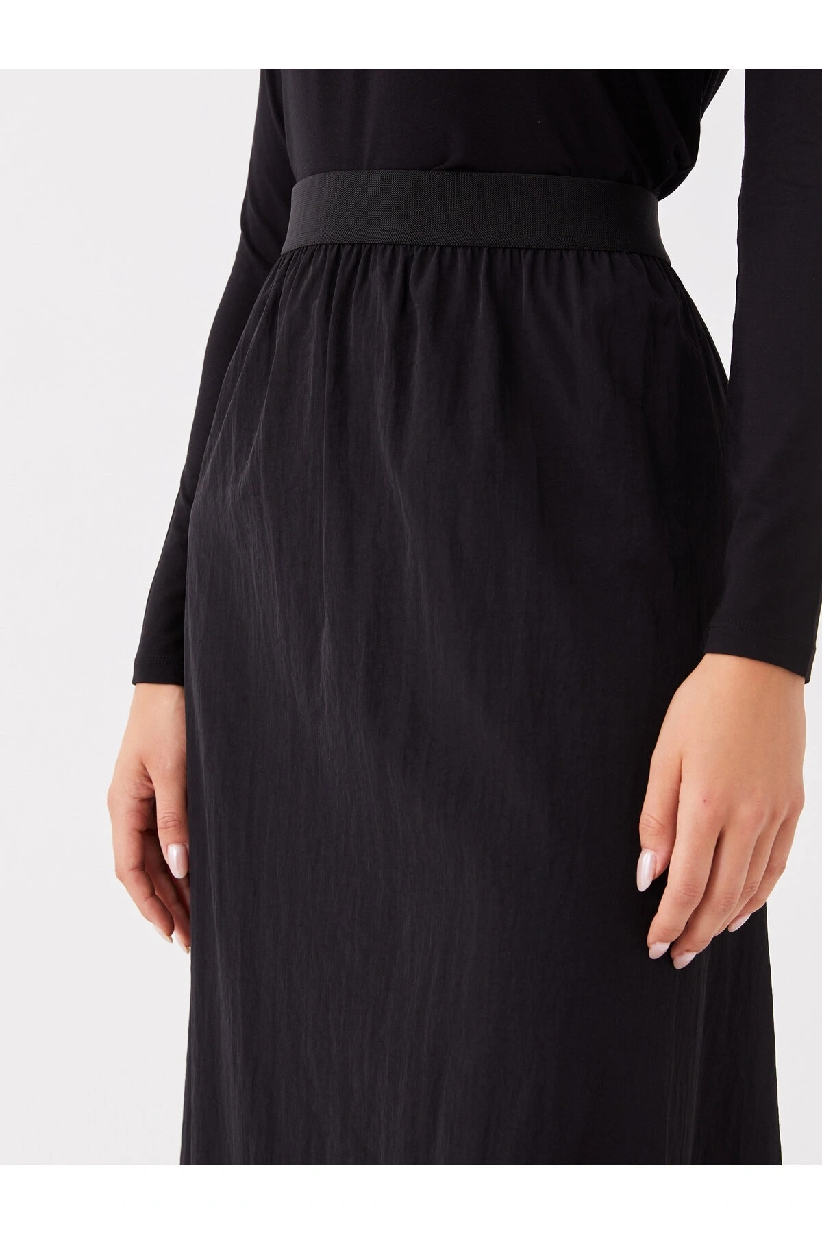 Lw - Beli Lastikli Düz Poplin Kadın Etek
