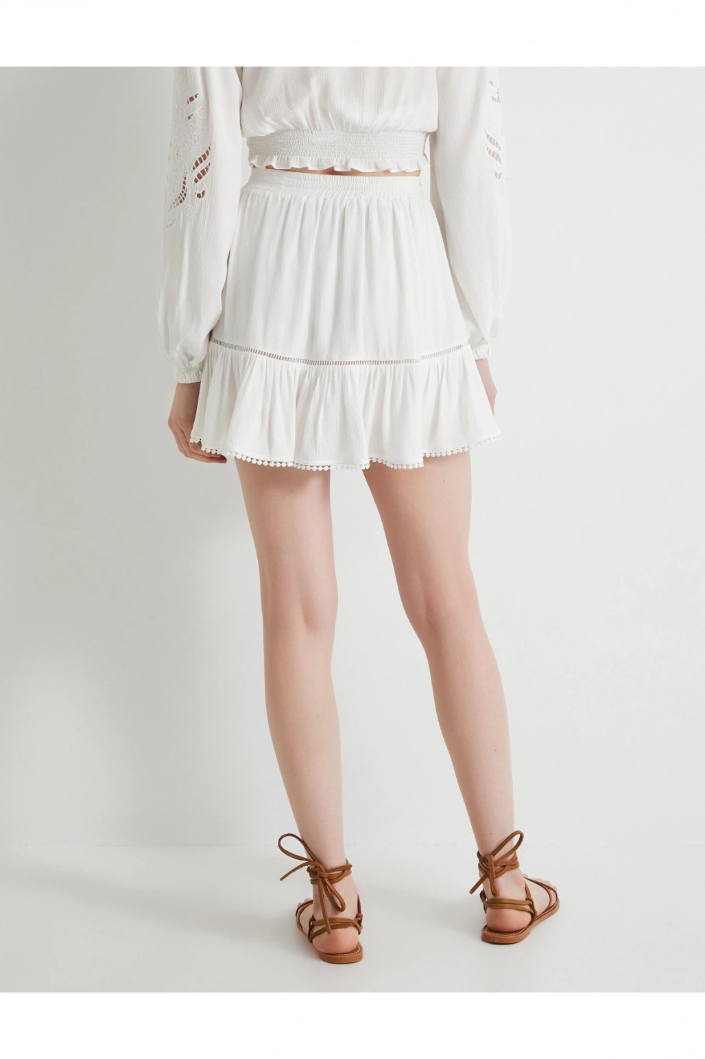 Mini Etek Viskon Beli Lastikli Volanlı
