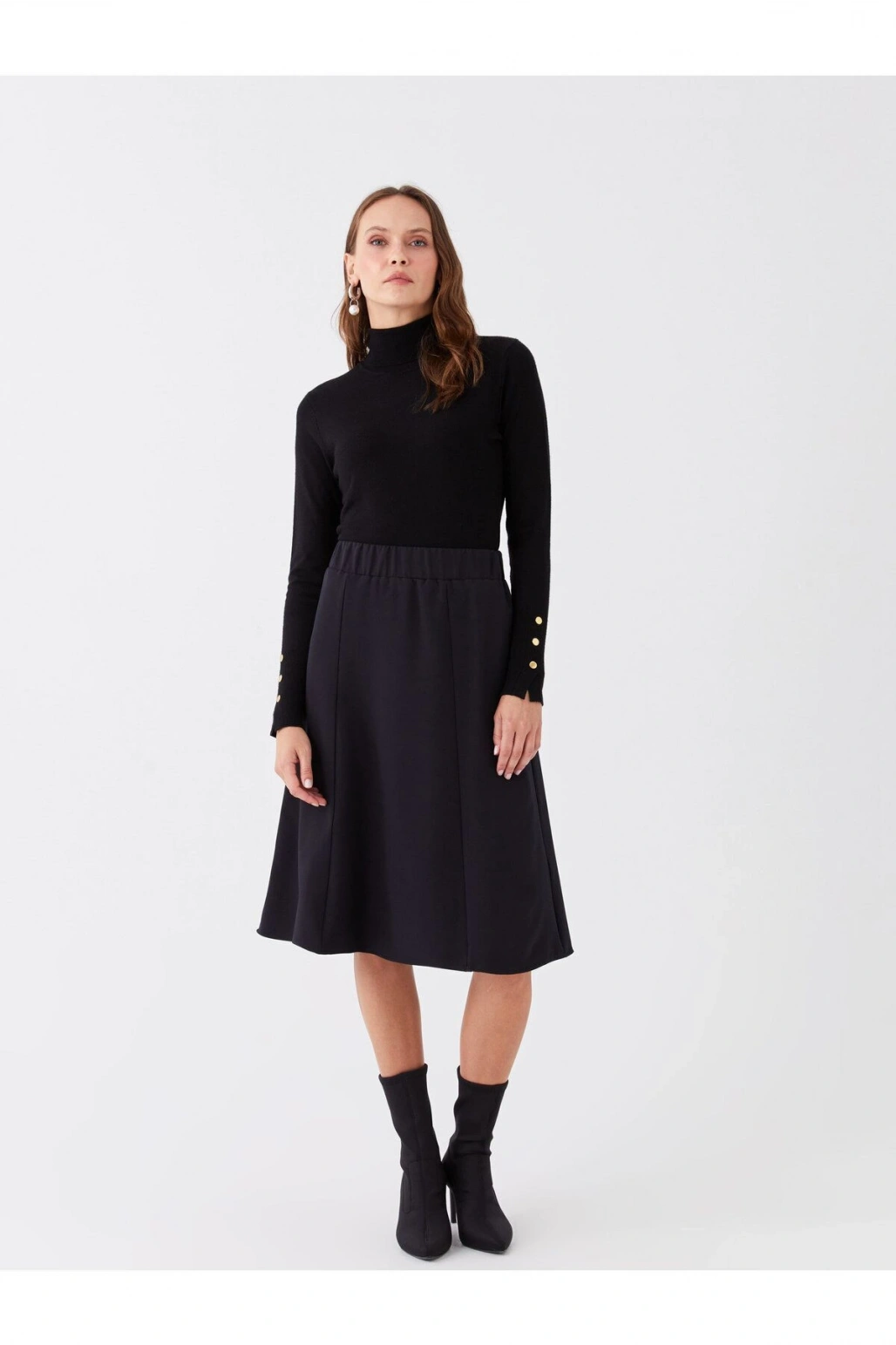 Beli Lastikli Düz A Kesim Kadın Etek