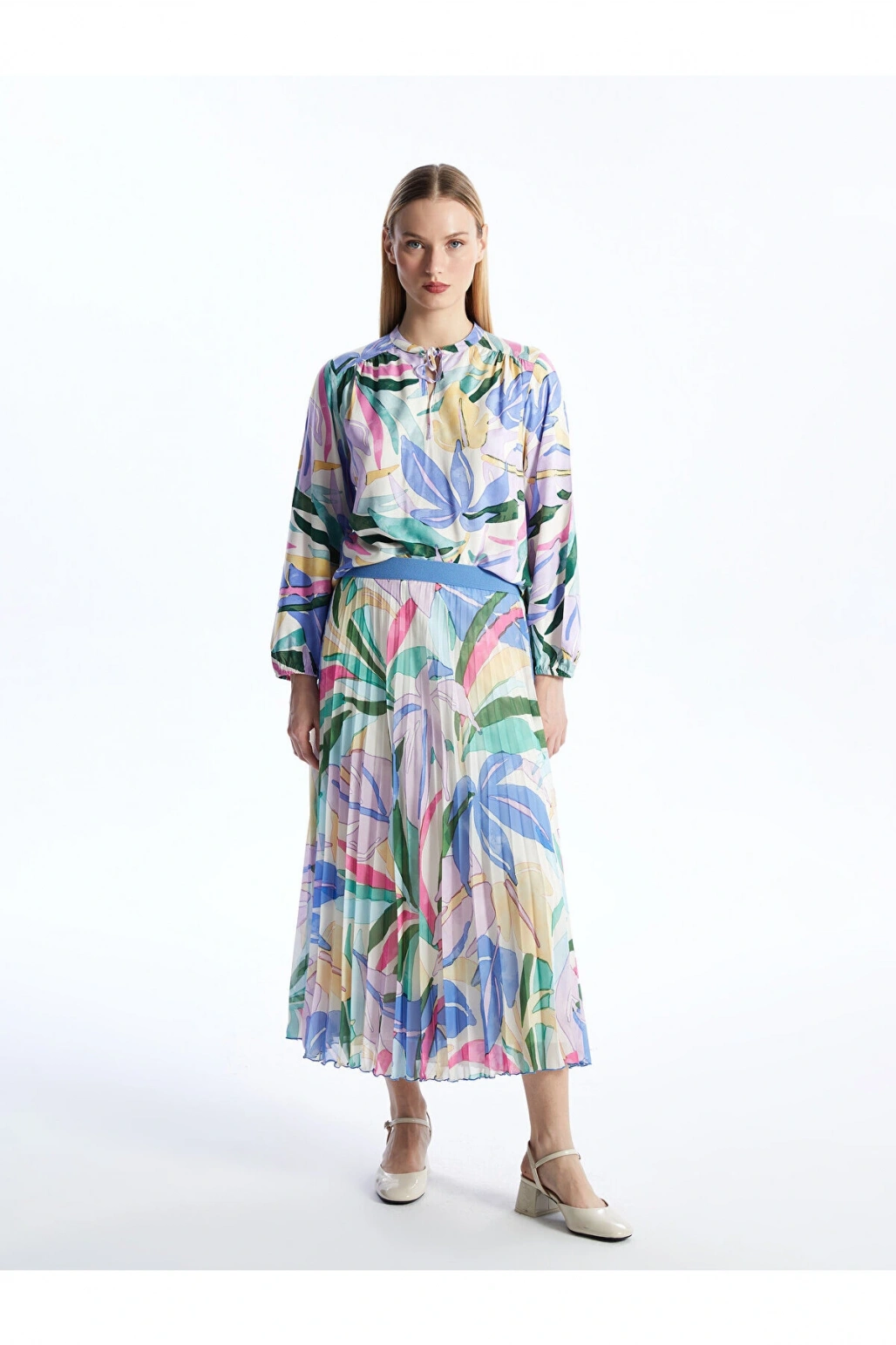 Beli Lastikli Desenli Şifon Kadın Pileli Etek