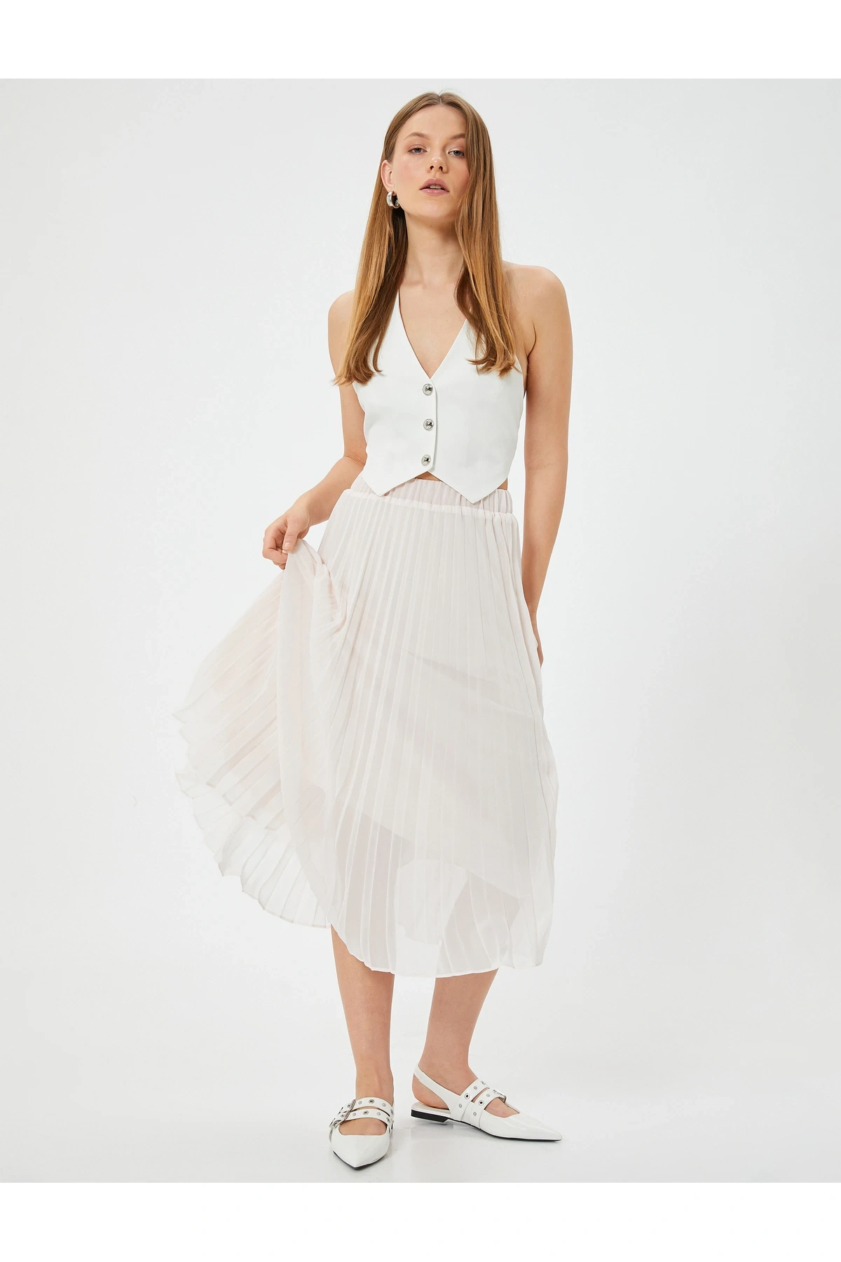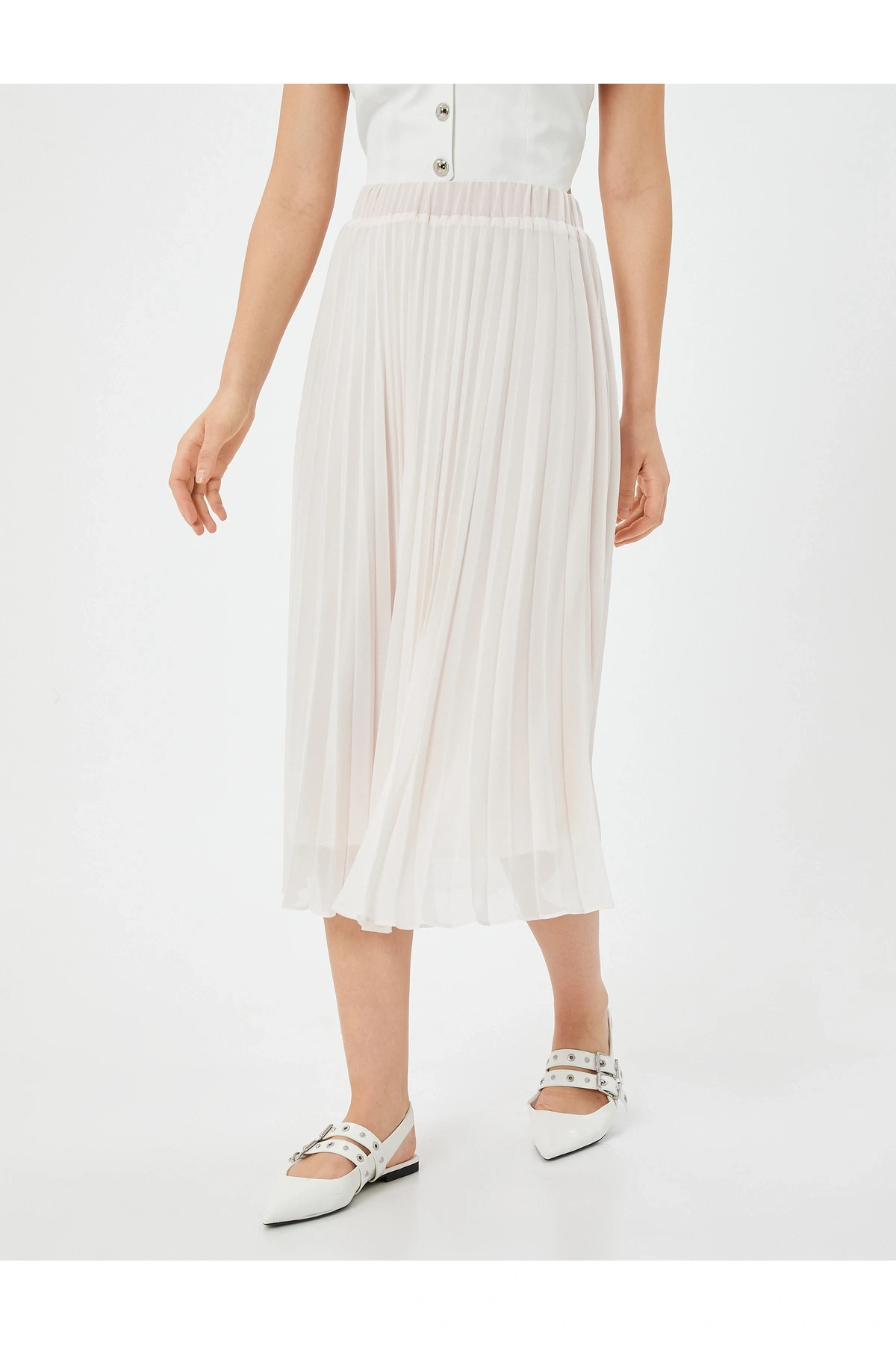 Midi Tül İnce Pliseli Etek Astarlı Yüksek Bel