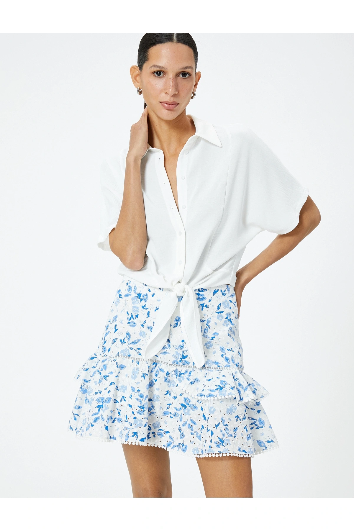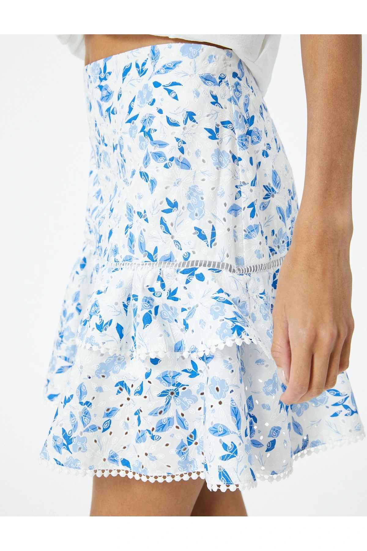 Çiçekli Mini Fisto Etek Volanlı Pamuklu
