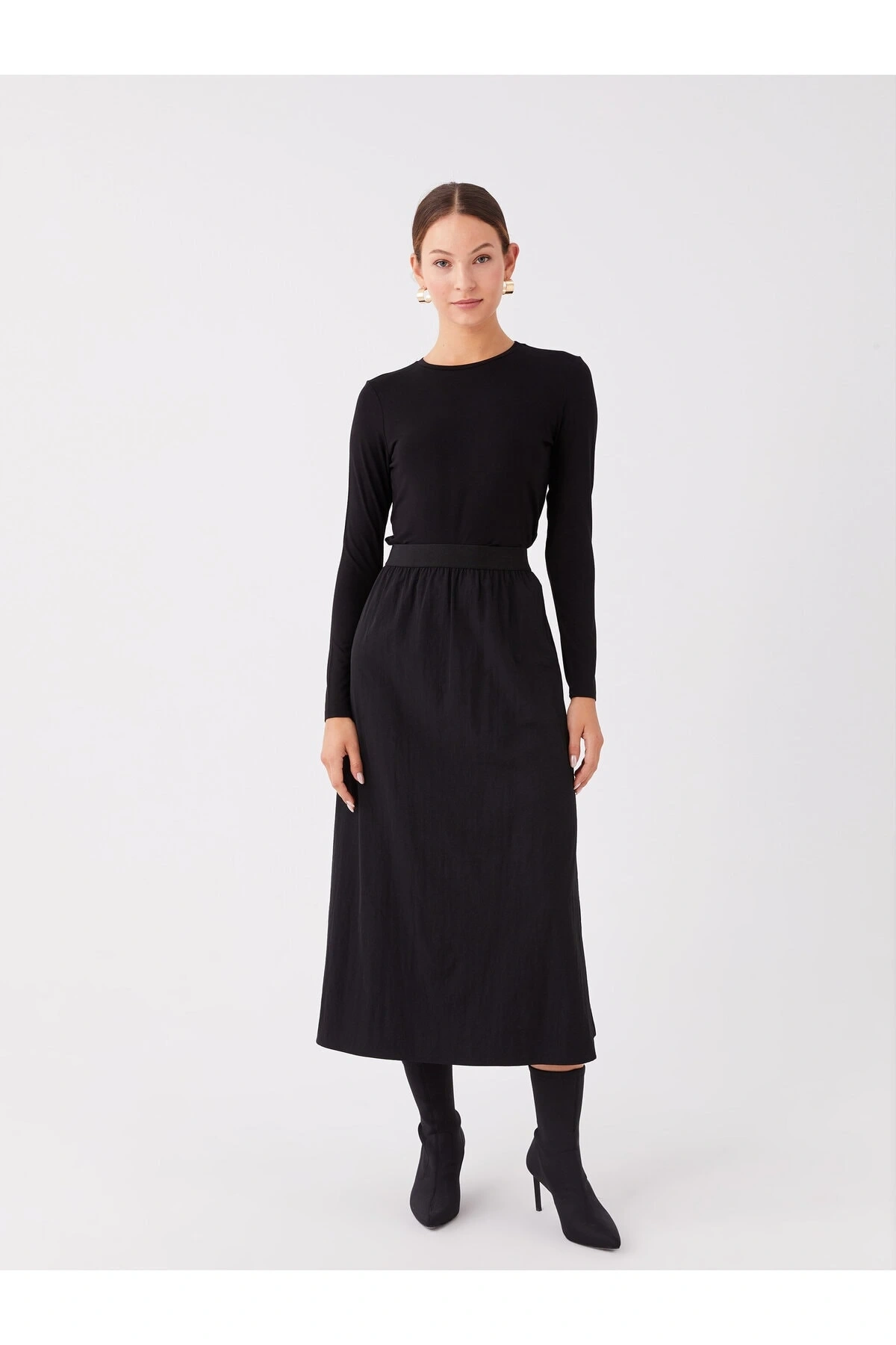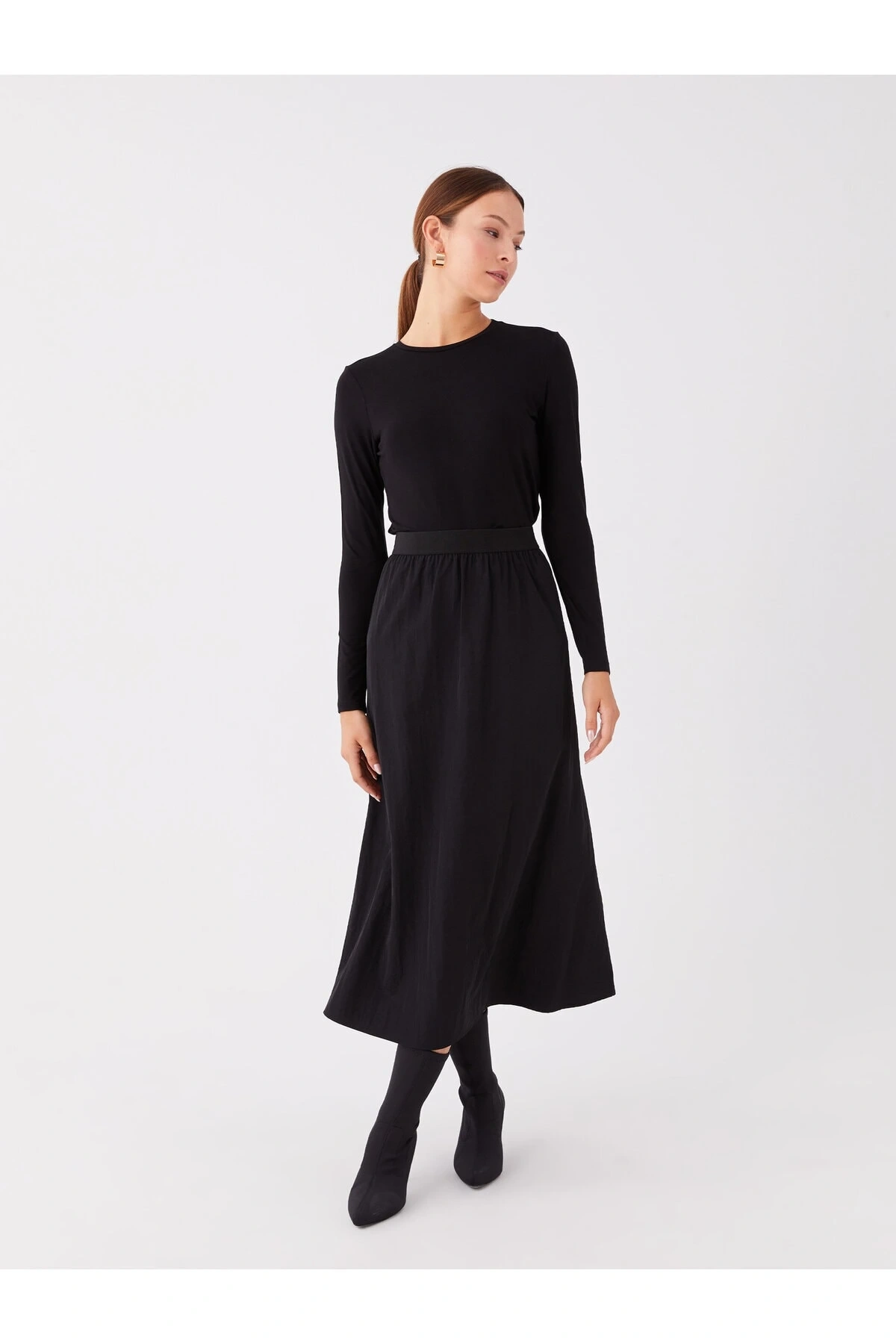 Kadın Beli Lastikli Düz Etek