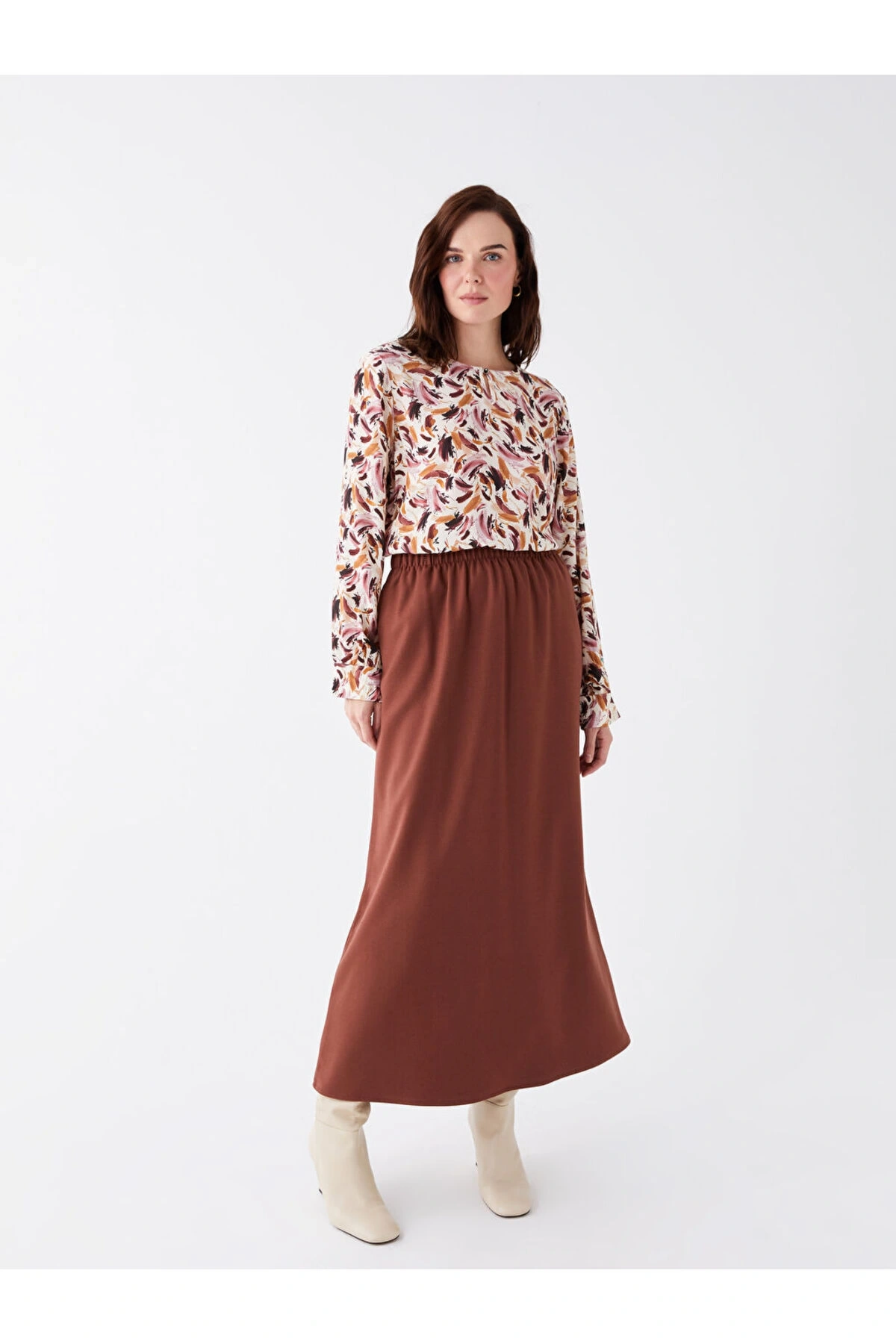 Lcw Beli Lastikli Düz Poplin Kadın Etek