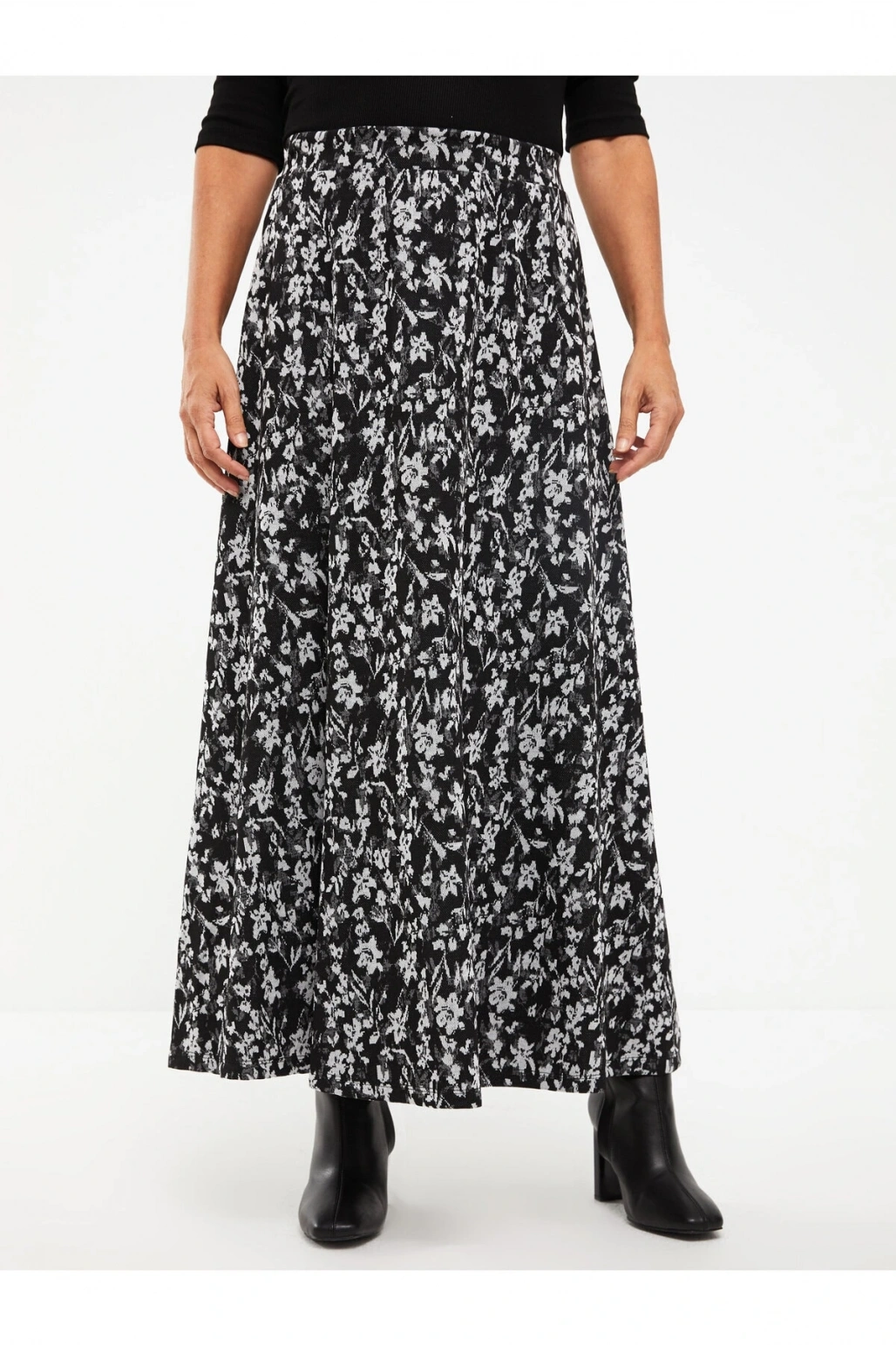 Beli Lastikli Desenli Ponte Kadın Kloş Etek