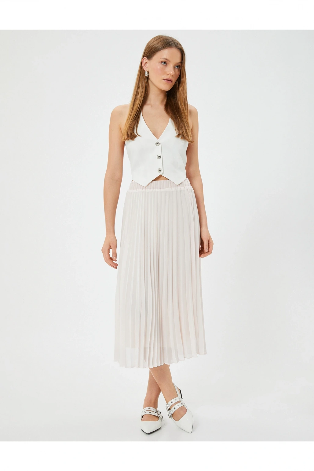 Midi Tül İnce Pliseli Etek Astarlı Yüksek Bel