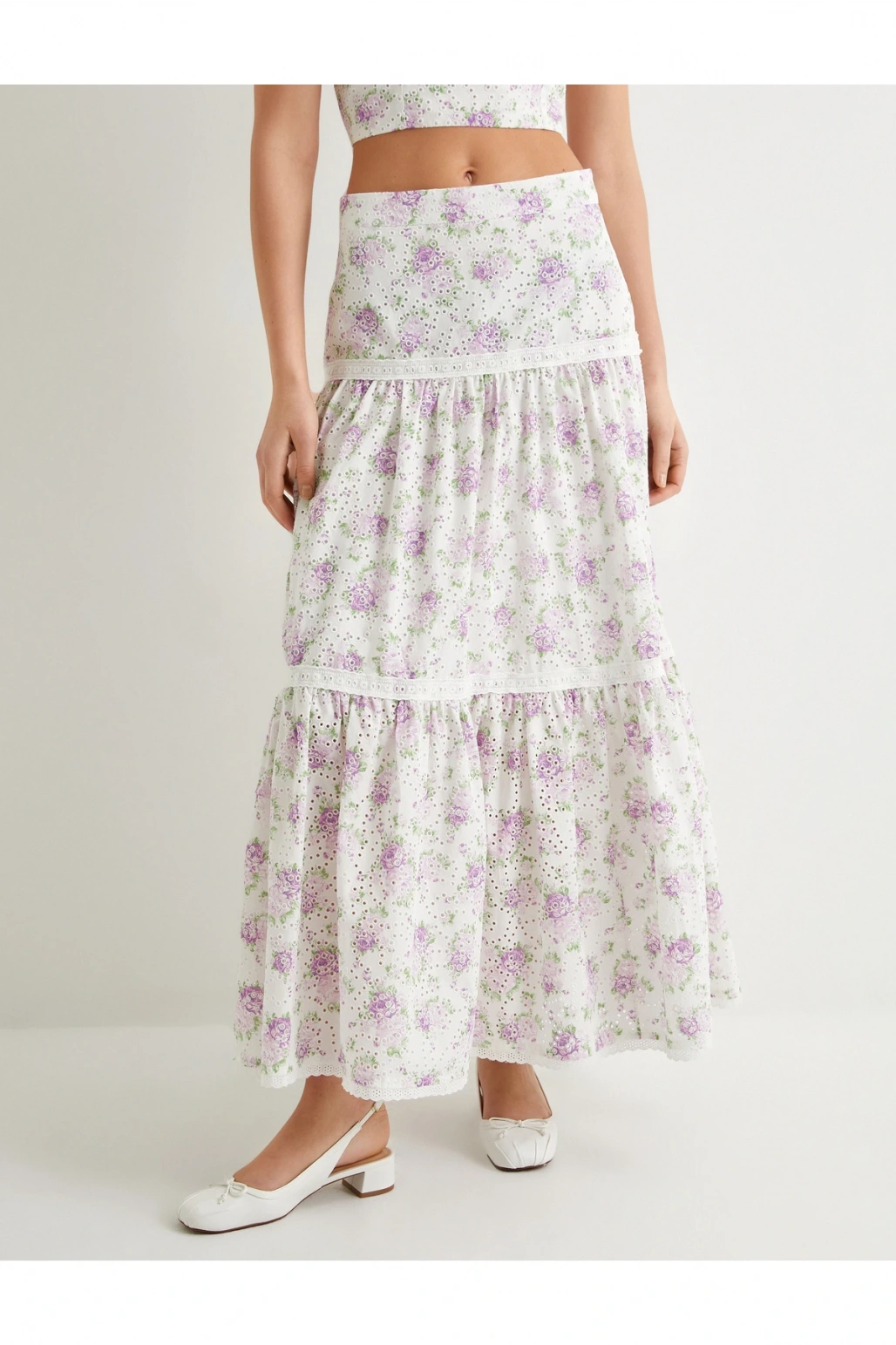 Çiçekli Uzun Etek Normal Bel Volanlı Pamuklu Fistolu