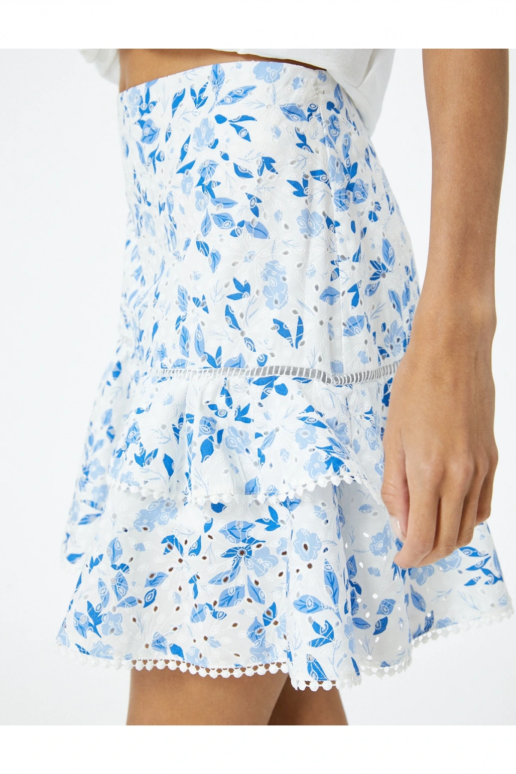 Çiçekli Mini Fisto Etek Volanlı Pamuklu