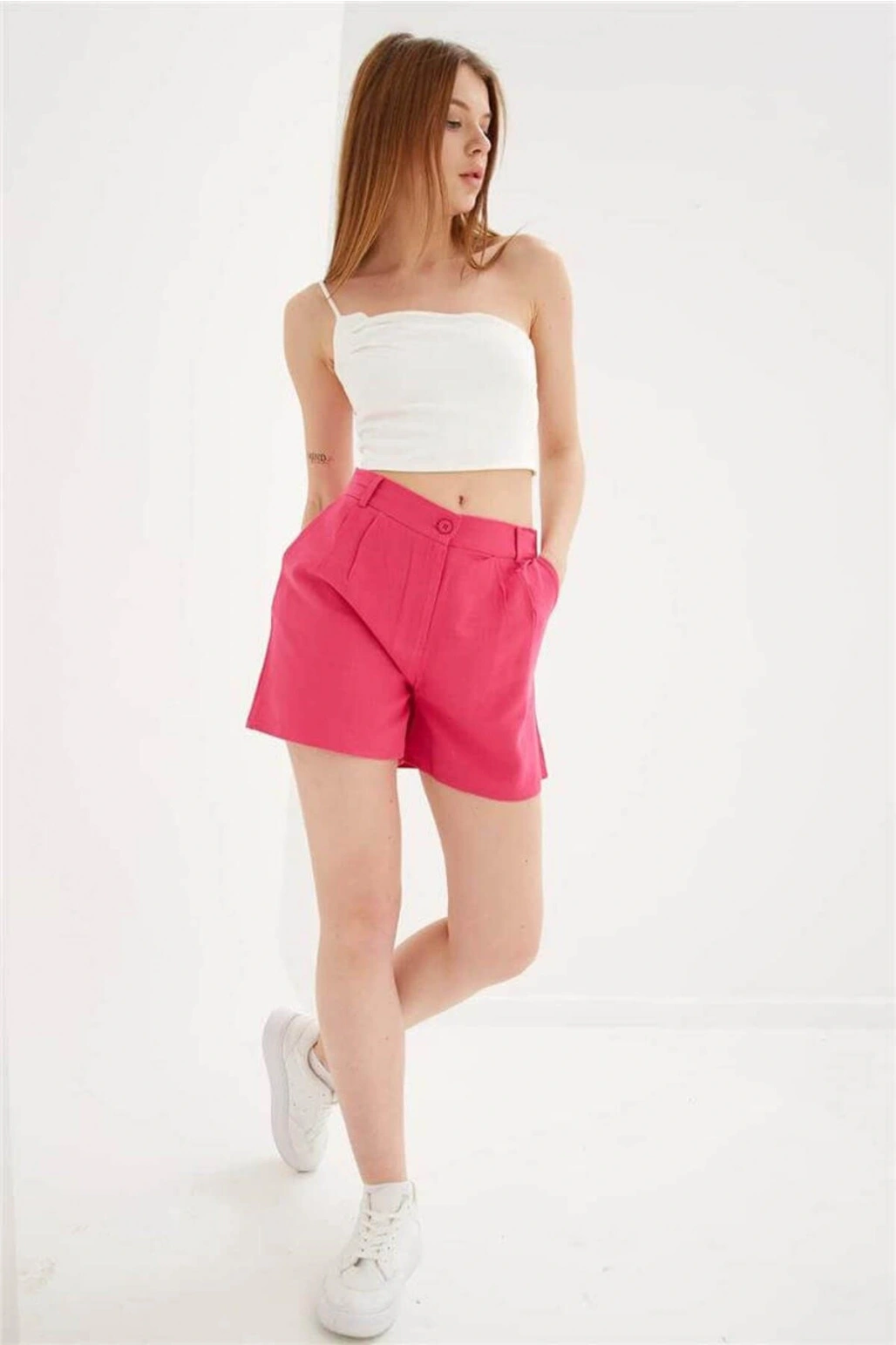Pileli Şort Fuşya