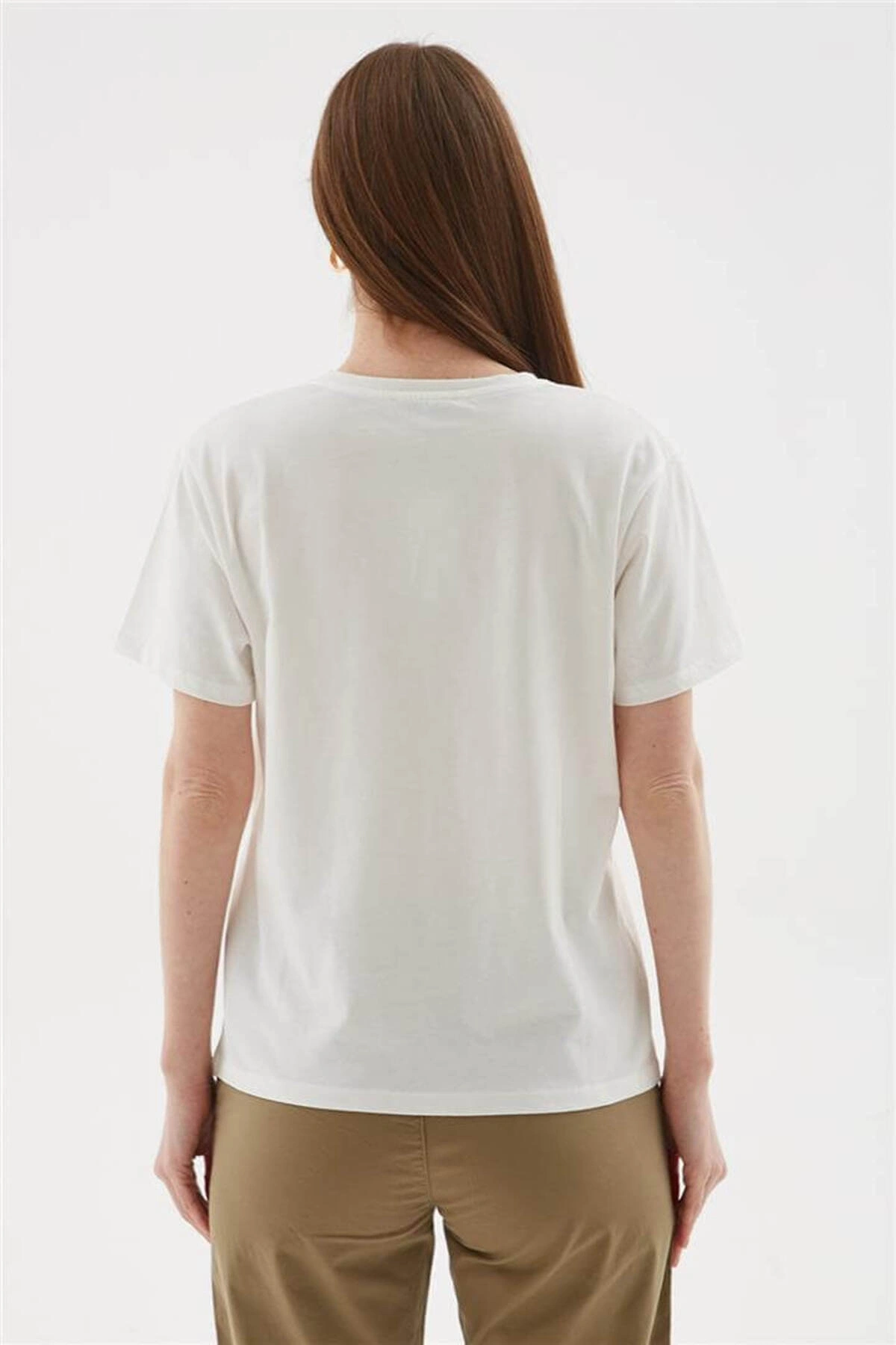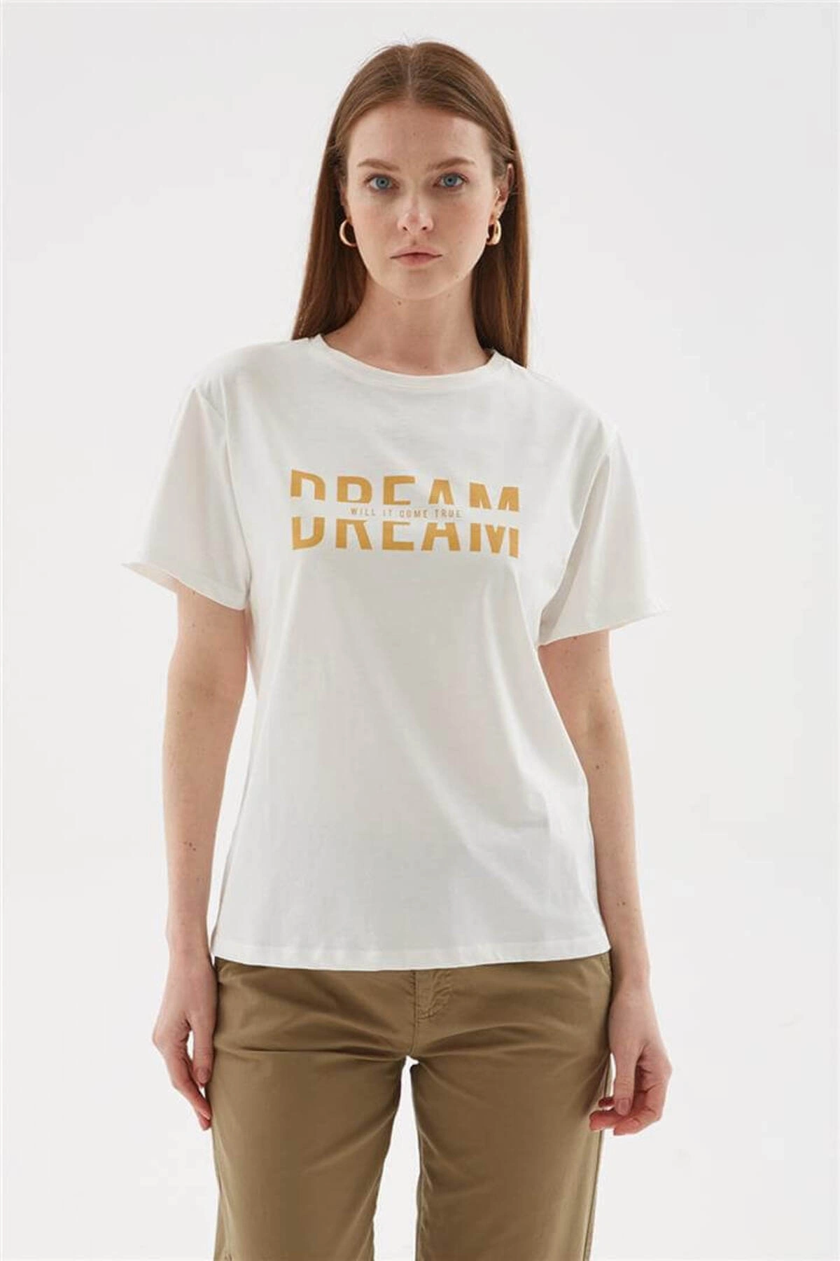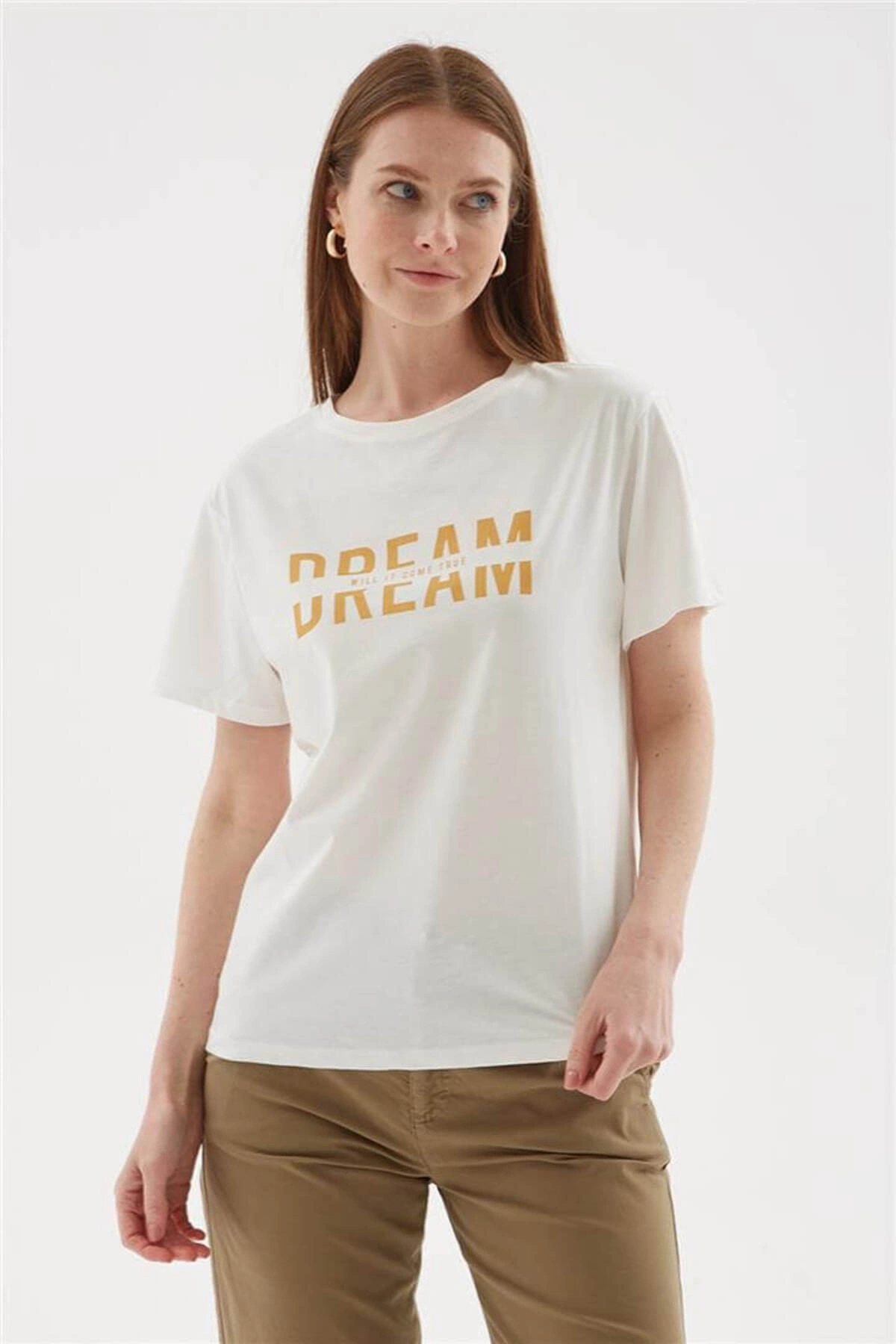 Fashion Friends Baskılı %100 Pamuklu Tişört Ekru