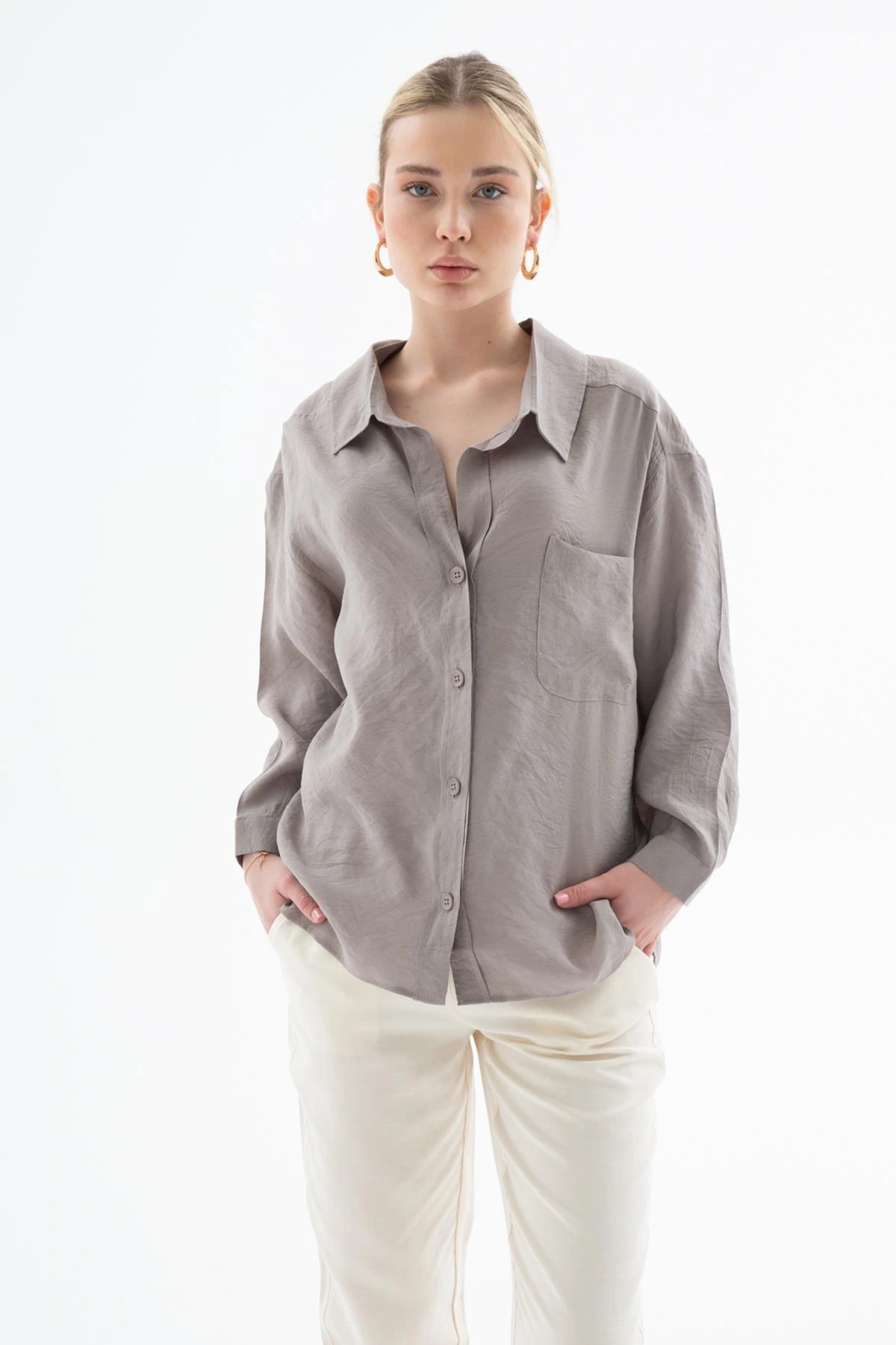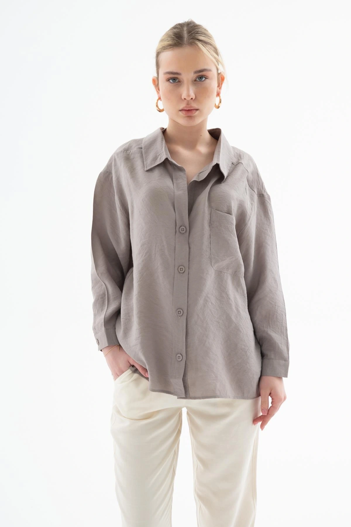 Oversize Cep Detaylı Uzun Kollu Gömlek GÖMLEK 25Y0571K1