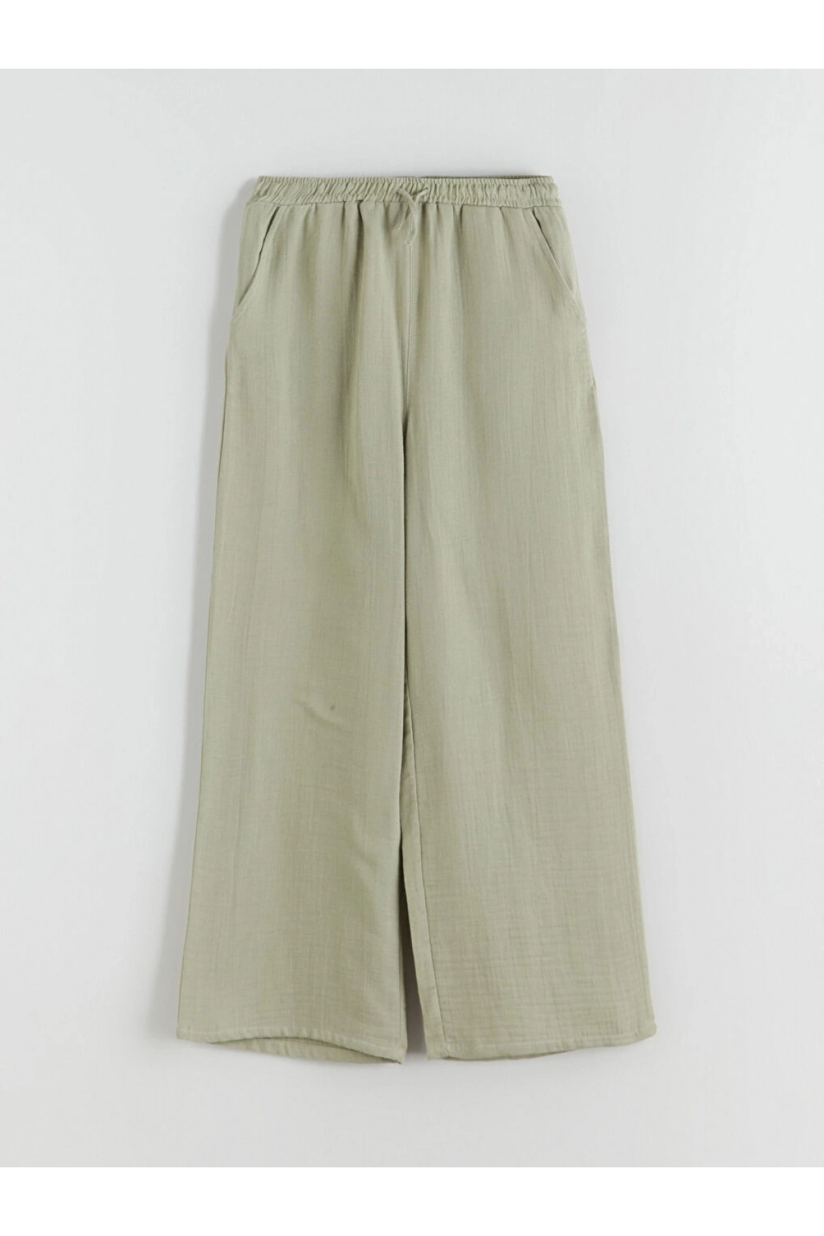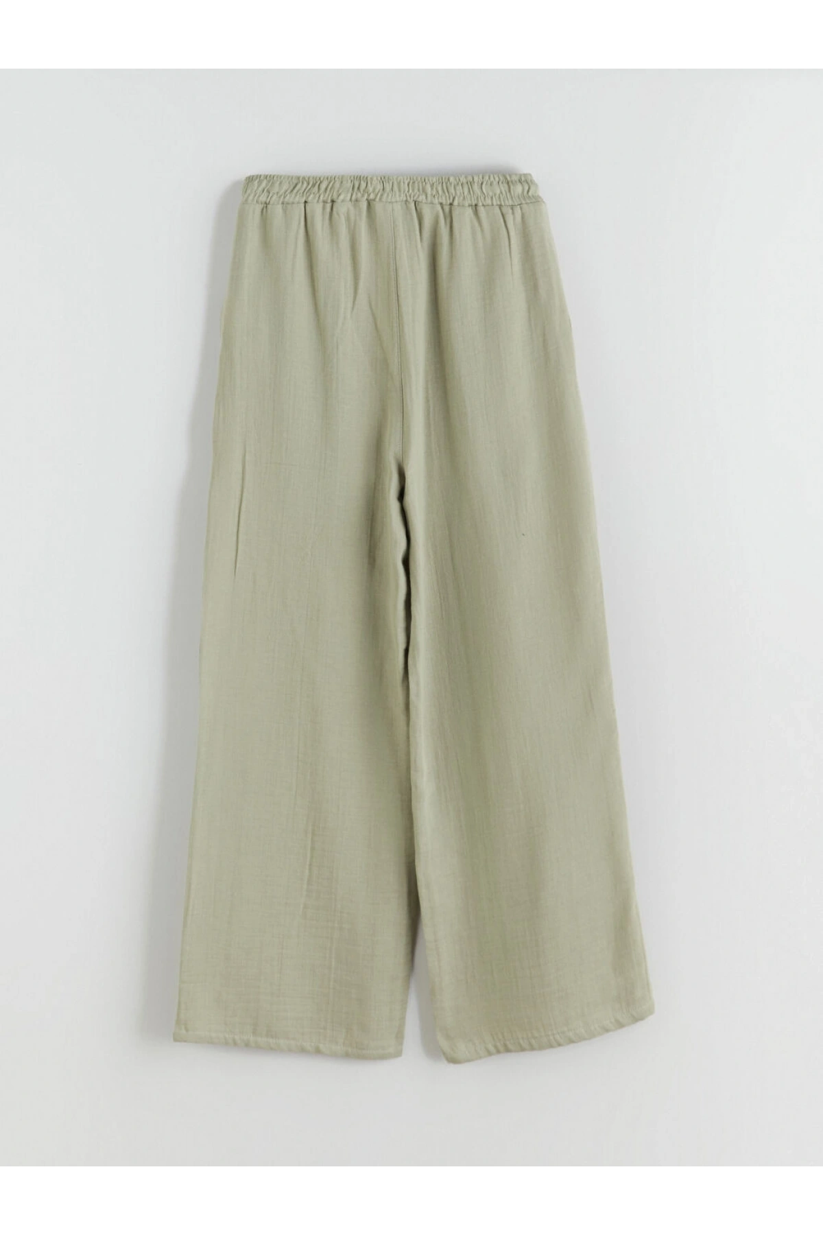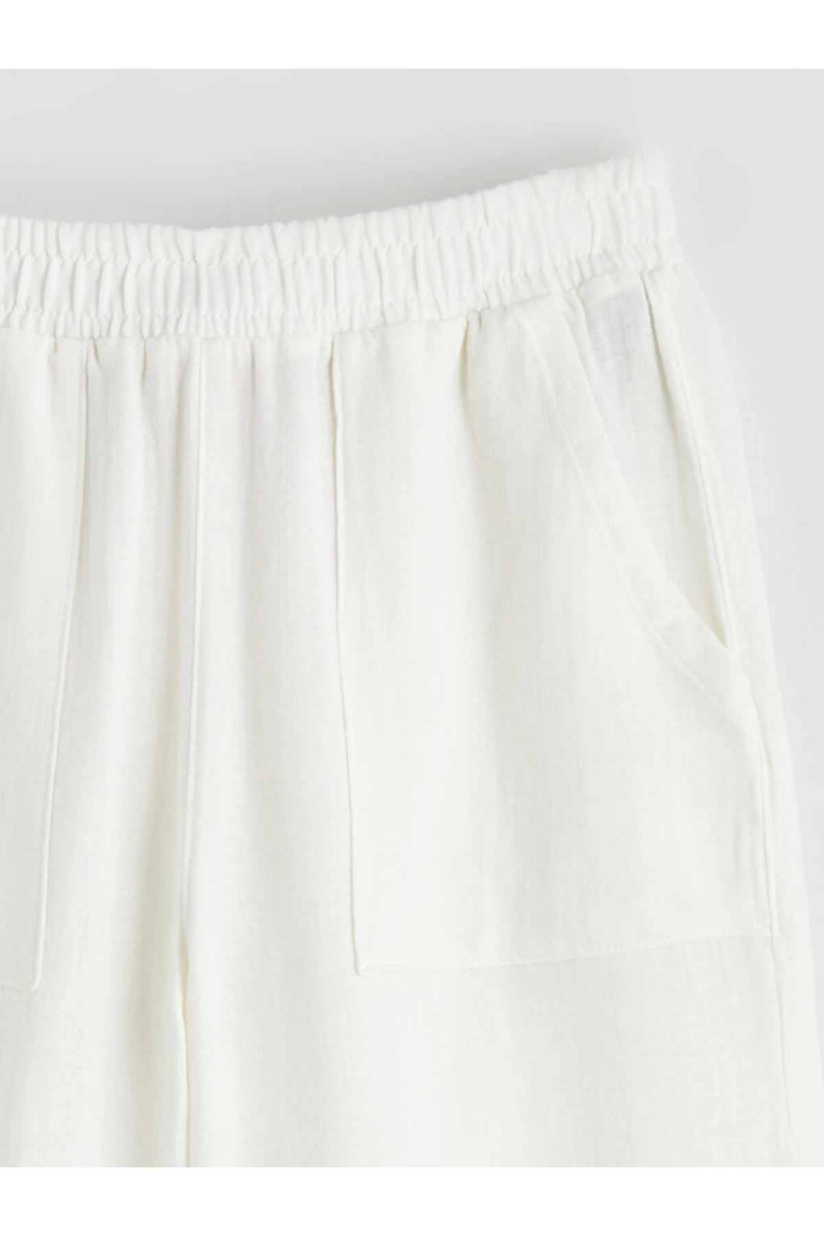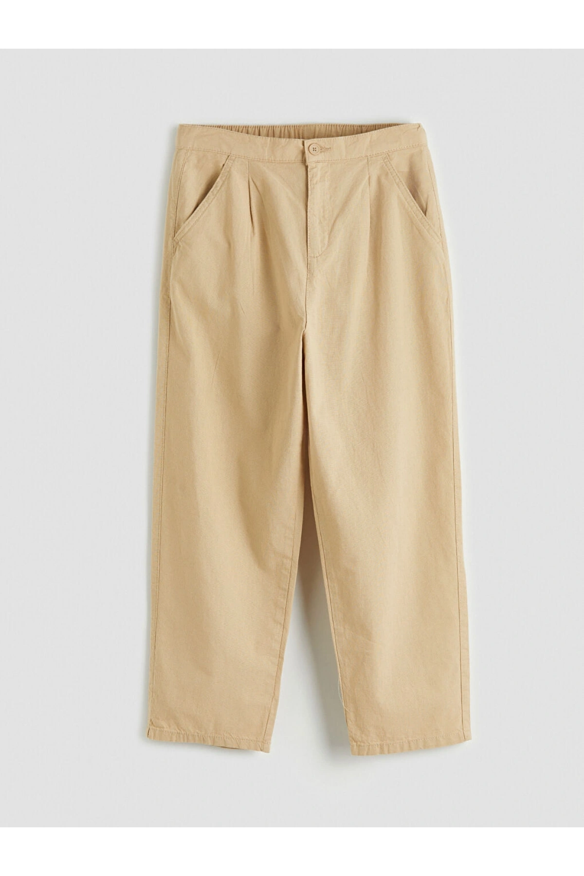 Geniş Paça Keten Pantolon Bej - Kadın Yüksek Bel Geniş Paça, Lastikli, %60 Viskon %25 Pamuk %15 Keten, Dokuma| Fashion Friends Model Ölçüleri:Boy:1.70, Göğüs:90, Bel:68, Basen:90 Mankenin üzerindeki ürün S/28/36 bedendir.