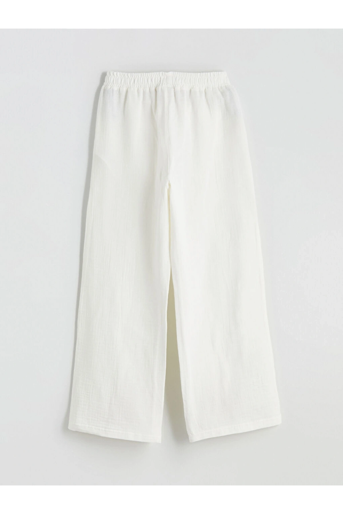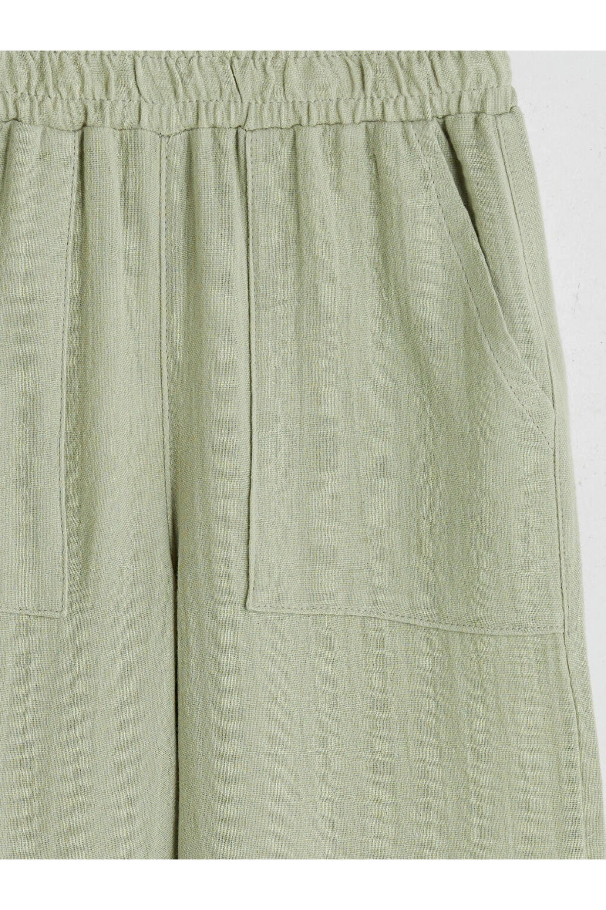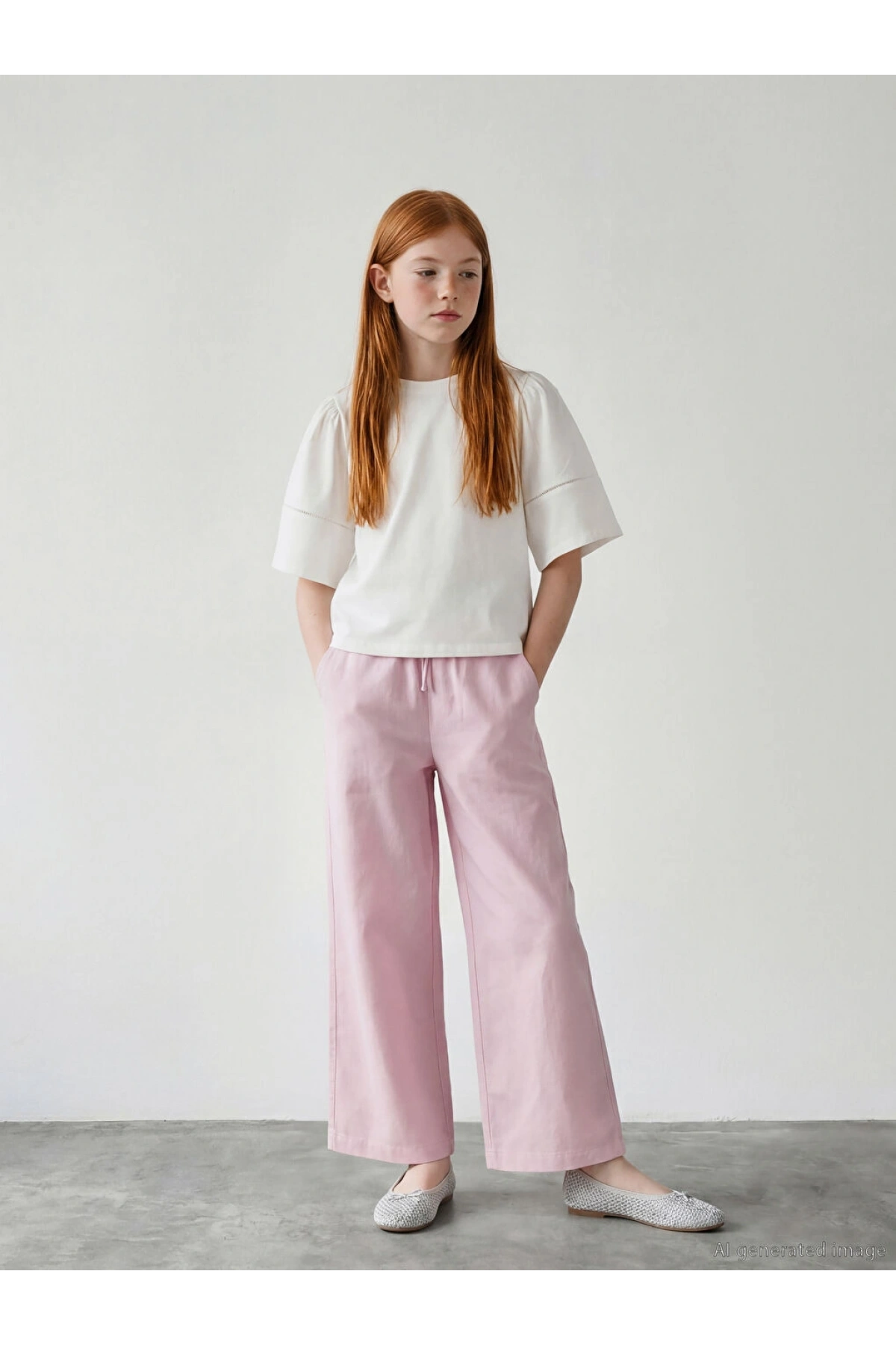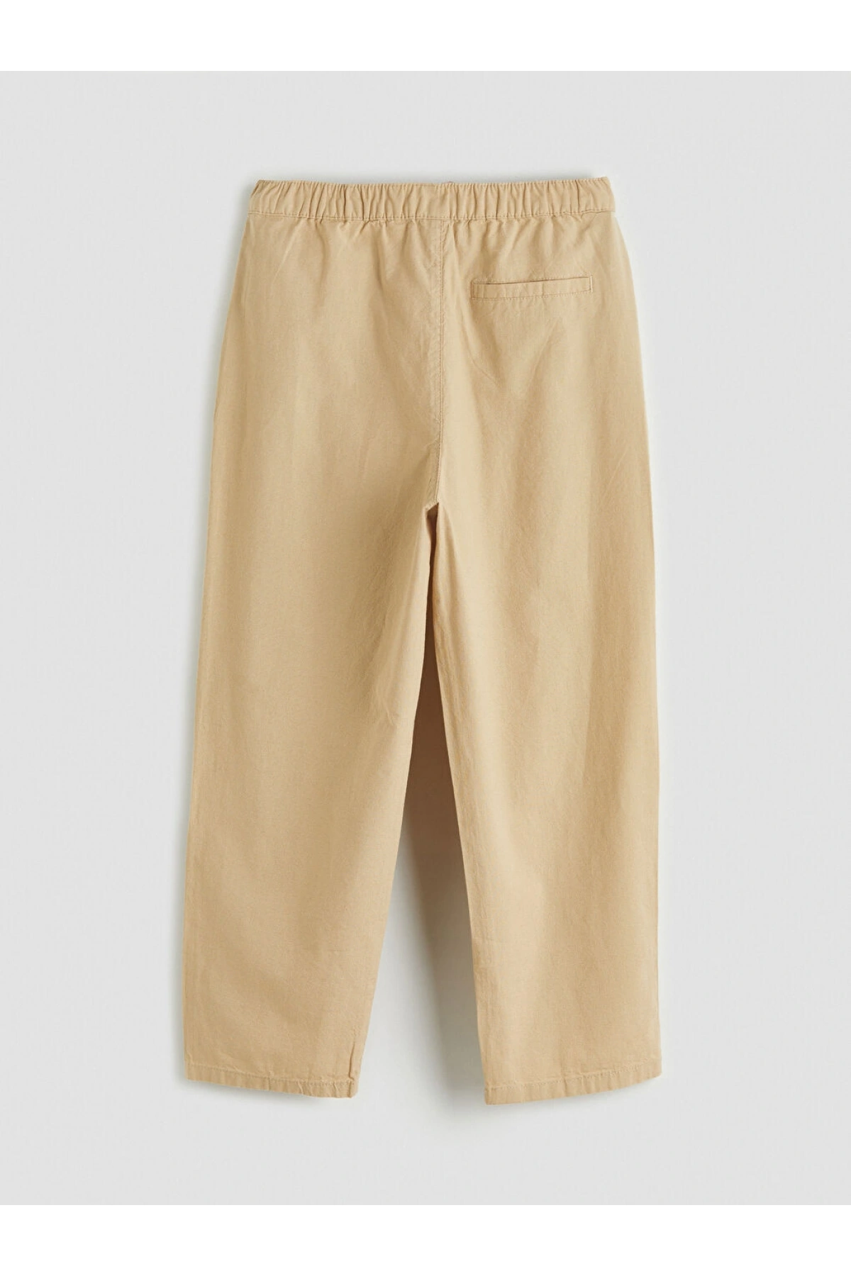 Geniş Paça Keten Pantolon Bej - Kadın Yüksek Bel Geniş Paça, Lastikli, %60 Viskon %25 Pamuk %15 Keten, Dokuma| Fashion Friends Model Ölçüleri:Boy:1.70, Göğüs:90, Bel:68, Basen:90 Mankenin üzerindeki ürün S/28/36 bedendir.