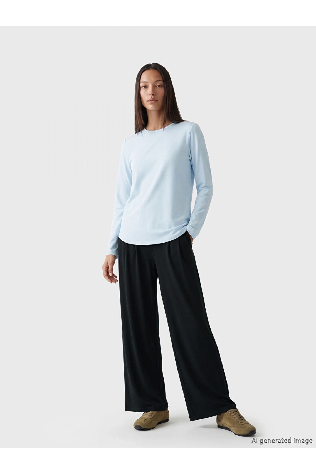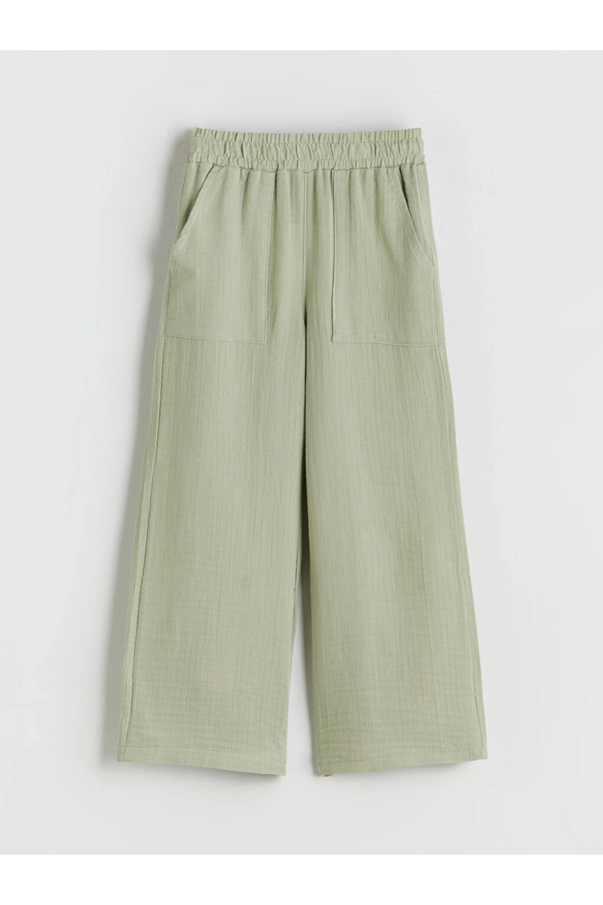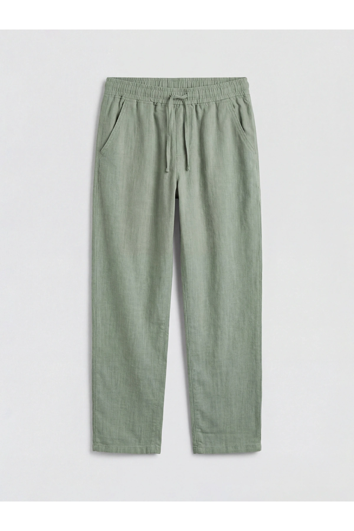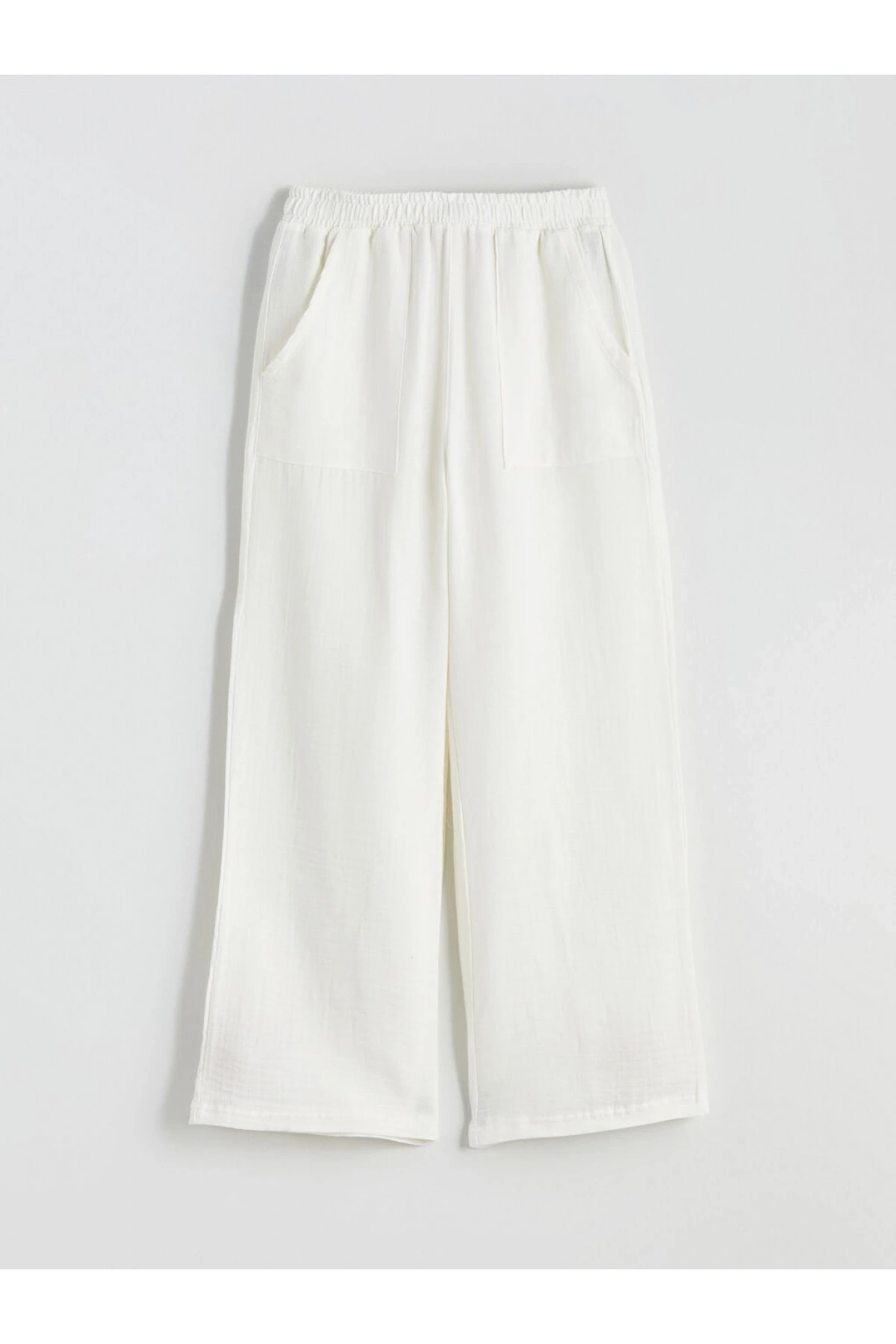 Geniş Paça Keten Pantolon Bej - Kadın Yüksek Bel Geniş Paça, Lastikli, %60 Viskon %25 Pamuk %15 Keten, Dokuma| Fashion Friends Model Ölçüleri:Boy:1.70, Göğüs:90, Bel:68, Basen:90 Mankenin üzerindeki ürün S/28/36 bedendir.