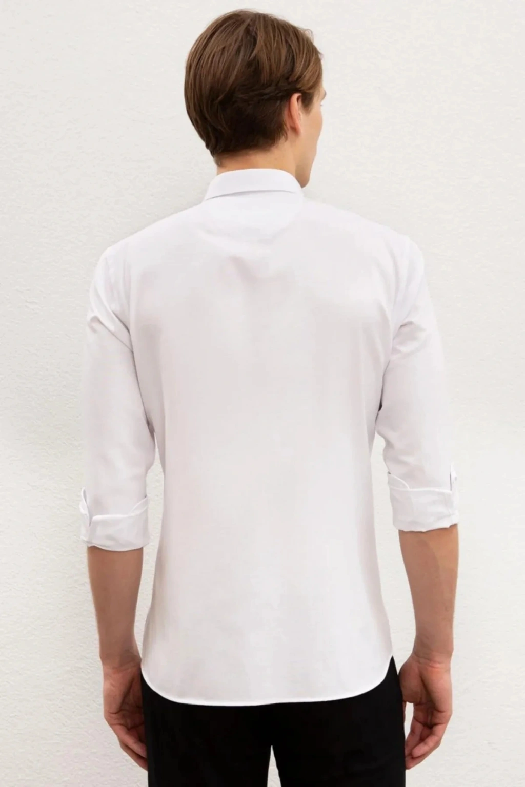 Klasik ve zamansız tasarımıyla her gardıropta yerini alacak düz kesim gömlek, şıklığınızı tamamlar; Orta boy kesimi sayesinde rahat bir kullanım sunar ve farklı vücut tiplerine uyum sağlar; Dokuma kumaş yapısı, dayanıklılığı ve konforu bir arada sunarak uzun süreli kullanım imkanı sağlar; Slim kalıbı ile modern ve şık bir görünüm kazandırırken, vücut hatlarınıza mükemmel uyum sağlar; Her yaş grubuna hitap eden tasarımıyla geniş bir kullanıcı yelpazesine sahiptir; gençlerden yetişkinlere herkes için idealdir;
