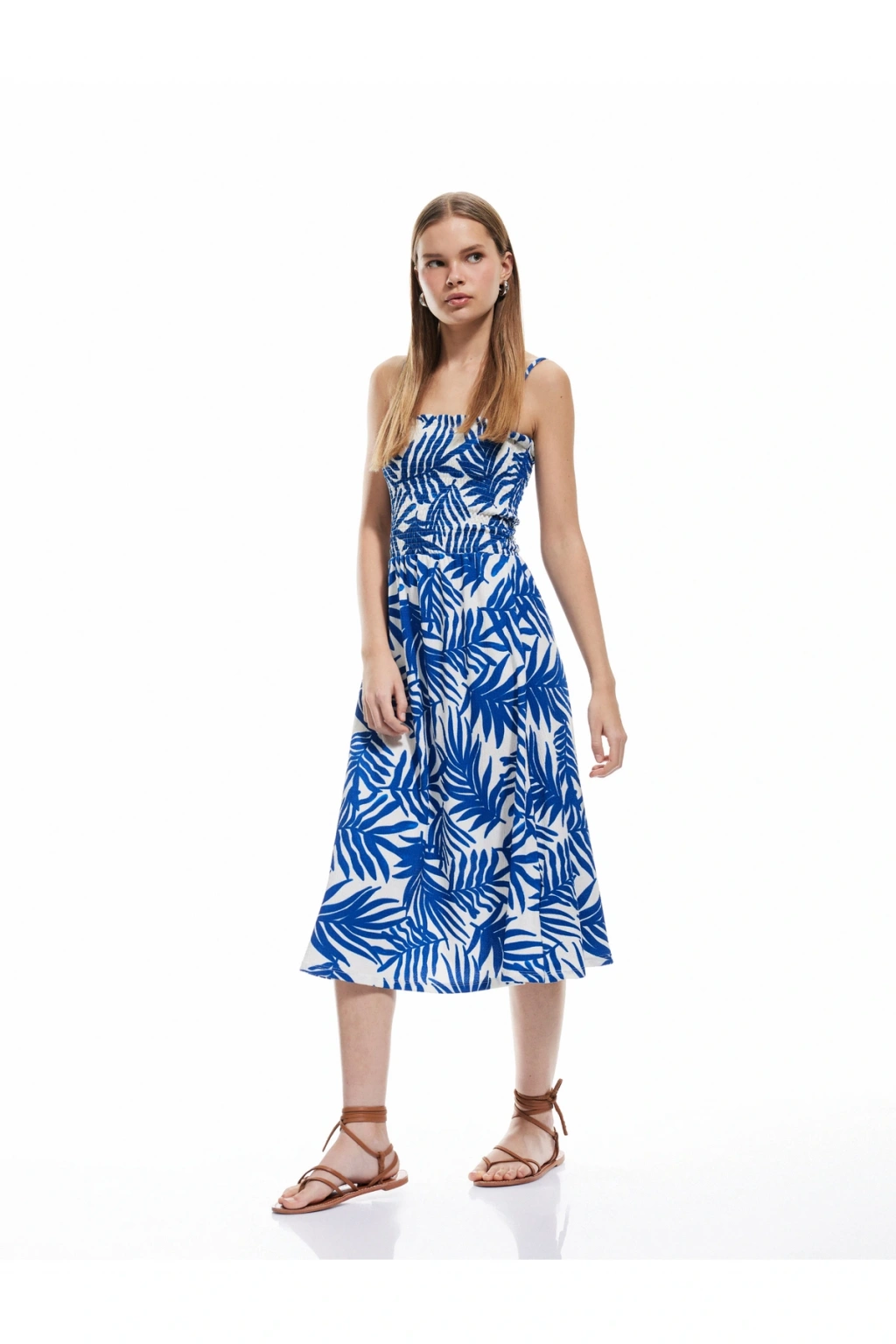 Stil ÖnerisiElbise, sandaletler ve minimalist takılarla kombinlenerek günlük şıklığınızı artırabilir. Plaj çantası ve geniş bir şapka ile tamamlayarak sahil gezintilerinde de stil sahibi görünebilirsiniz. Daha özel davetlerde ince topuklu ayakkabılar ve zarif bir clutch ile etkileyici bir görünüm yaratabilirsiniz. Elbise gardırobunuza esneklik katarak birçok kombin imkanı sunuyor.