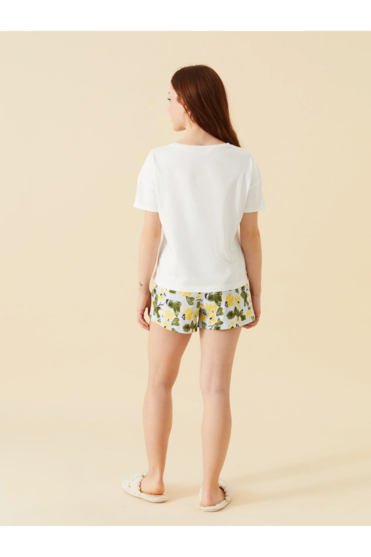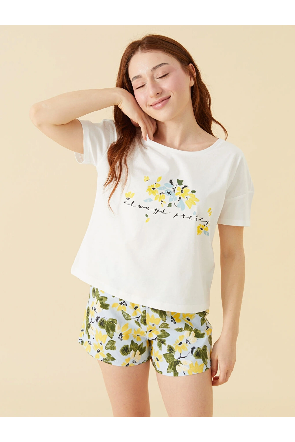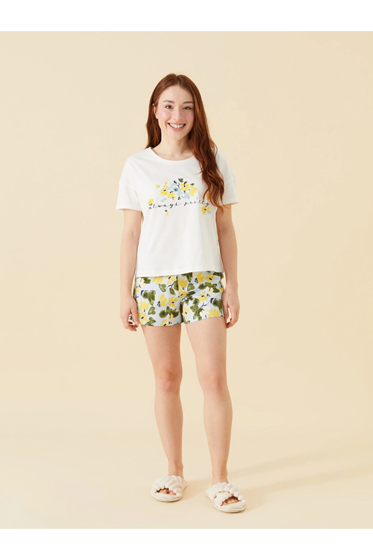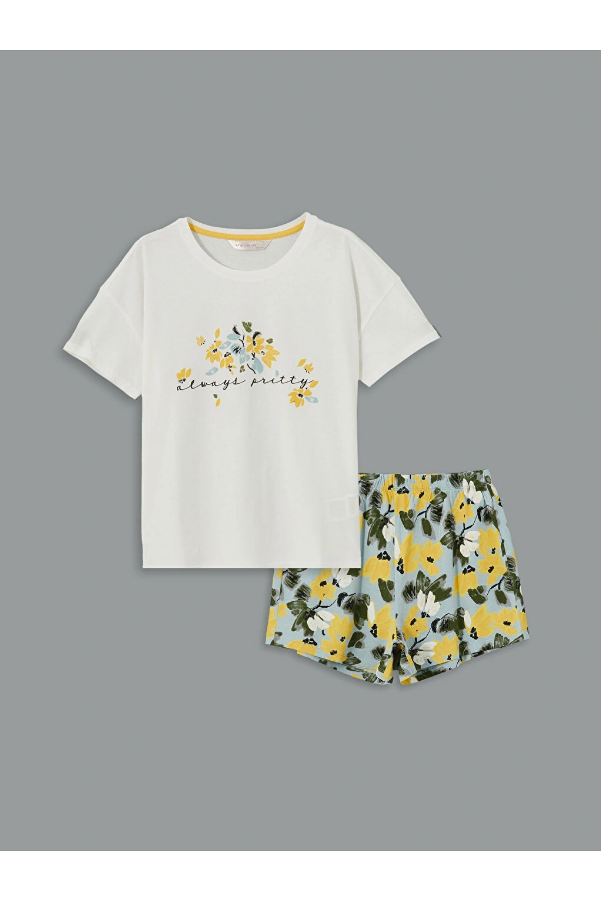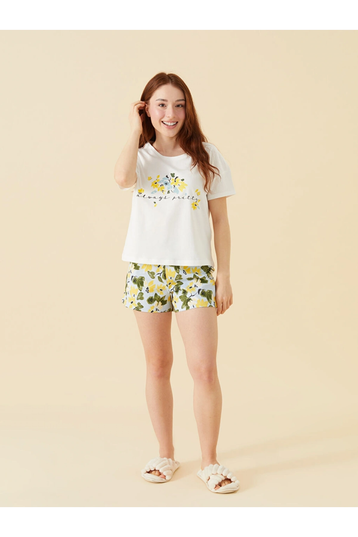 Şortlu Pijama Takımı Kısa Kollu Bisiklet Yaka Baskılı