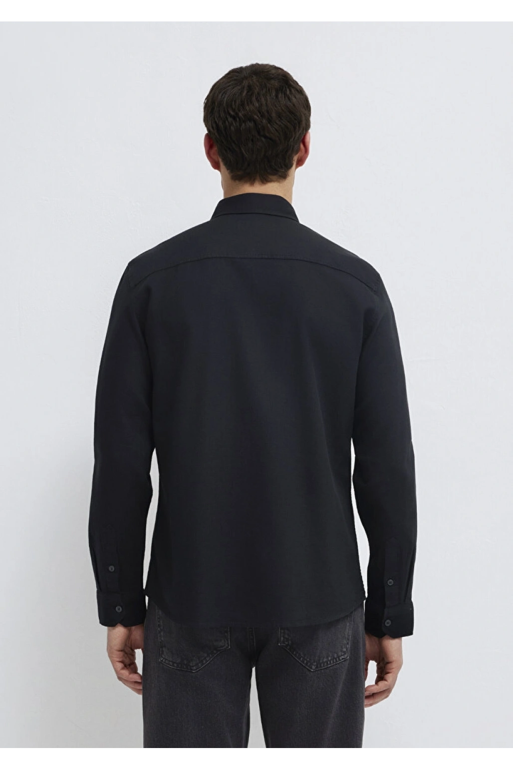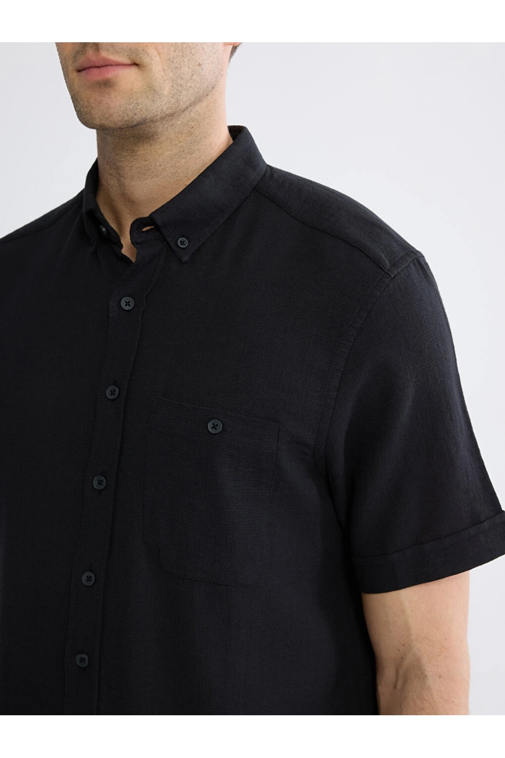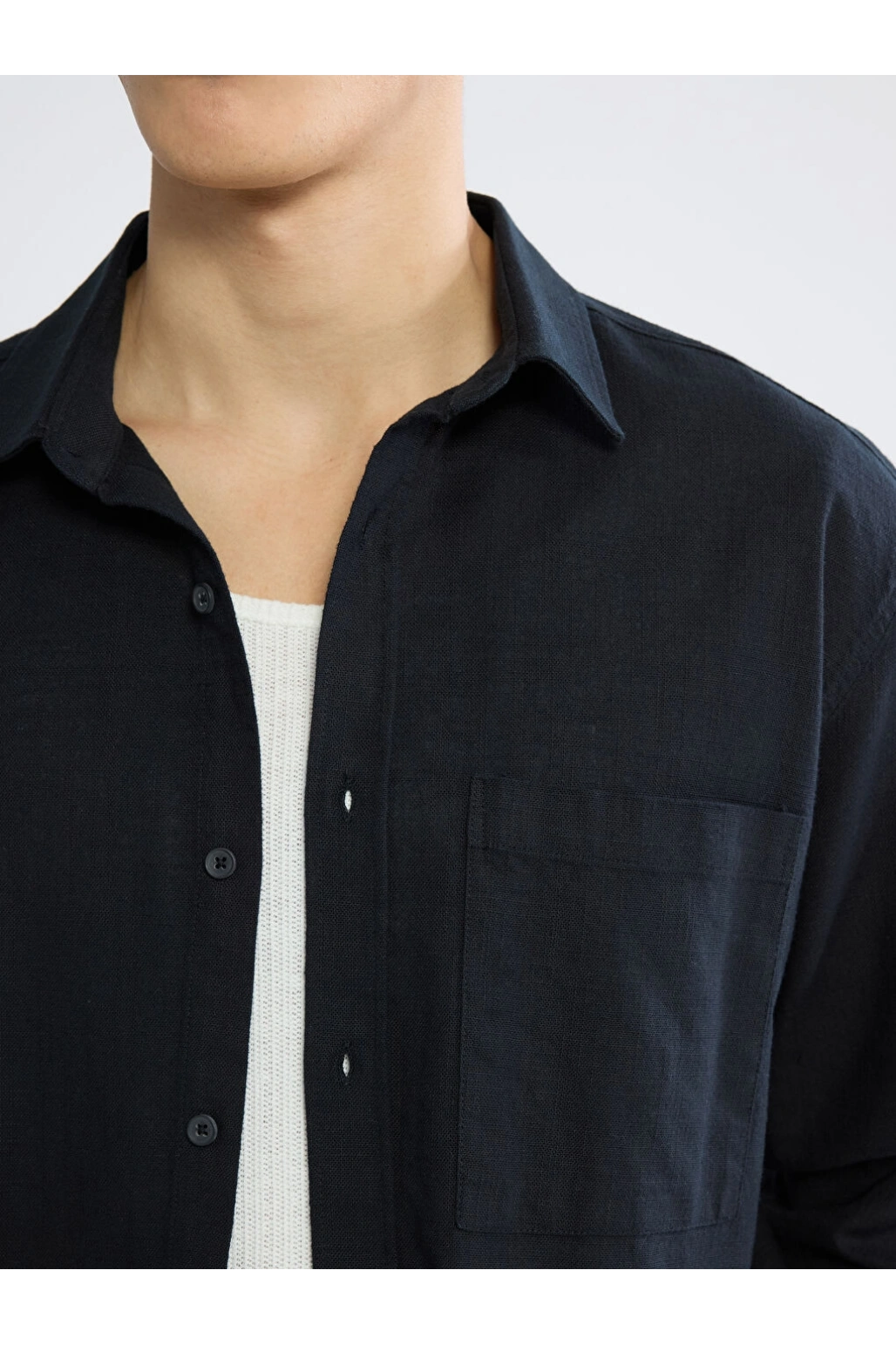 XSIDE Siyah Regular Fit Erkek Keten Görünümlü Gömlek