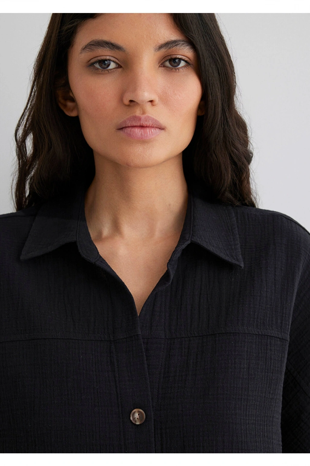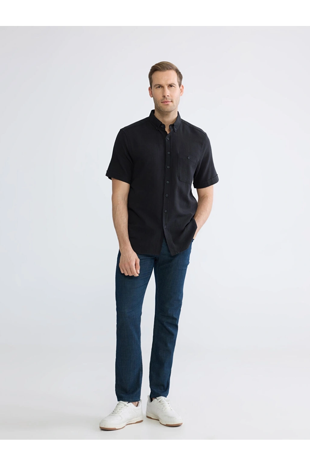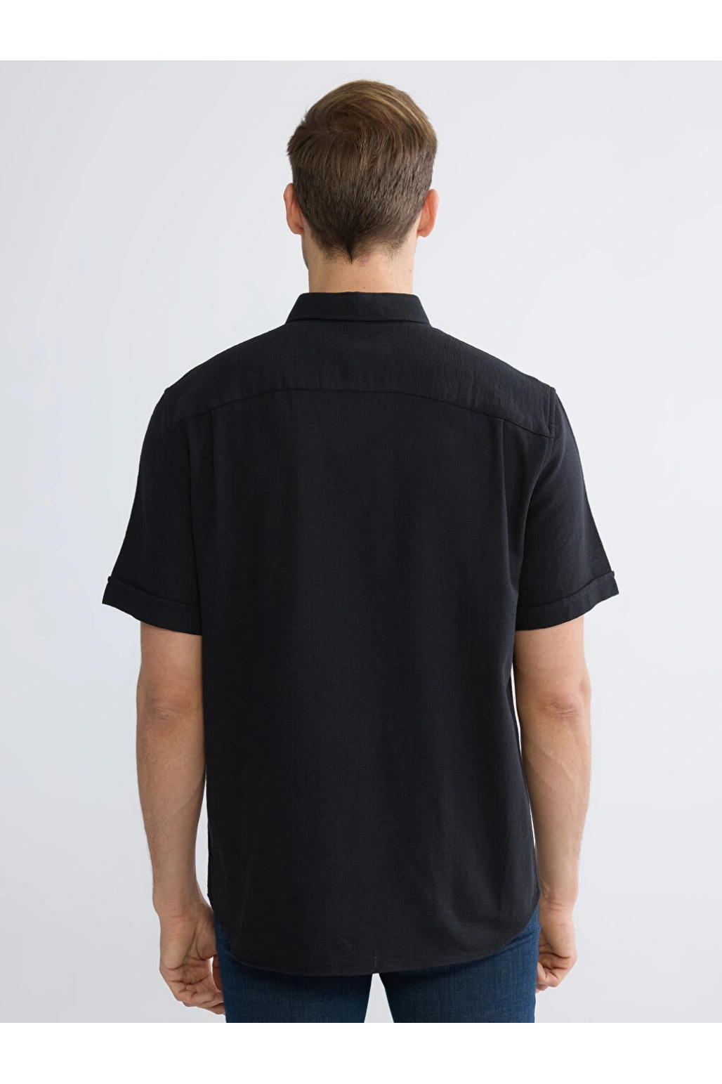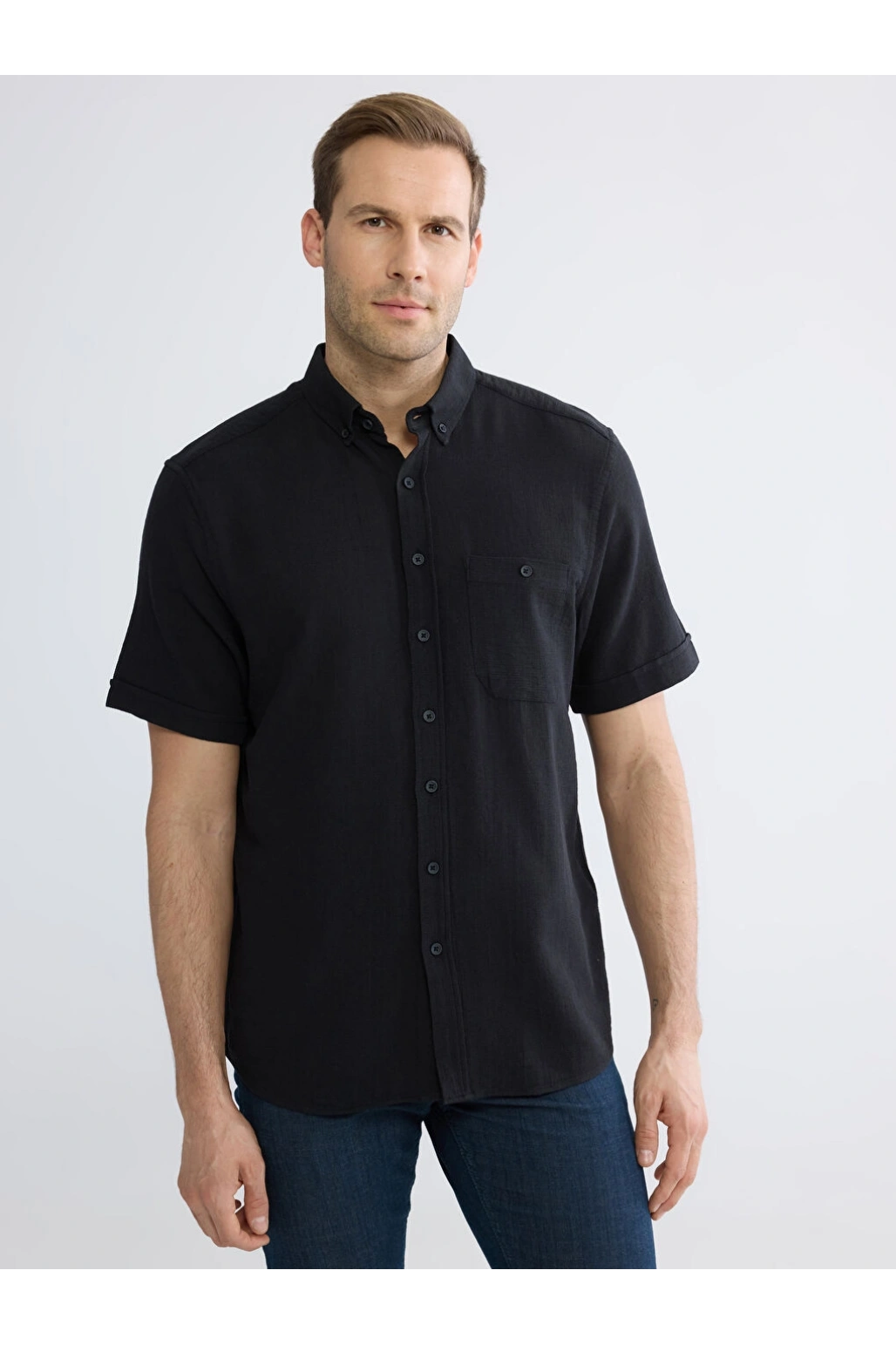 XSIDE Siyah Regular Fit Erkek Keten Görünümlü Gömlek