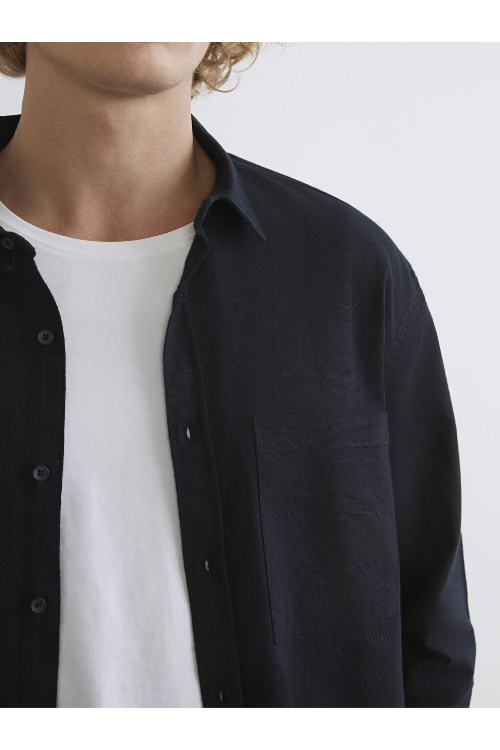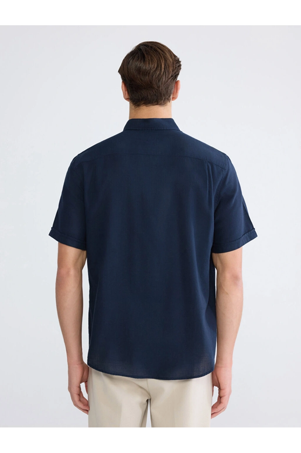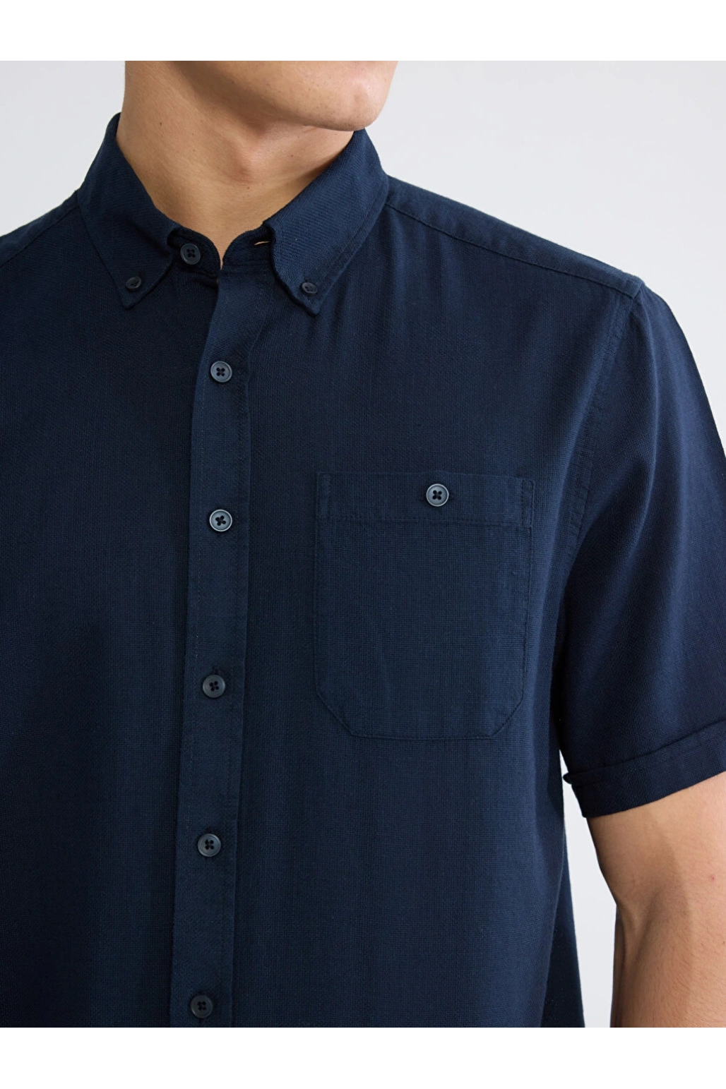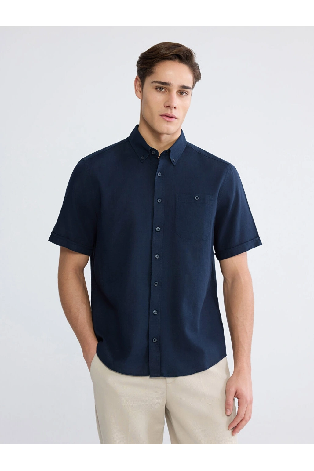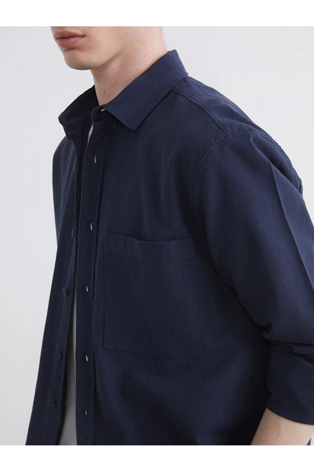XSIDE Lacivert Regular Fit Erkek Keten Görünümlü Gömlek