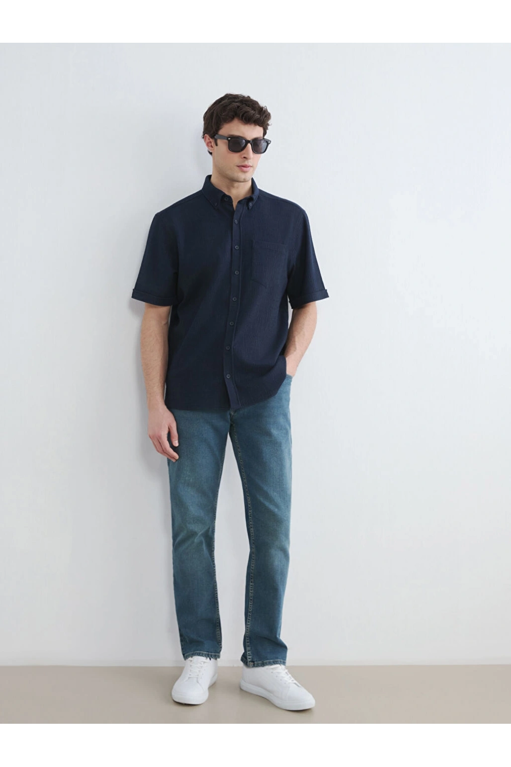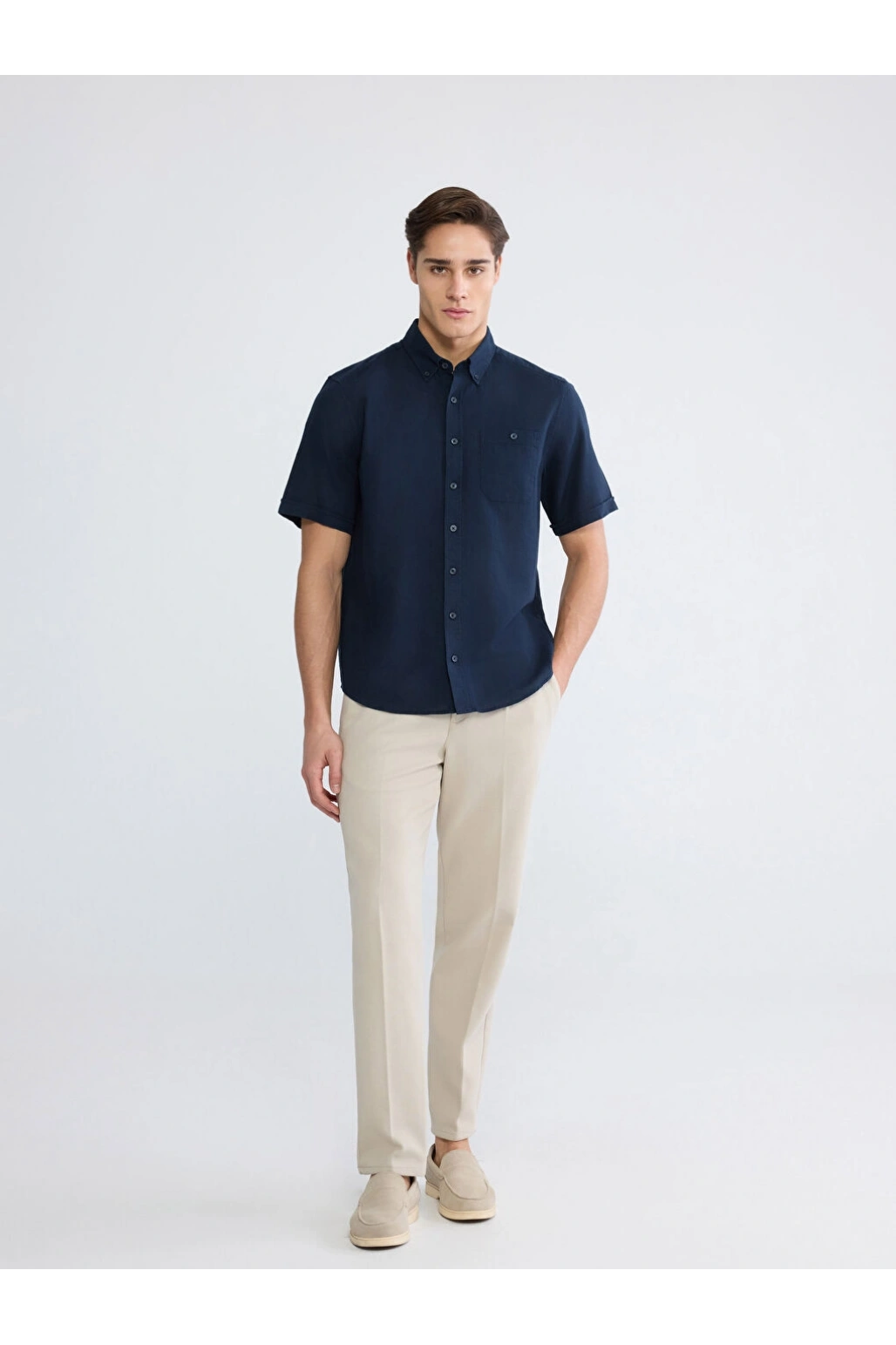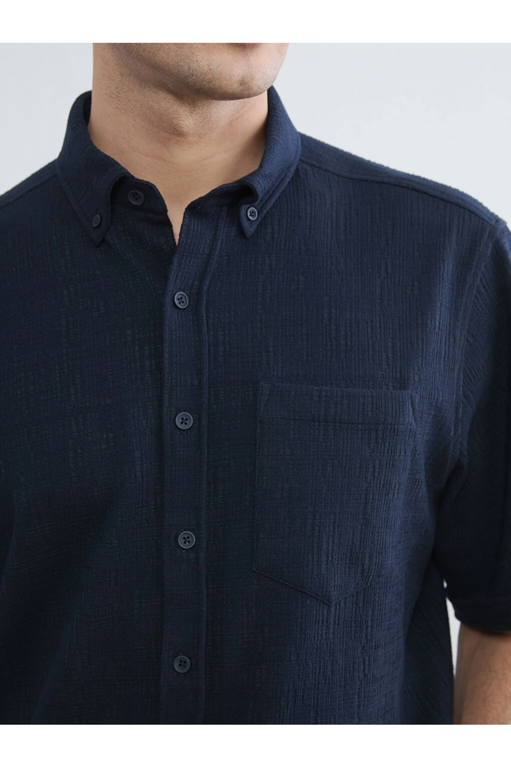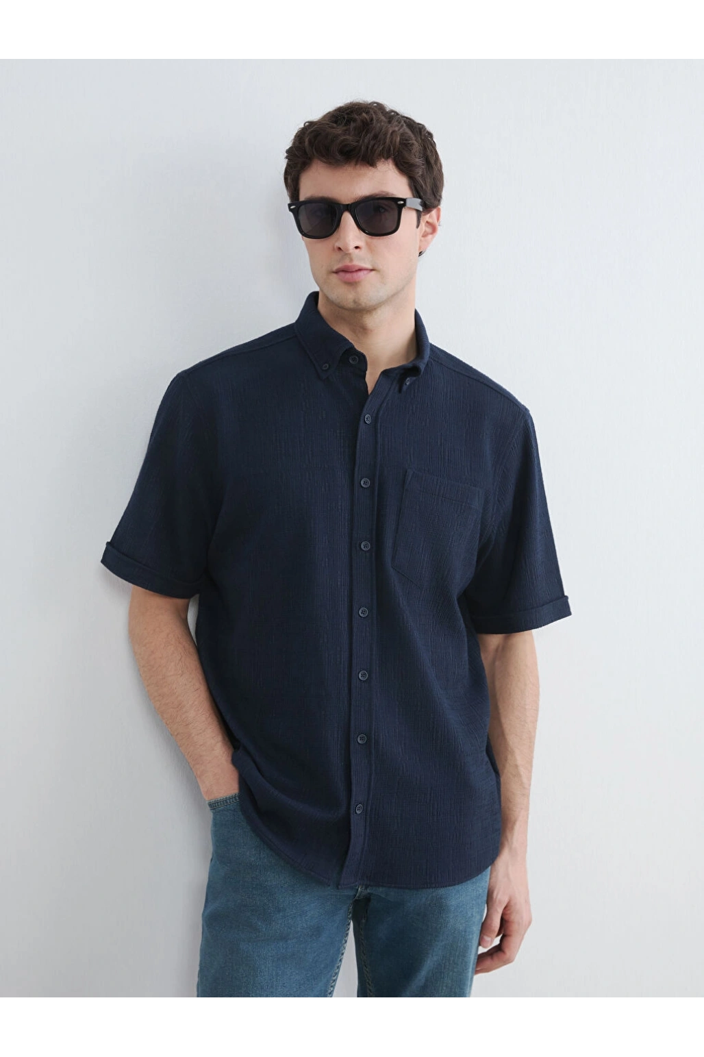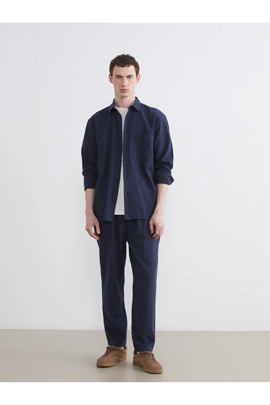 XSIDE Lacivert Regular Fit Erkek Keten Görünümlü Gömlek