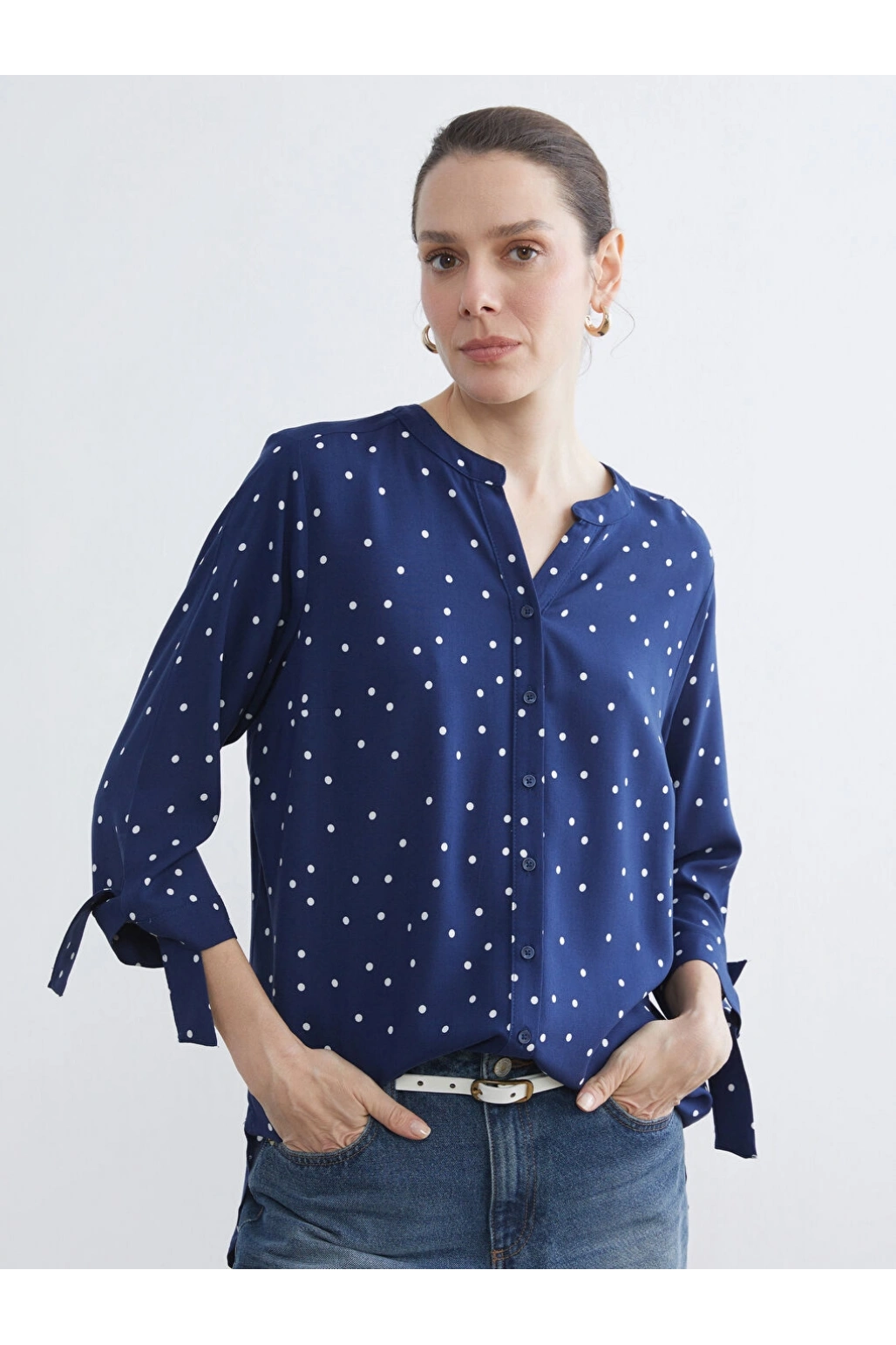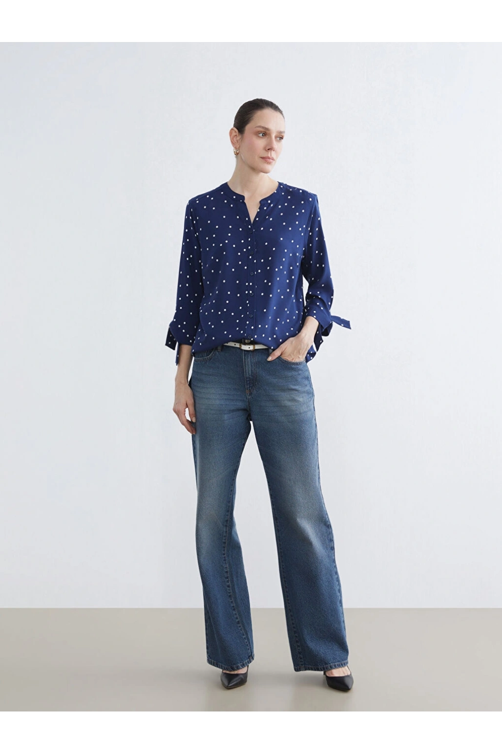 LCW Grace Lacivert Kaçık Yaka Puantiyeli Bluz