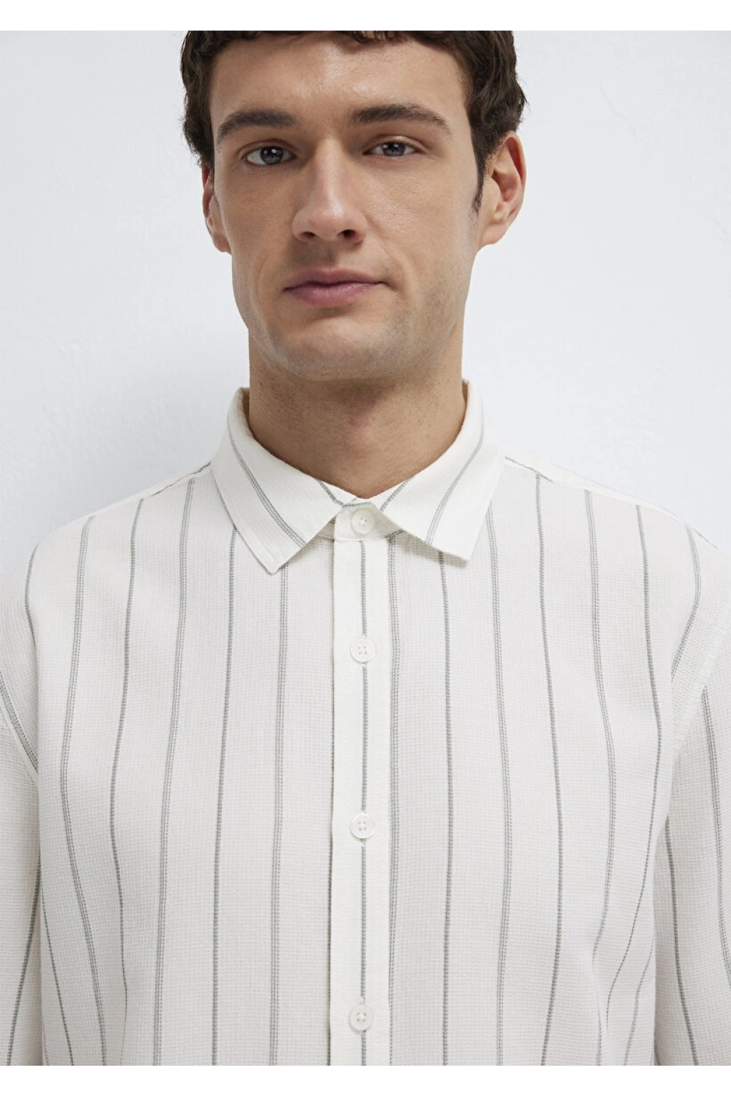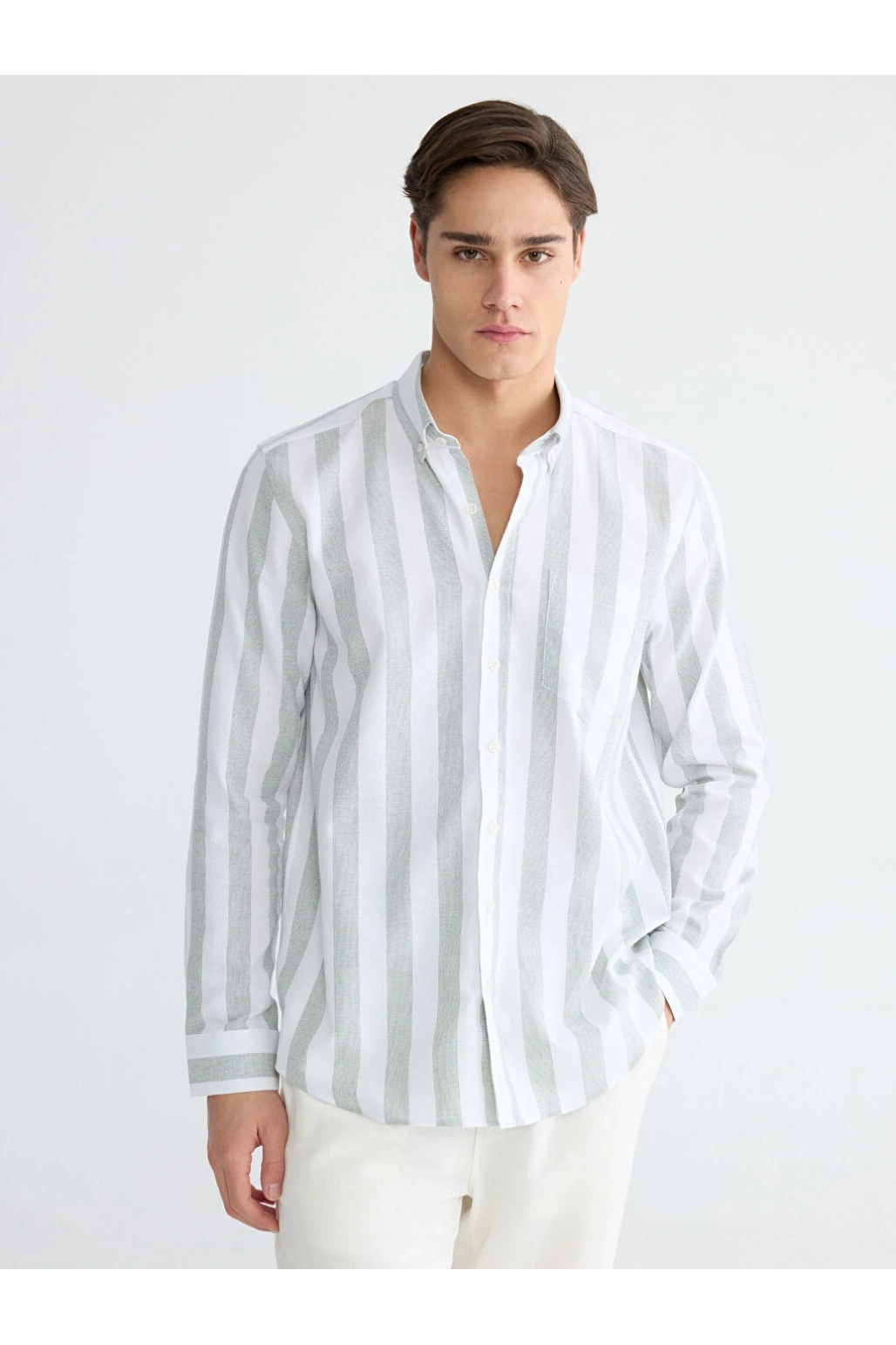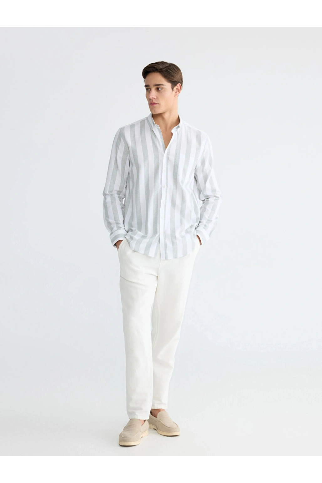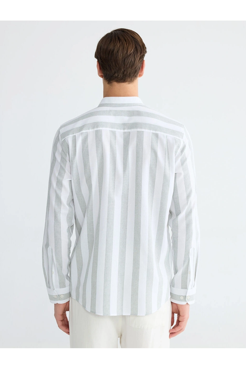 Haki Çizgili Ekru Gömlek