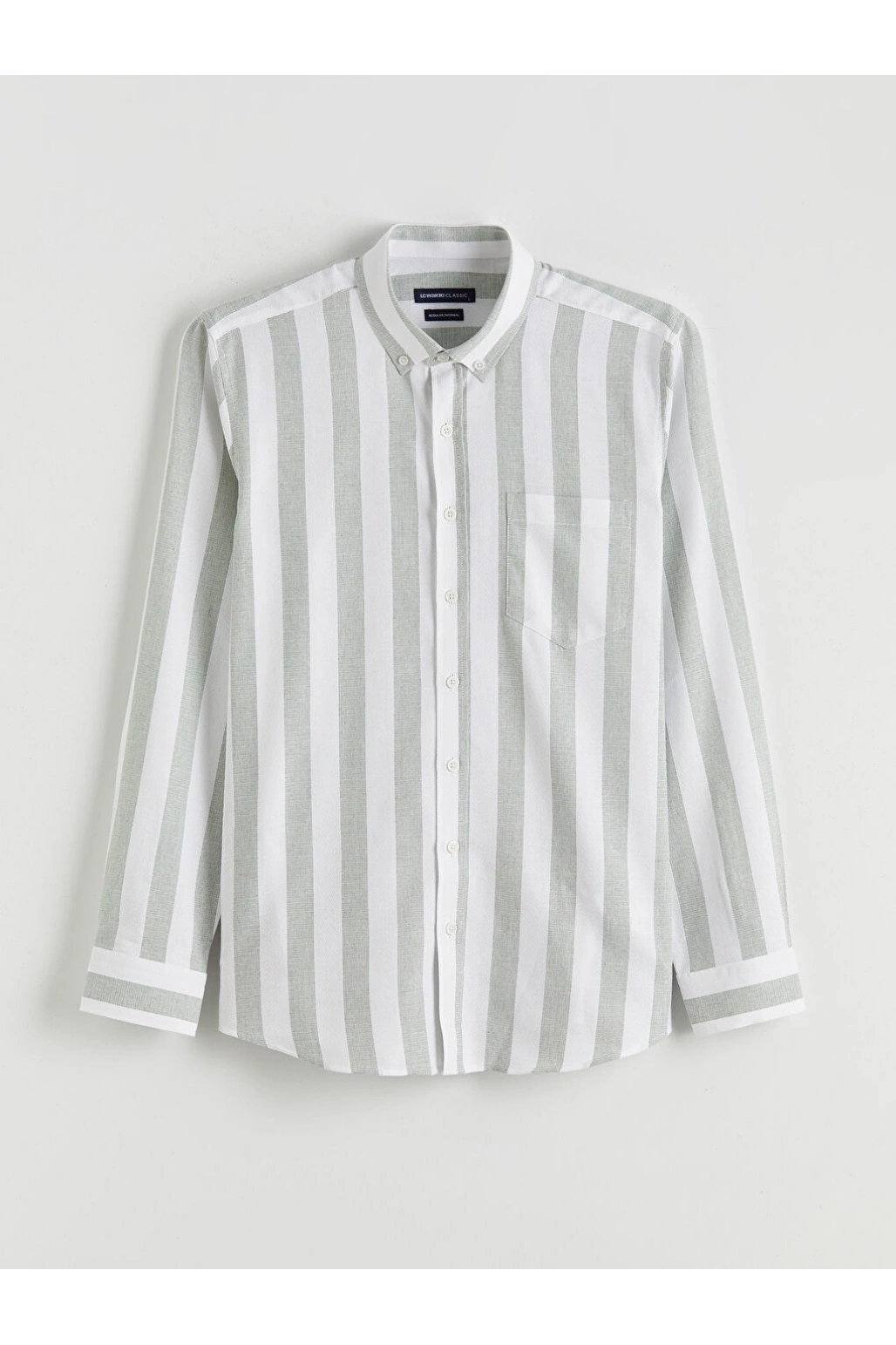LCWAIKIKI Classic Yeşil Regular Fit Çizgili Armürlü Erkek Gömlek