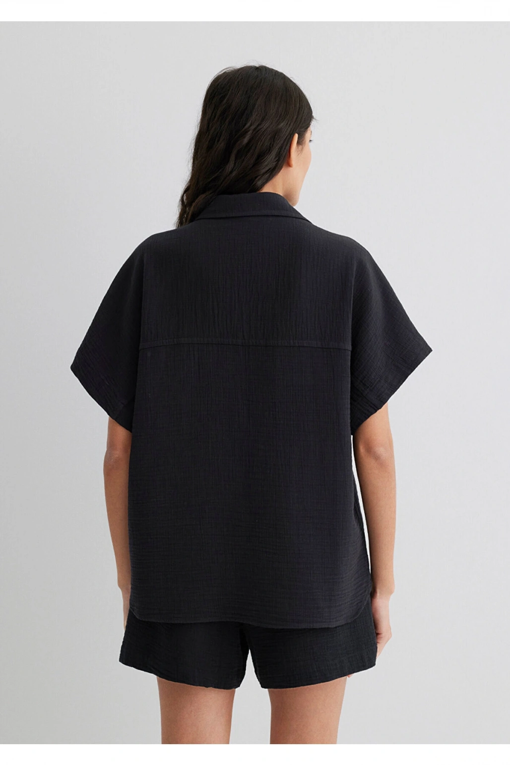 Mavi Dokulu Siyah Gömlek Loose Fit / Bol Rahat Kesim