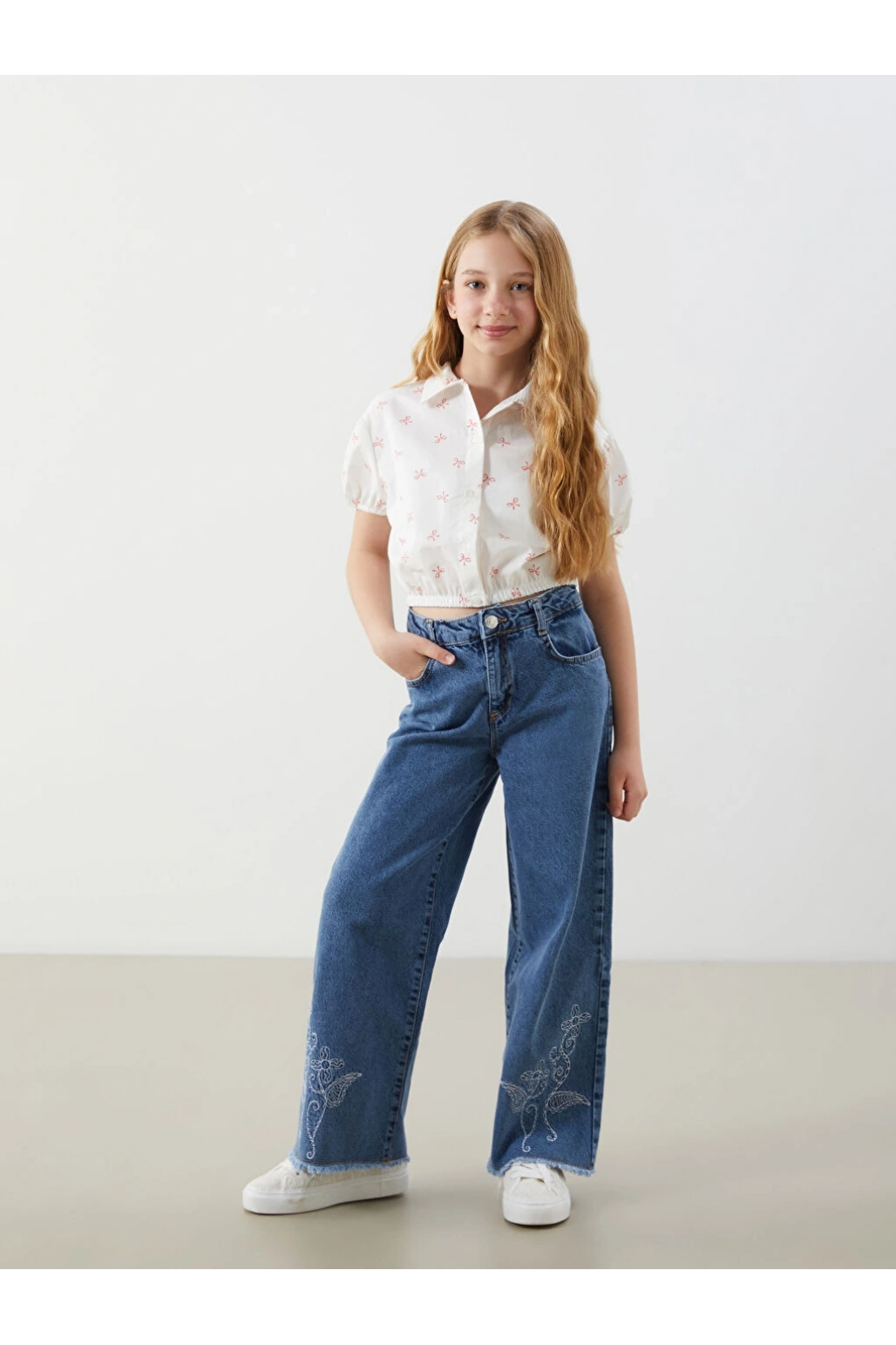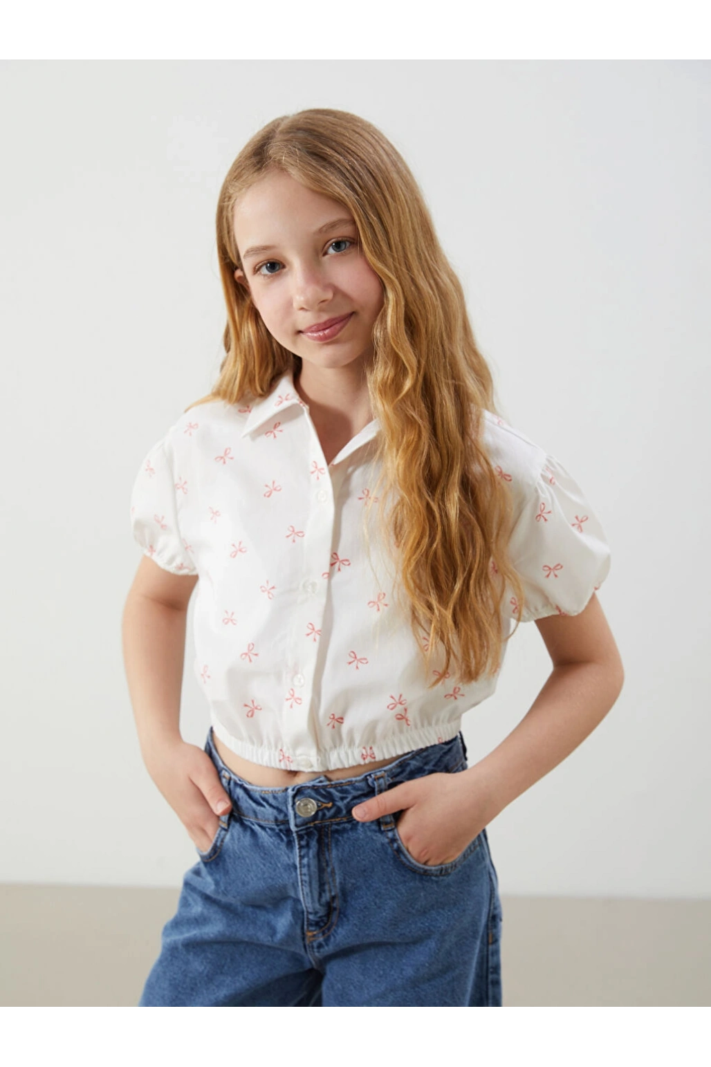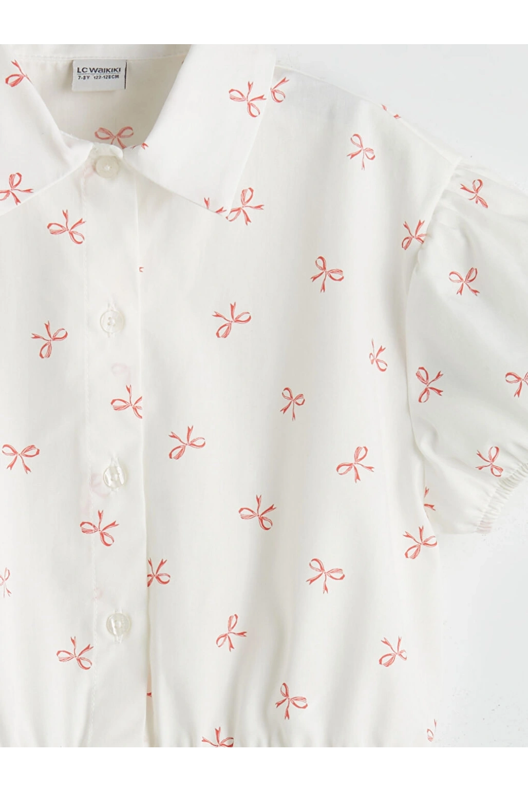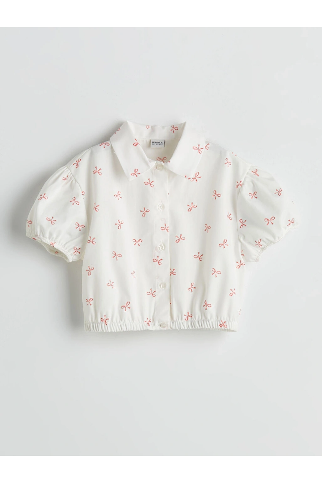 LCW Kids Ekru Fiyonk Baskılı Kız Çocuk Crop Gömlek